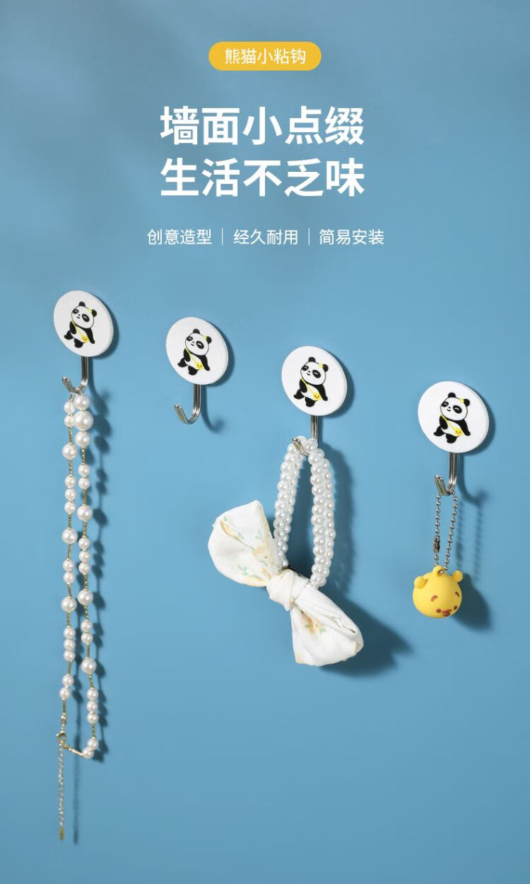 美丽雅熊猫小粘钩4只装