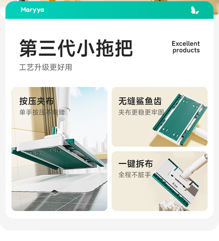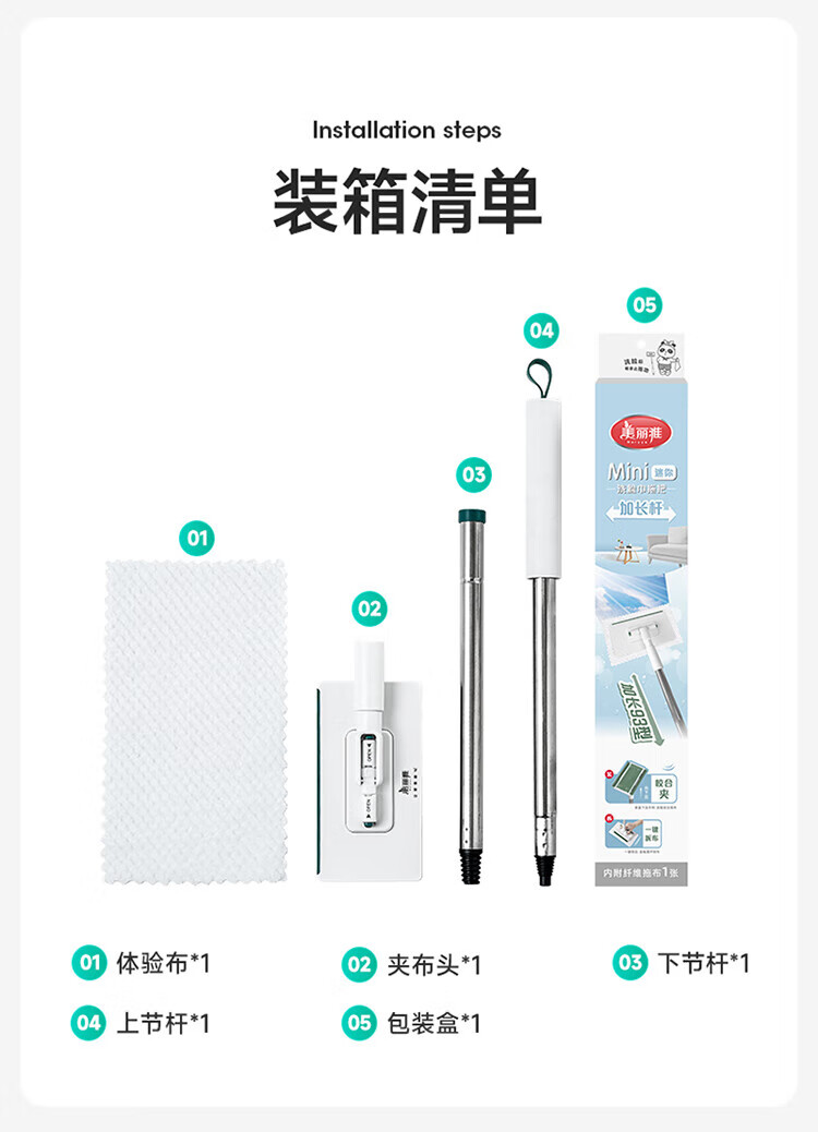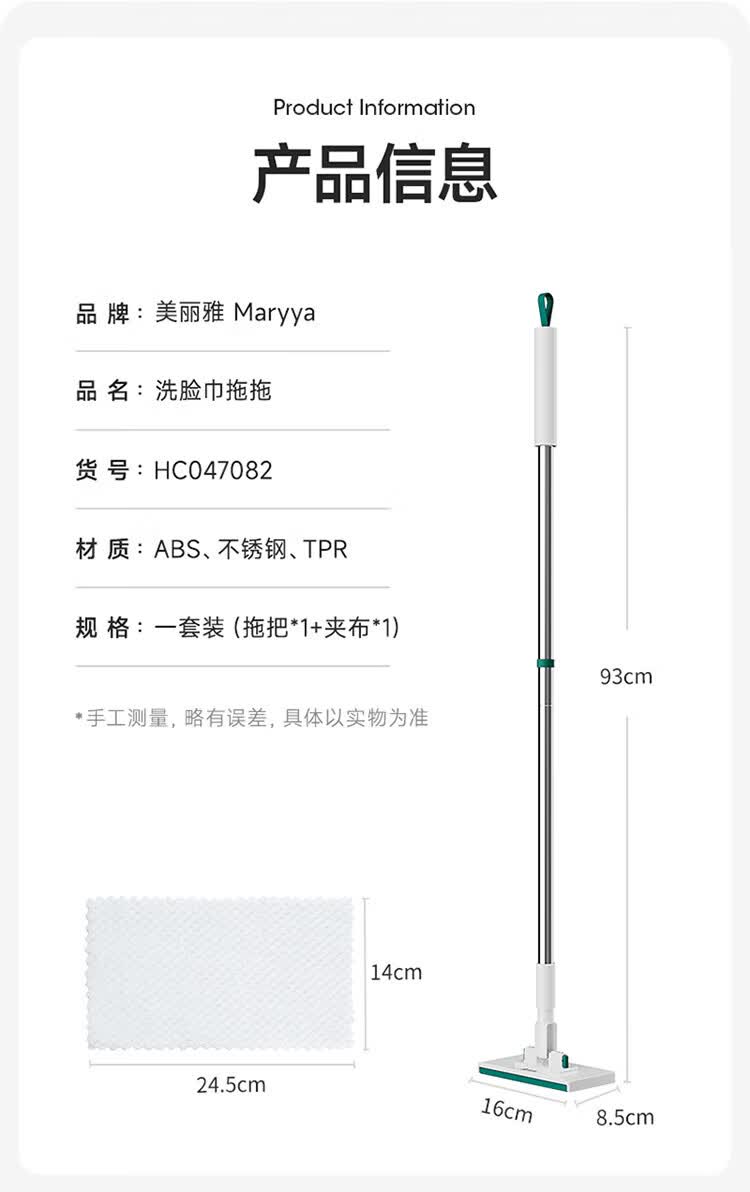 美丽雅洗脸巾地拖加长杆拖把(93CM)