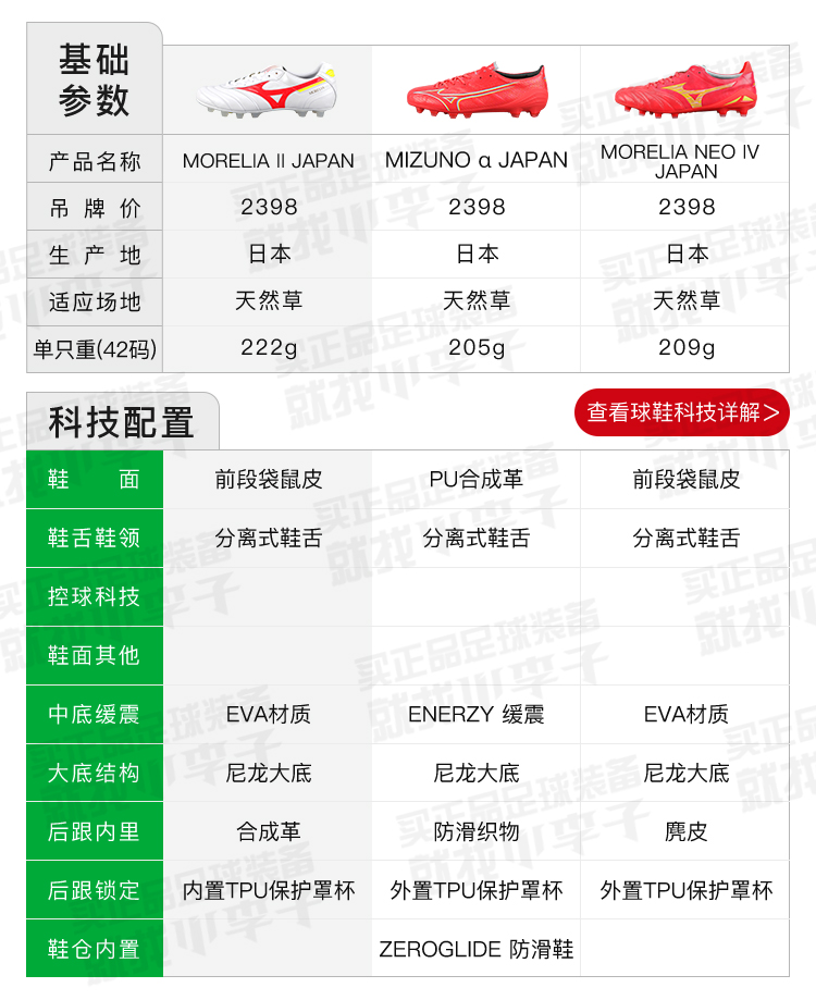 Mizuno/美津浓莫雷拉MORELIA 2高端日产FG长钉袋鼠皮成人足球鞋男P1GA230164