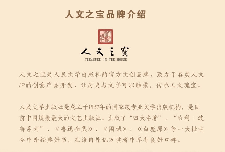 本店铺为人民文学出版社官方授权文创旗舰店,所售商品均为官方正品,请放心购买。人民文学出版社logo和产品版权受版权法和商标法保护。