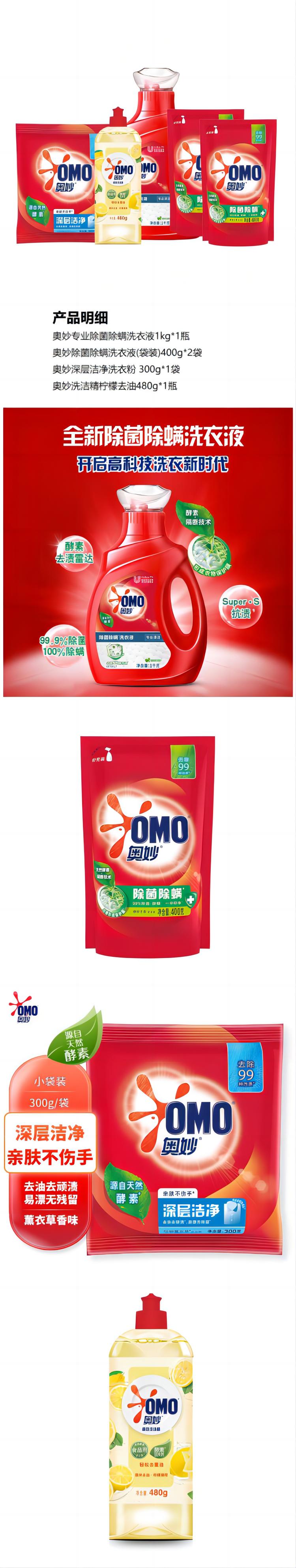 奥妙 家庭清洁礼包1780g 赠送:奥妙除菌除螨洗衣液(袋装)400G*2袋(礼袋图案随机)