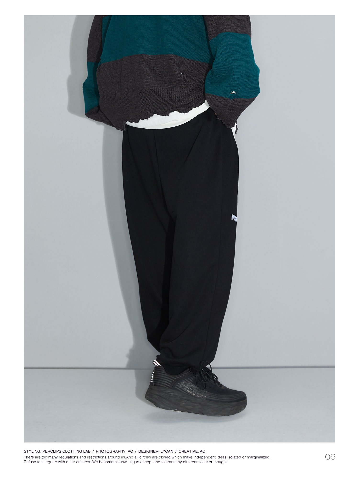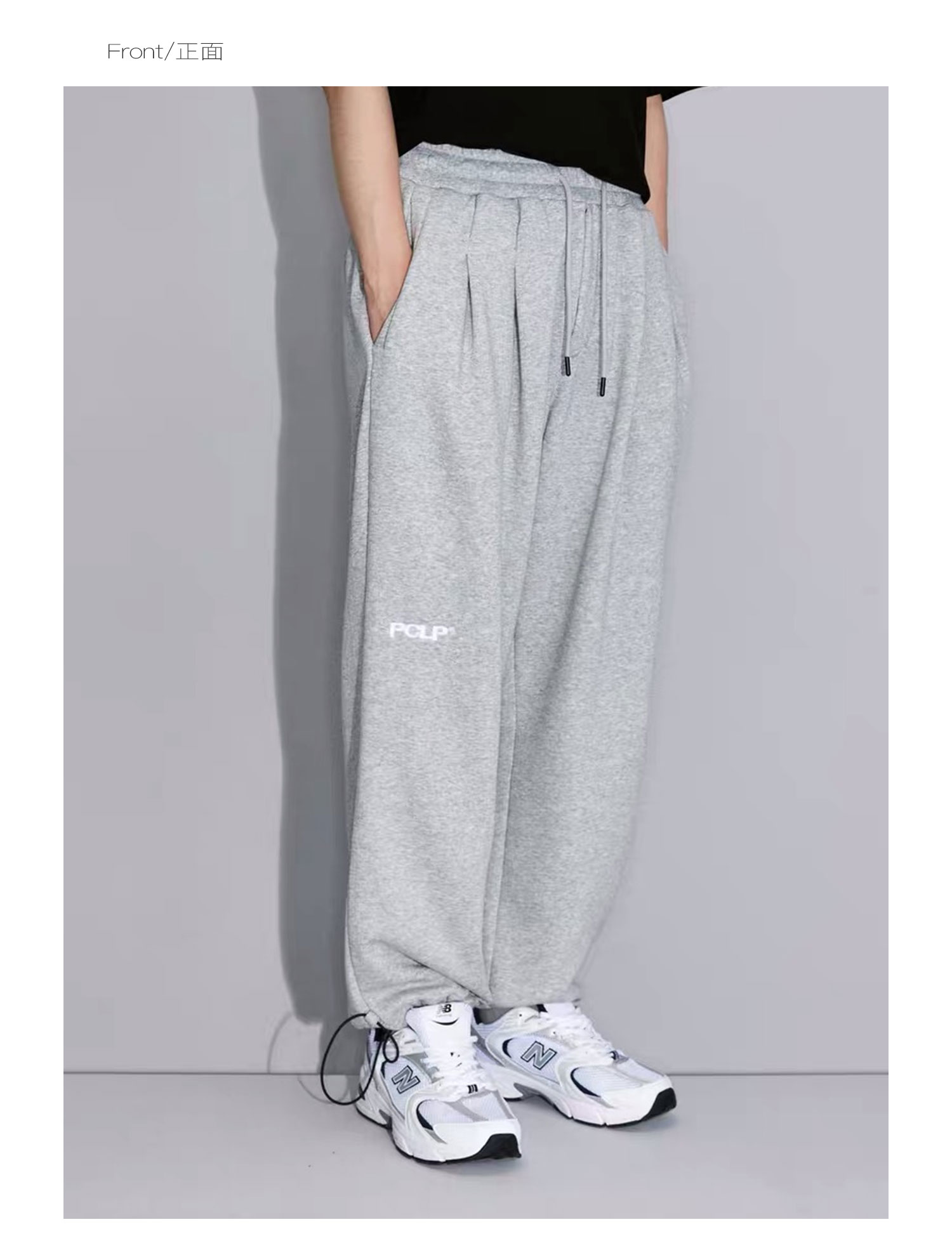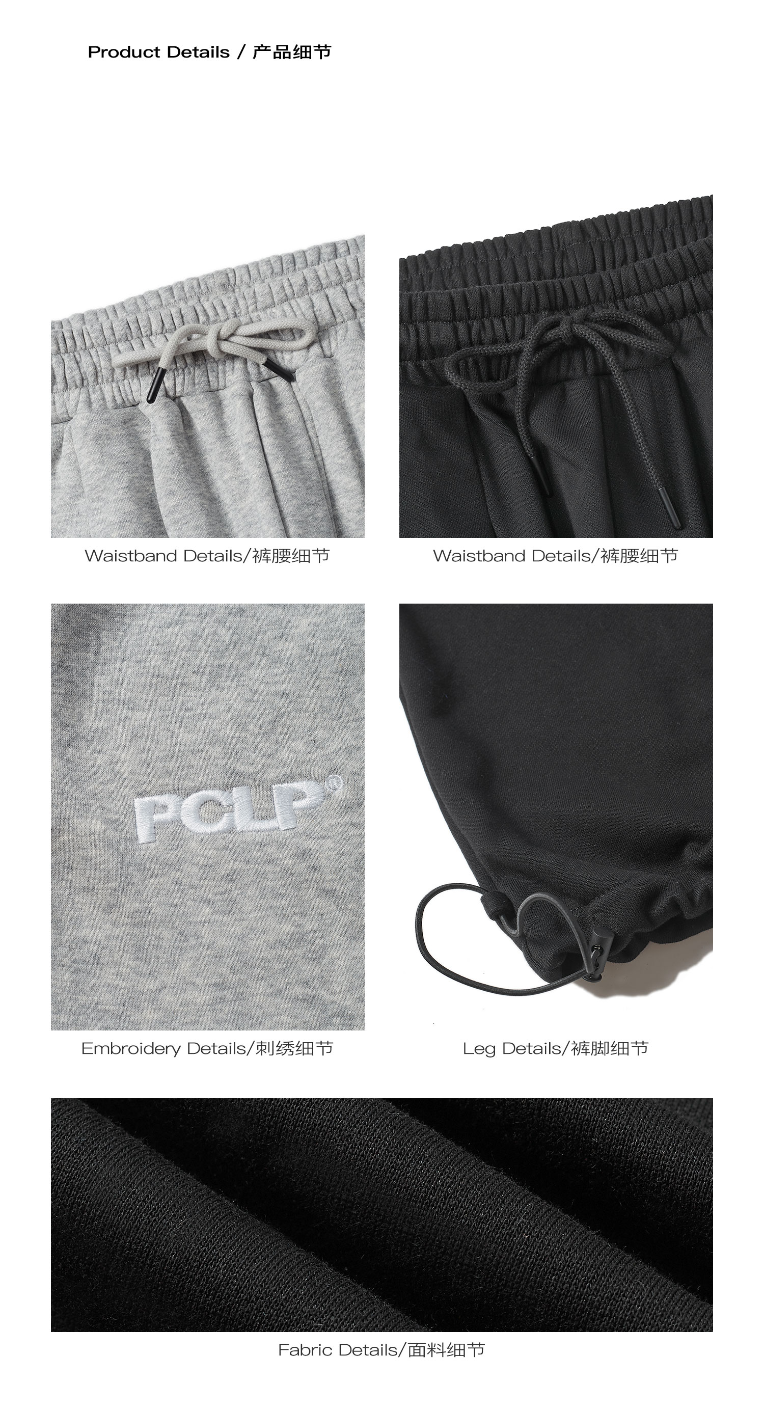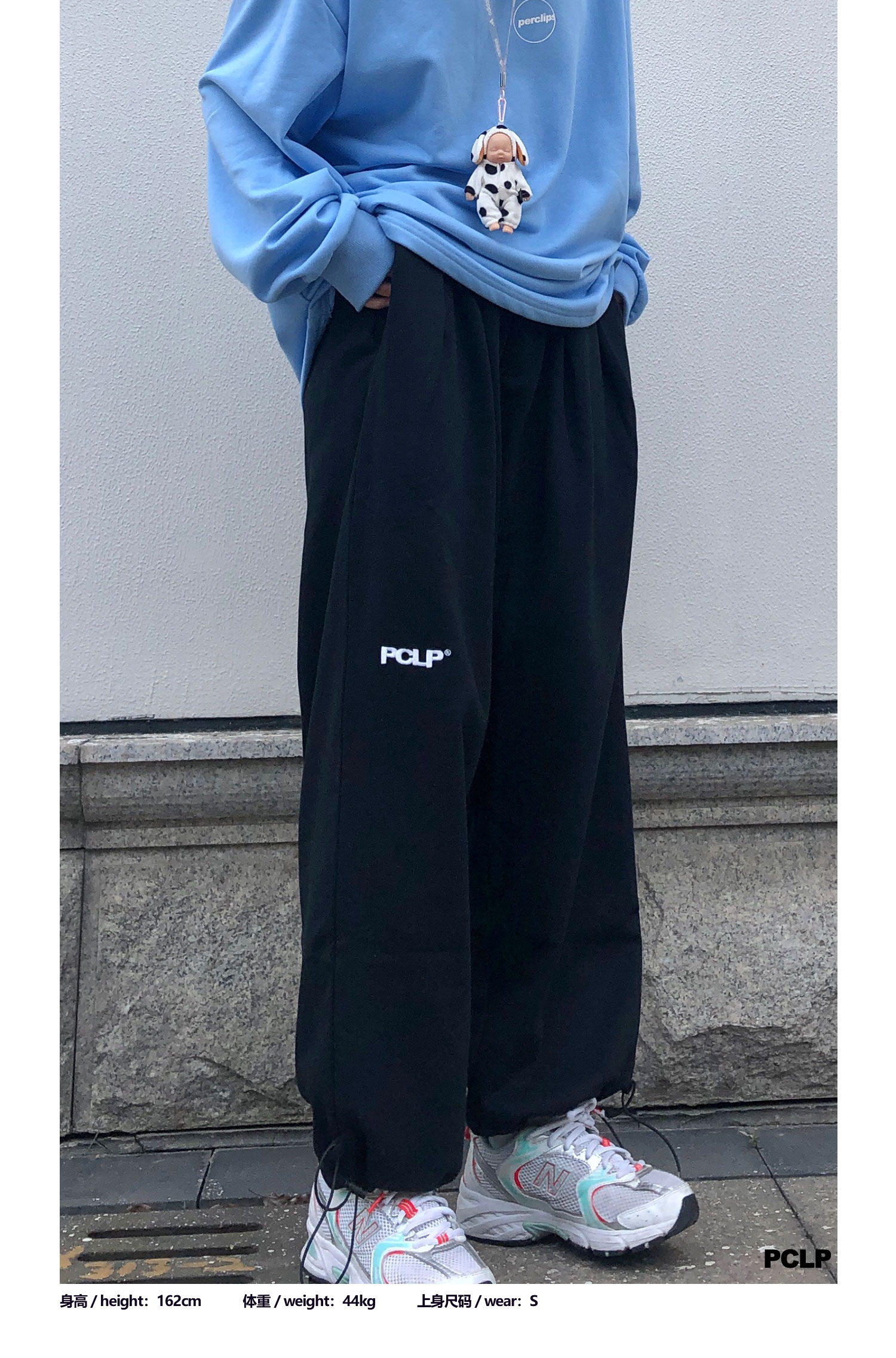 PCLP(PERCLIPS)休闲运动针织卫裤国潮牌工装宽松直筒抽绳束脚裤男