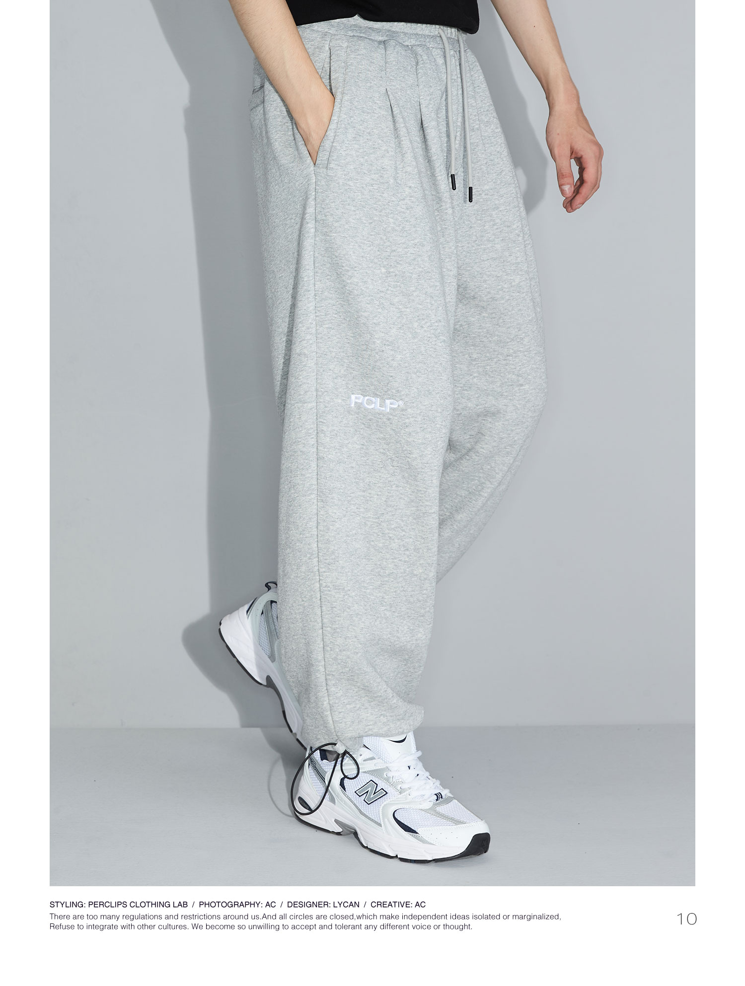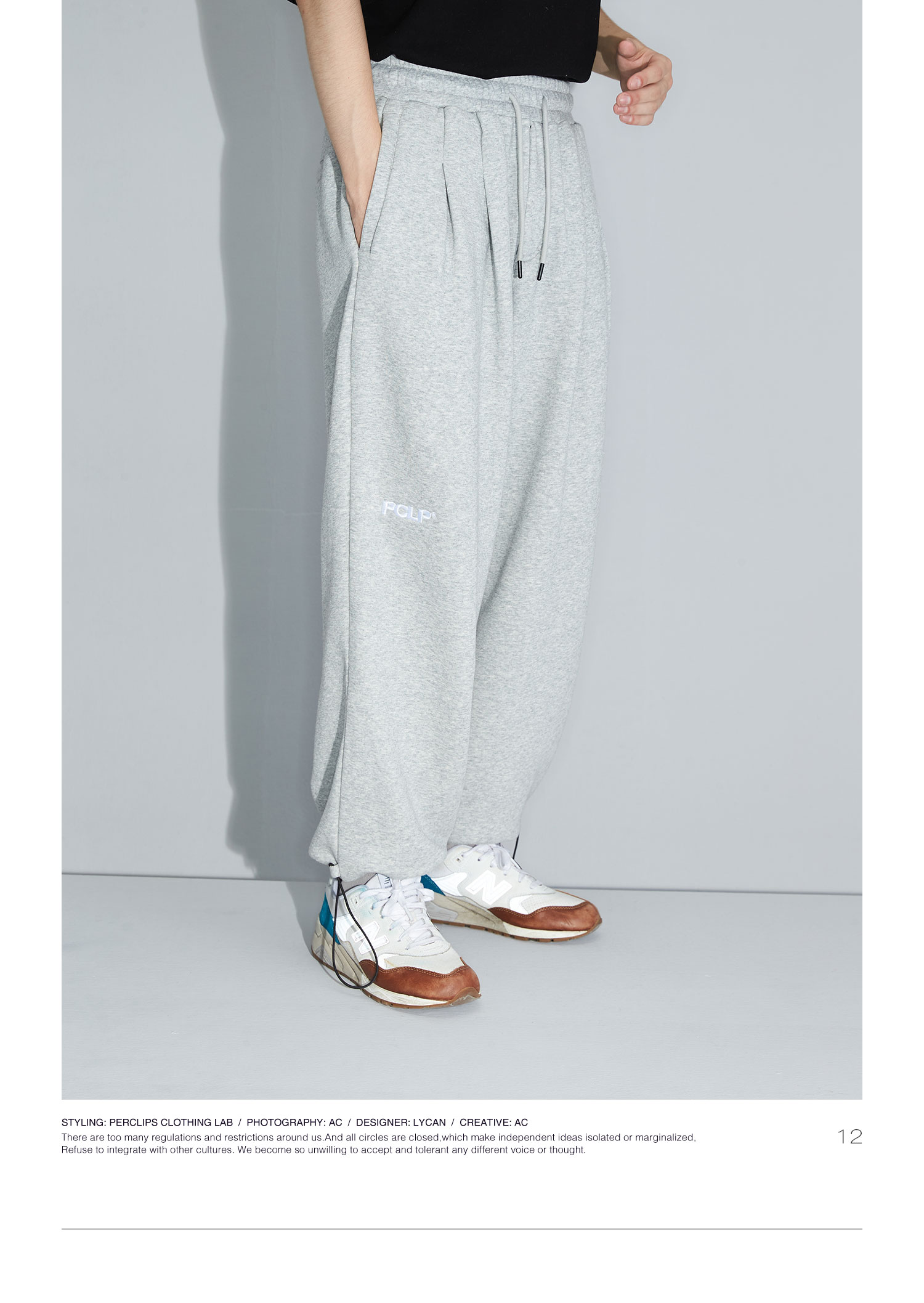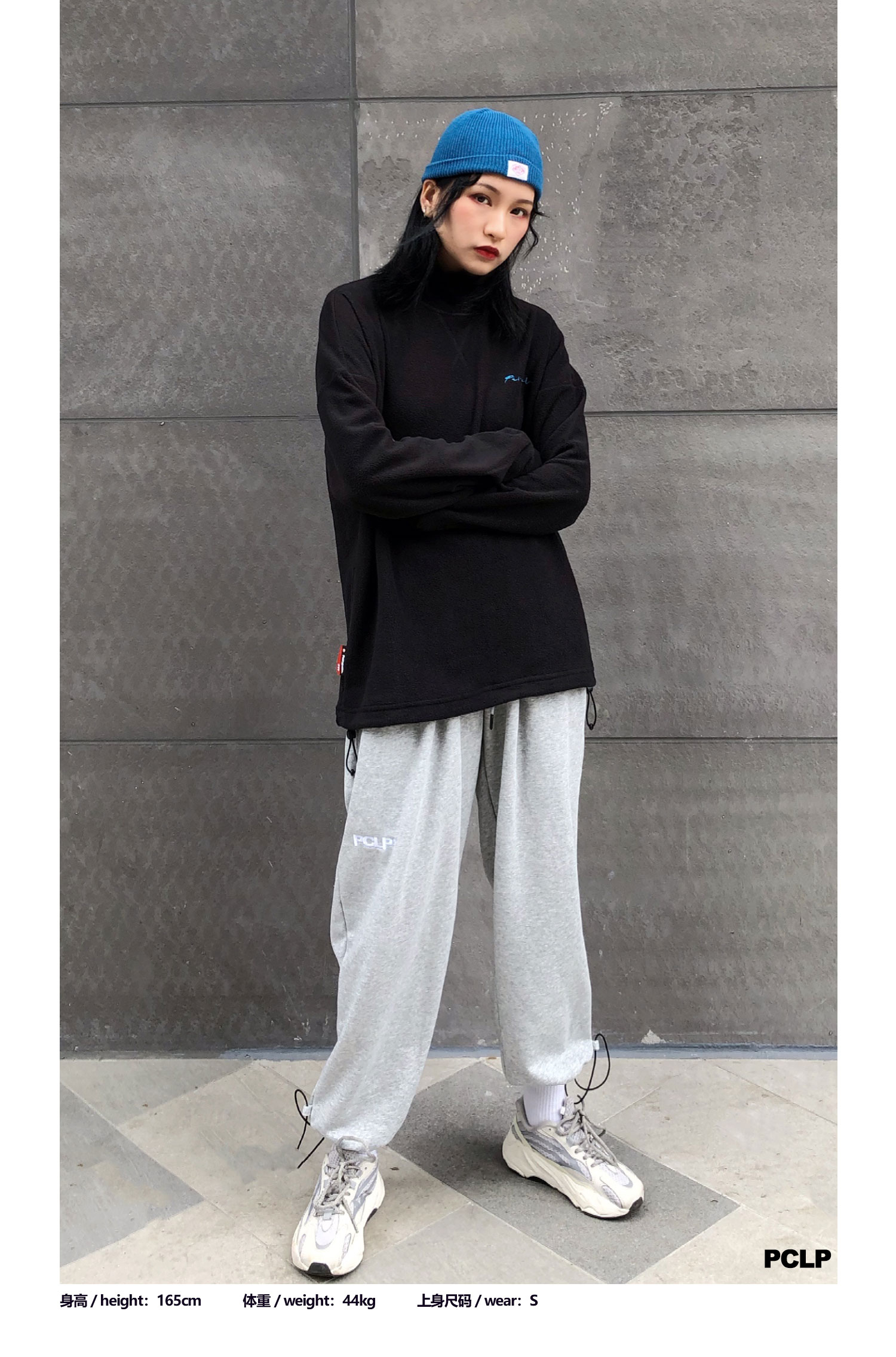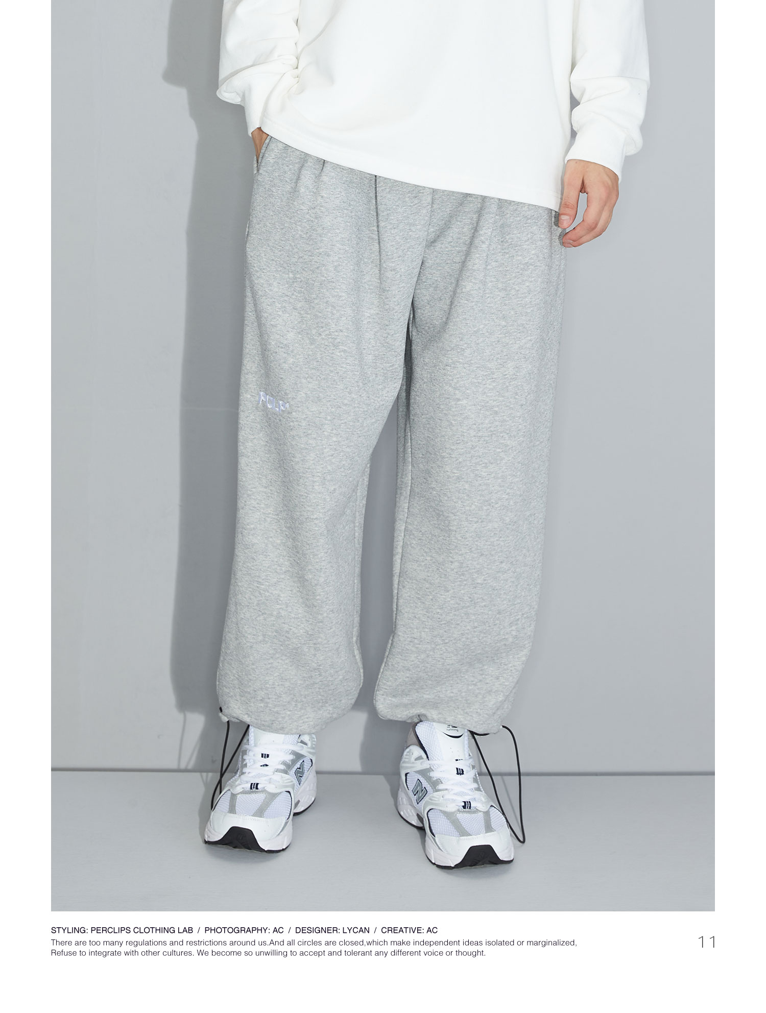 PCLP(PERCLIPS)休闲运动针织卫裤国潮牌工装宽松直筒抽绳束脚裤男