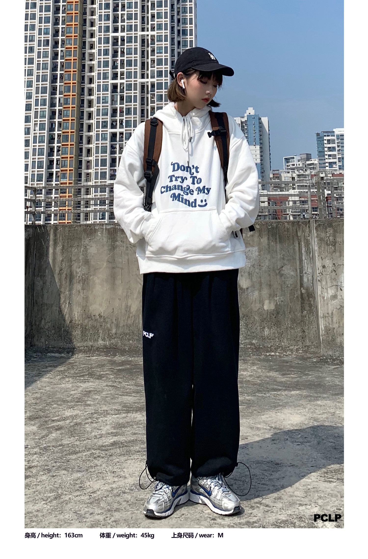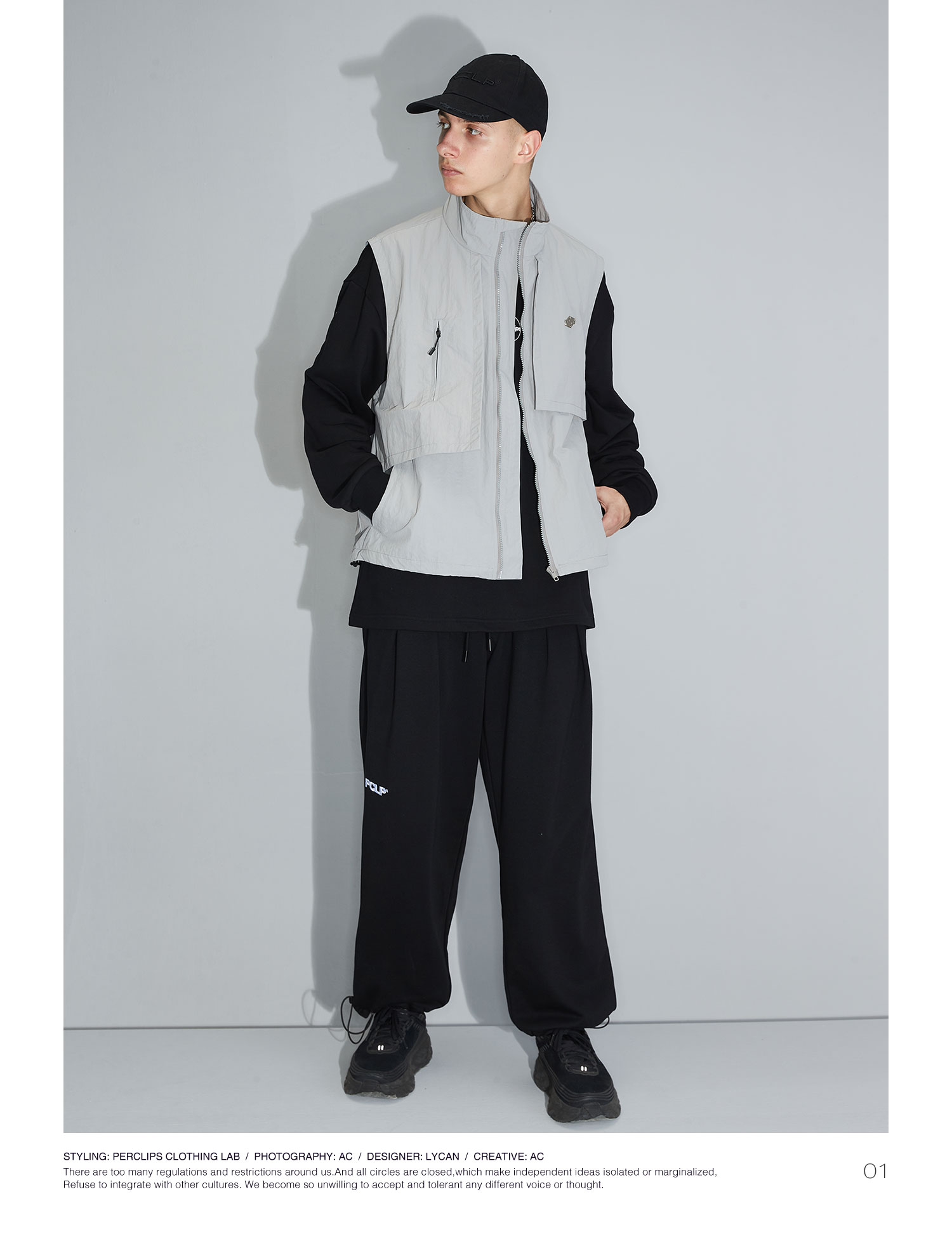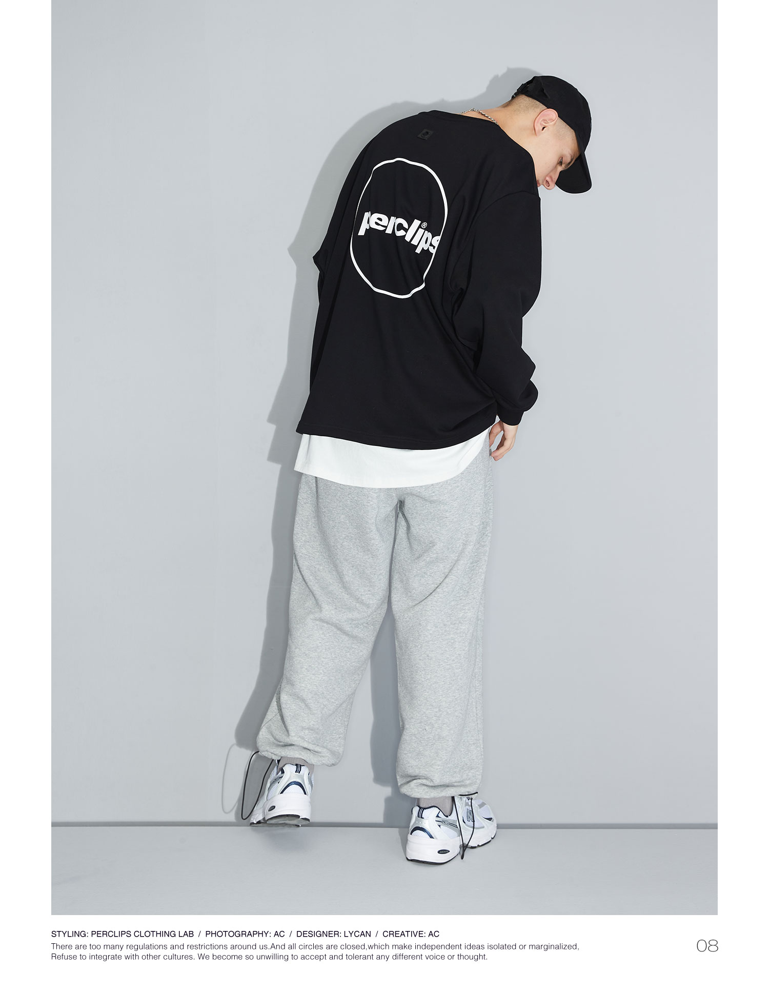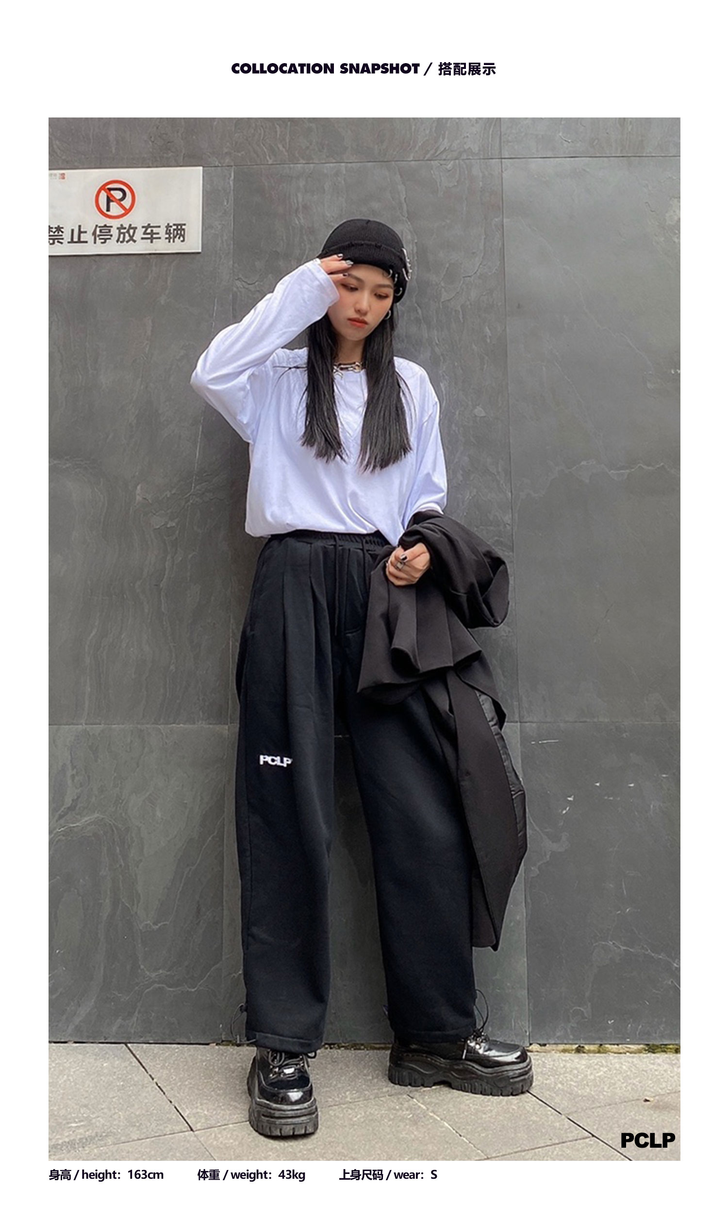 PCLP(PERCLIPS)休闲运动针织卫裤国潮牌工装宽松直筒抽绳束脚裤男