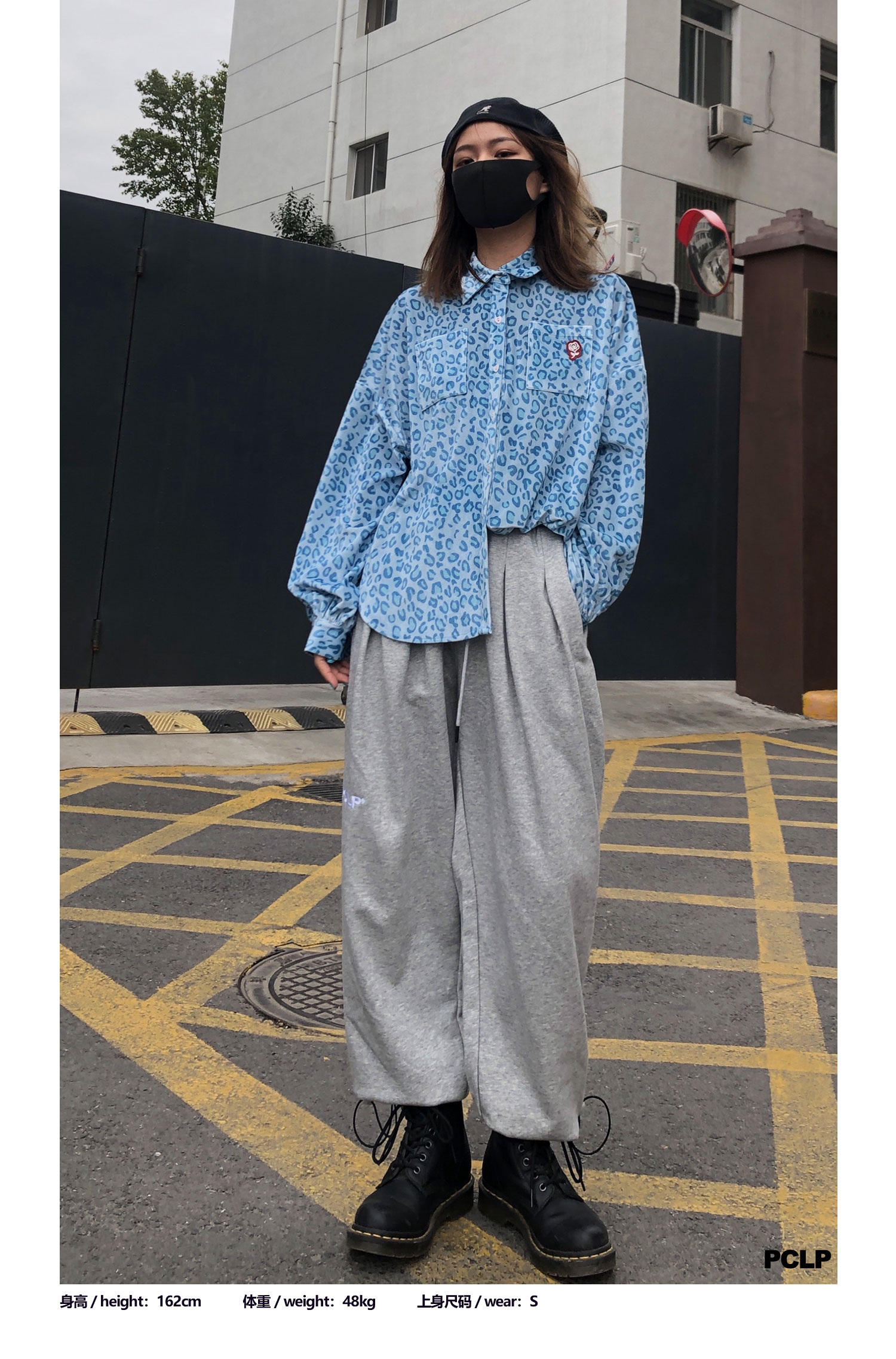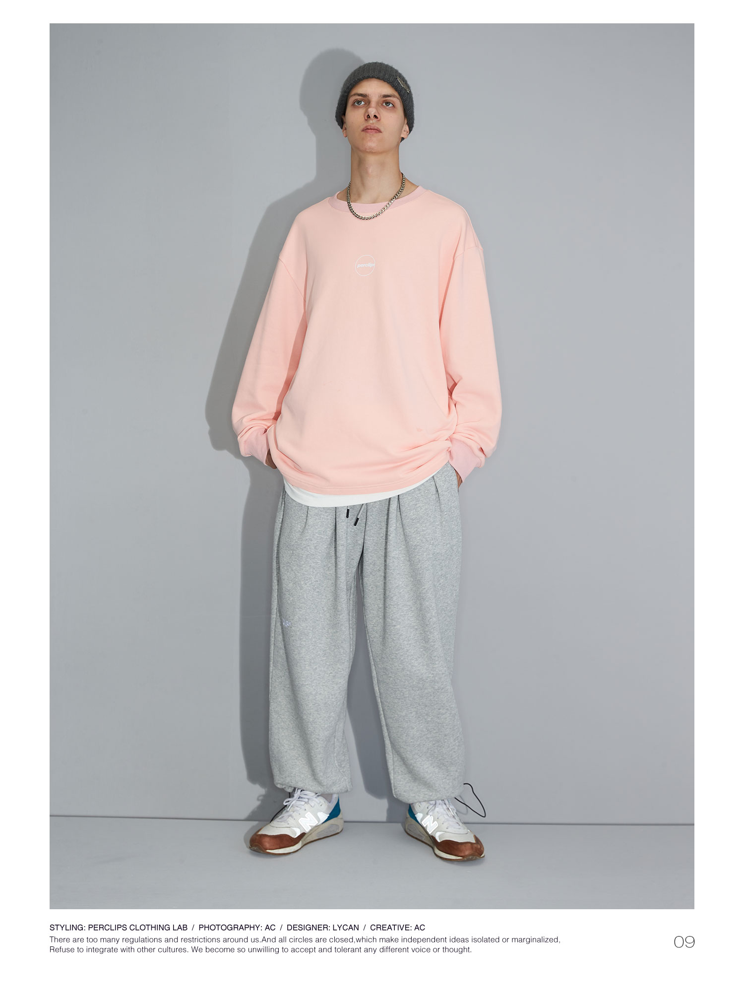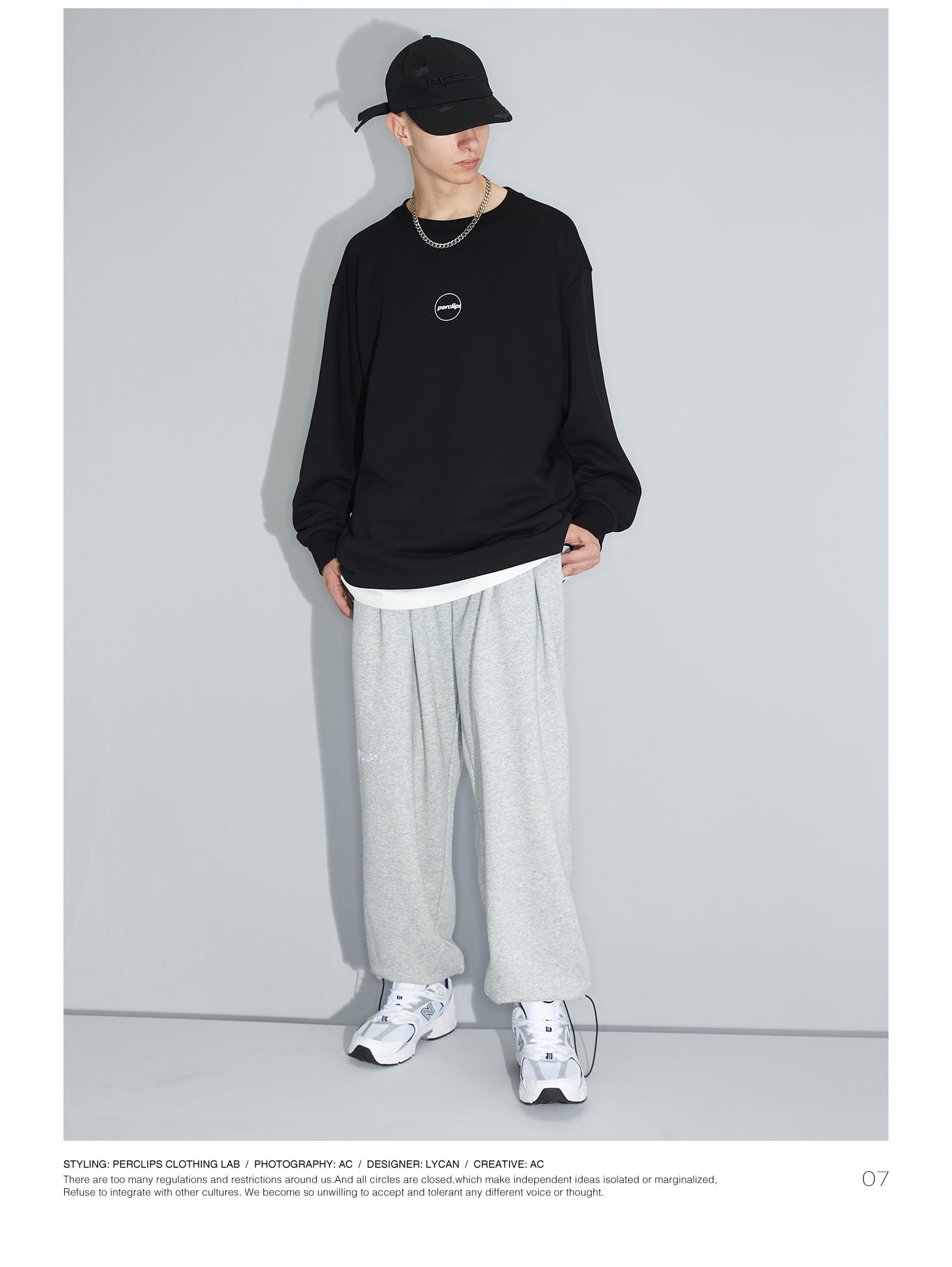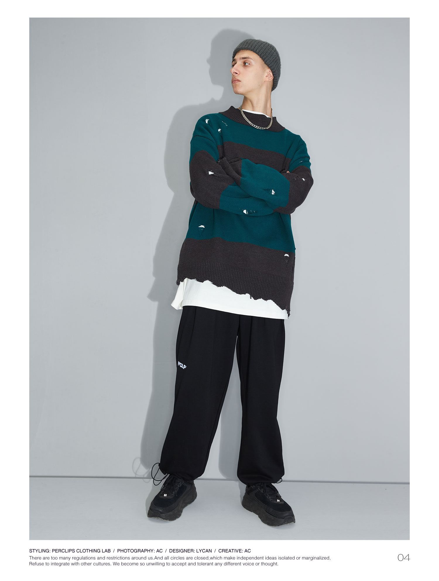 PCLP(PERCLIPS)休闲运动针织卫裤国潮牌工装宽松直筒抽绳束脚裤男