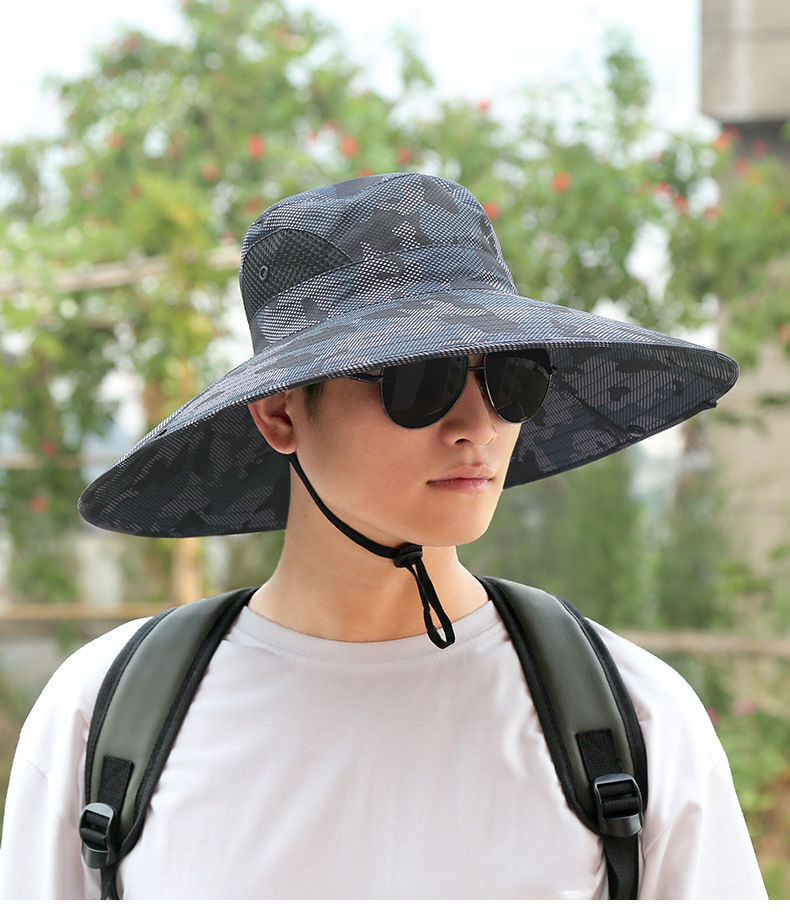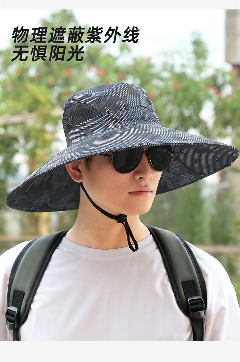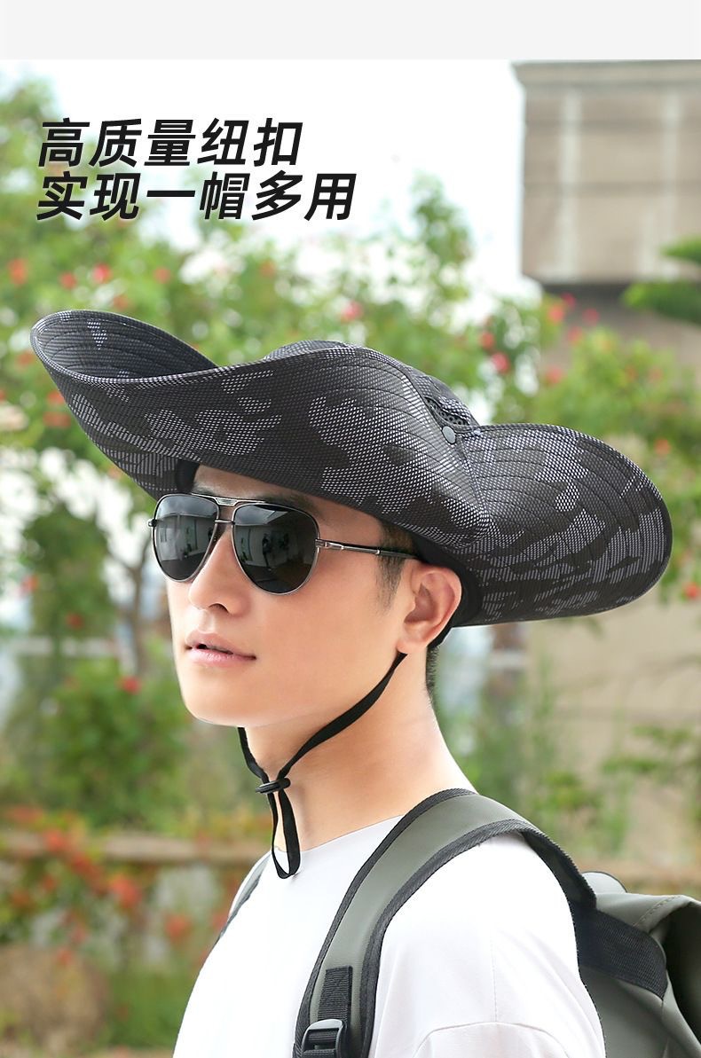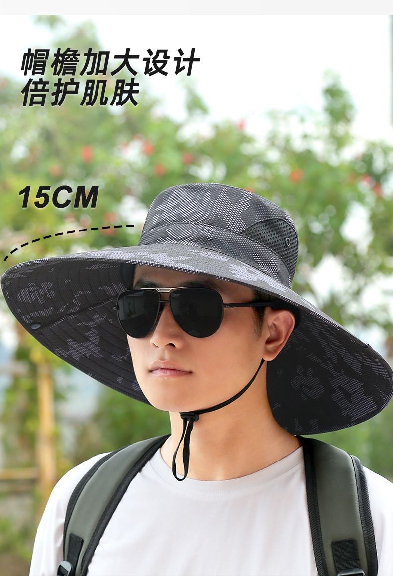 夏季防晒帽男士专用户外登山钓鱼帽迷彩大檐遮阳帽旅行防紫外线女