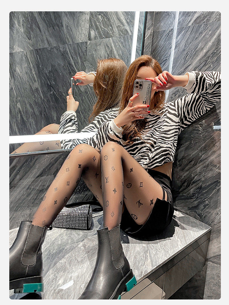 【网红巴黎黑字母丝袜 斩男神器】世家女性感薄款夏季L女童连裤袜 防勾丝袜