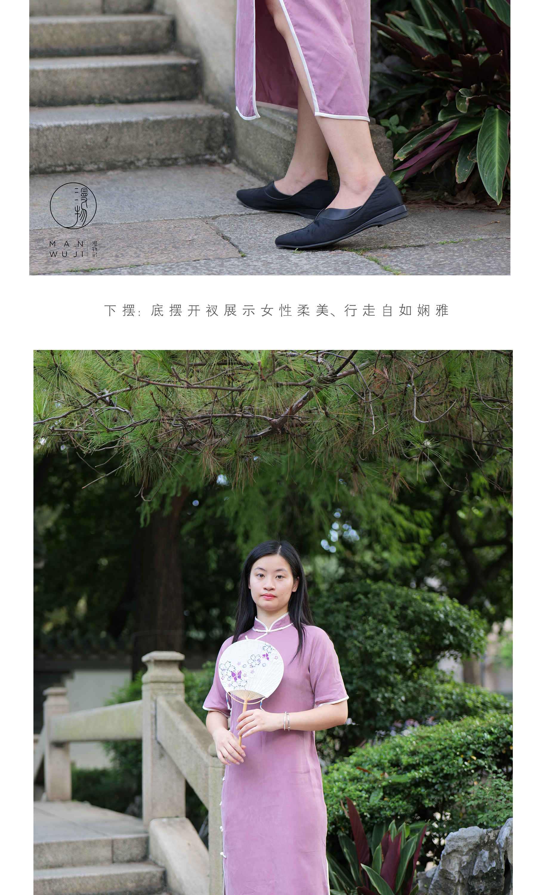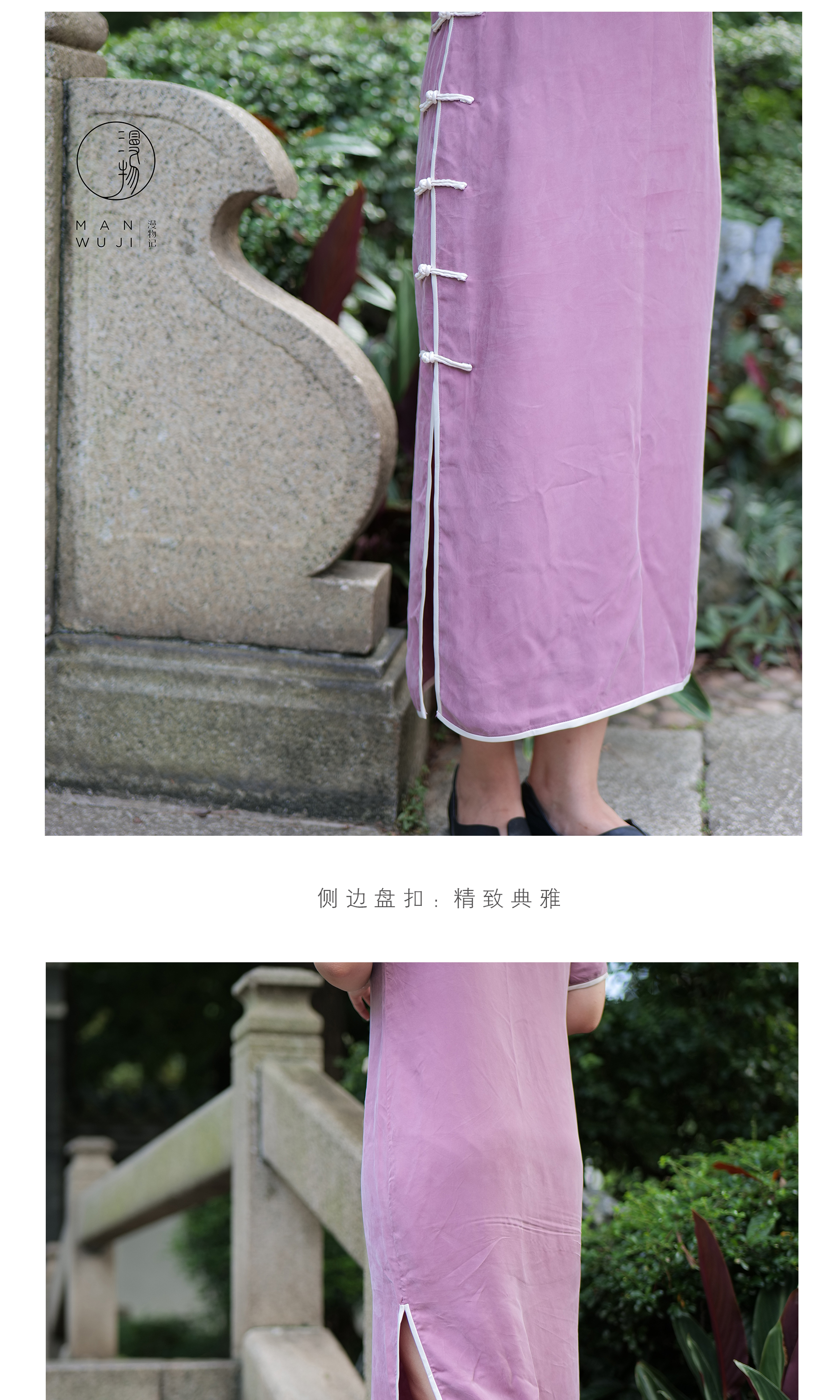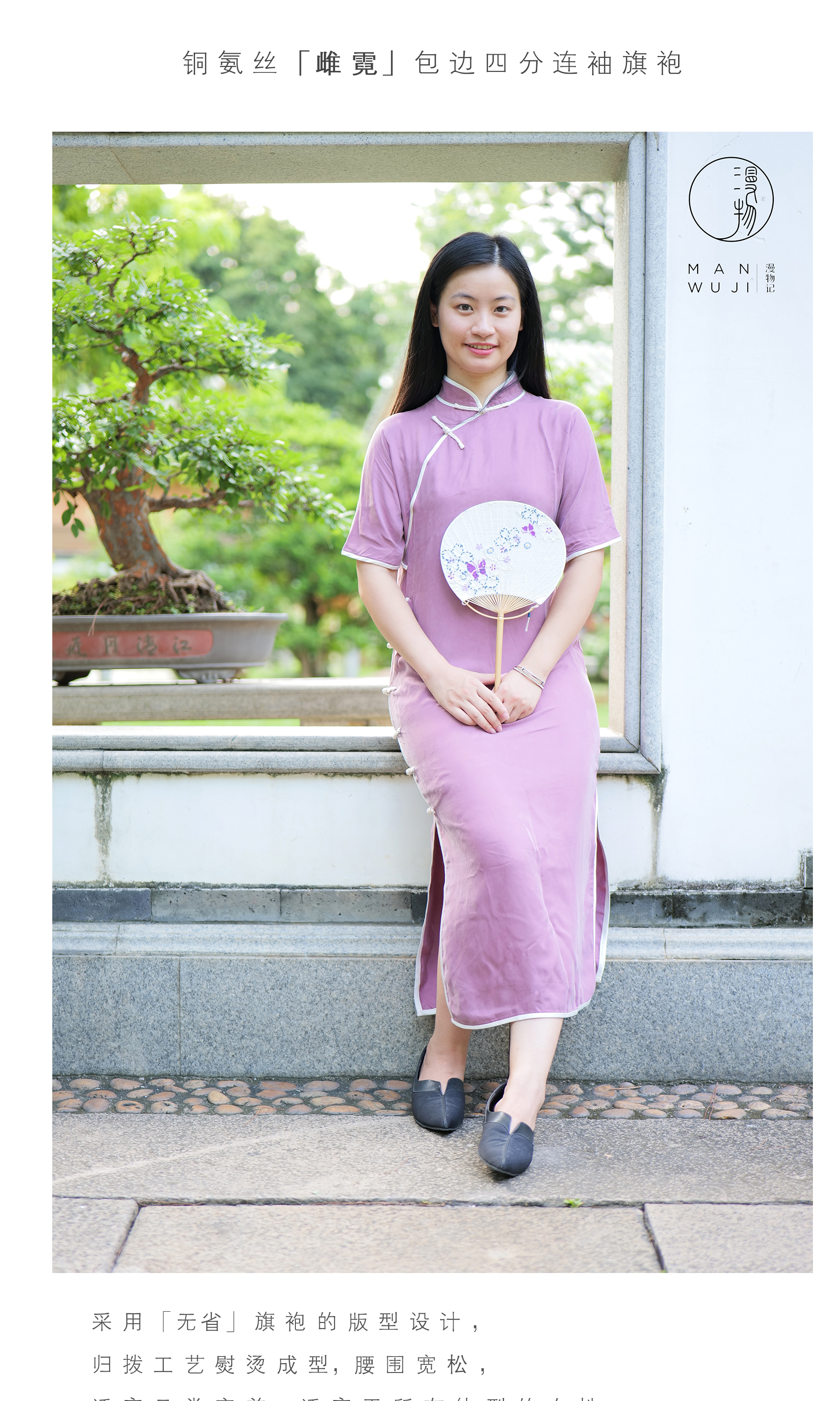 铜氨丝「雌-霓」包边四分连袖旗袍