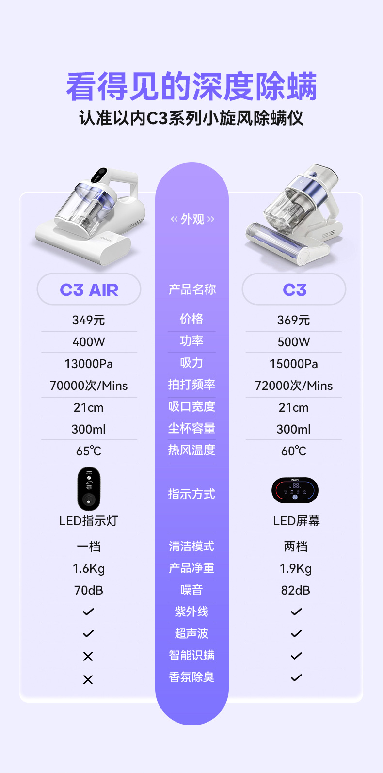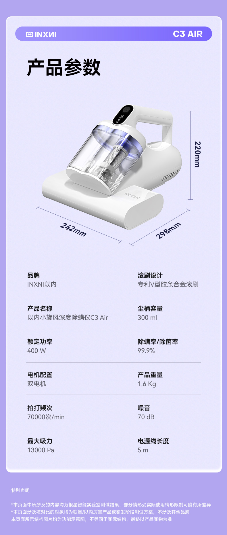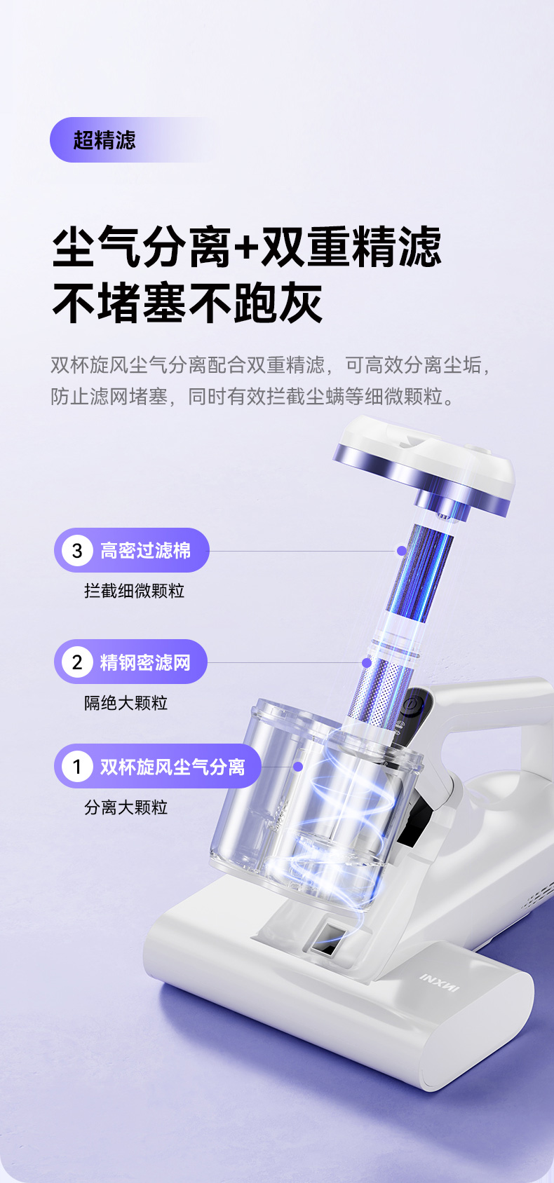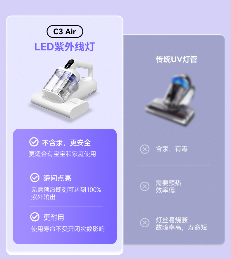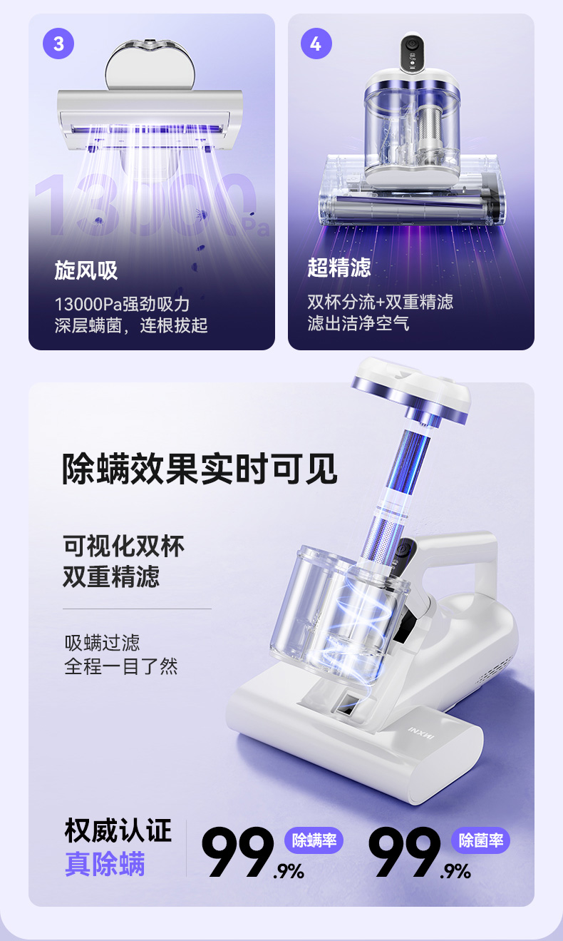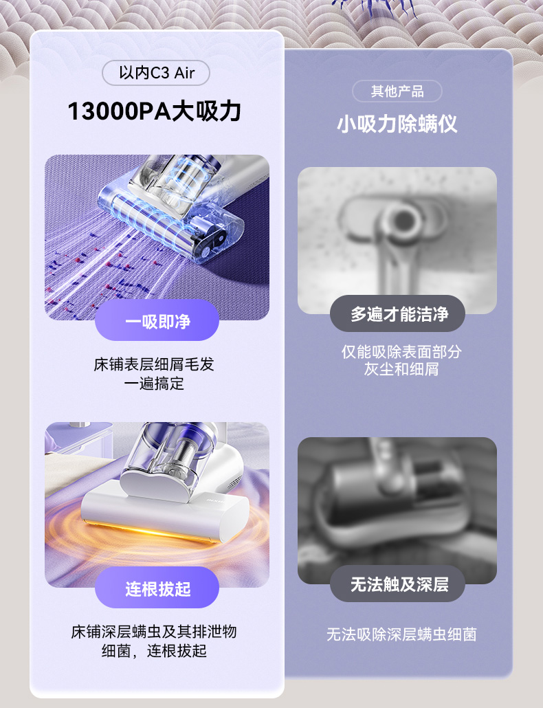 以内C3 AIR小旋风除螨仪家用床上吸尘器手持双杯15000Pa大吸力紫外线杀菌
