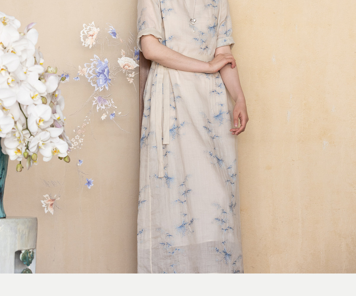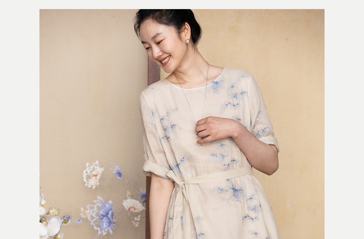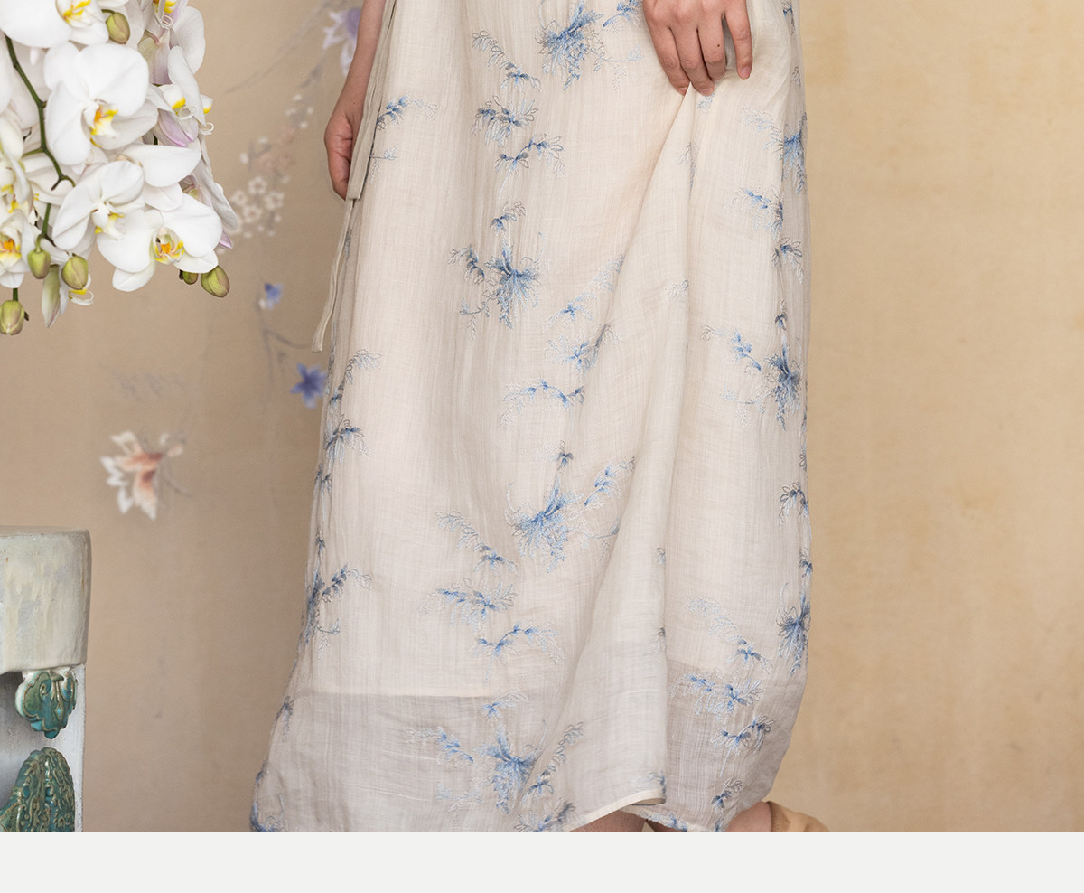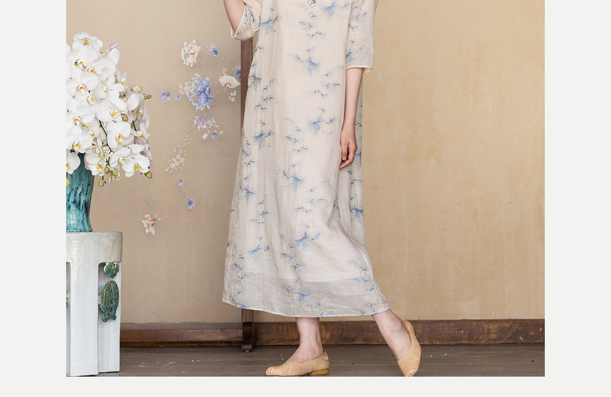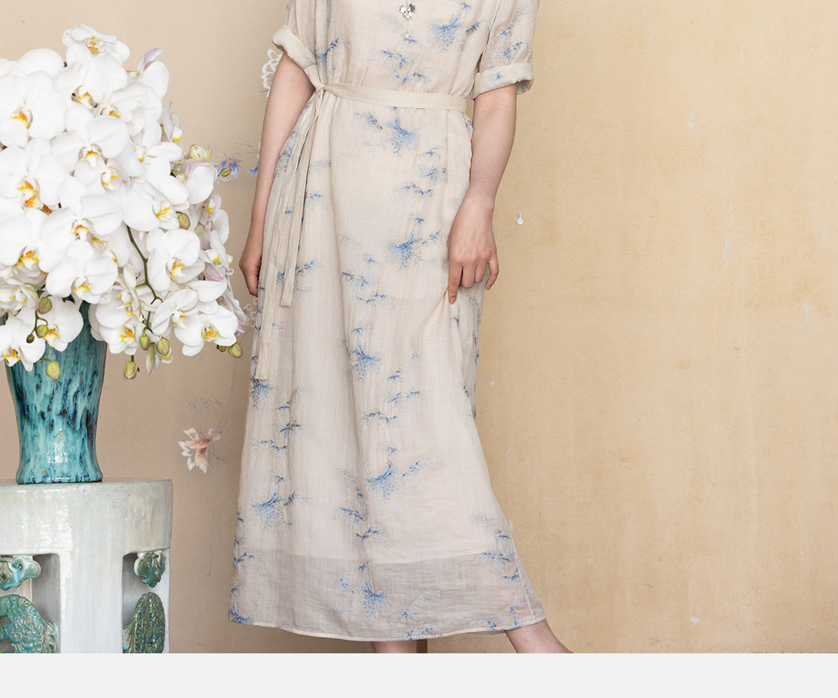 牧衣游原创 匹绣苎麻连衣裙女夏新款轻薄柔软宽松文艺长裙 知未了