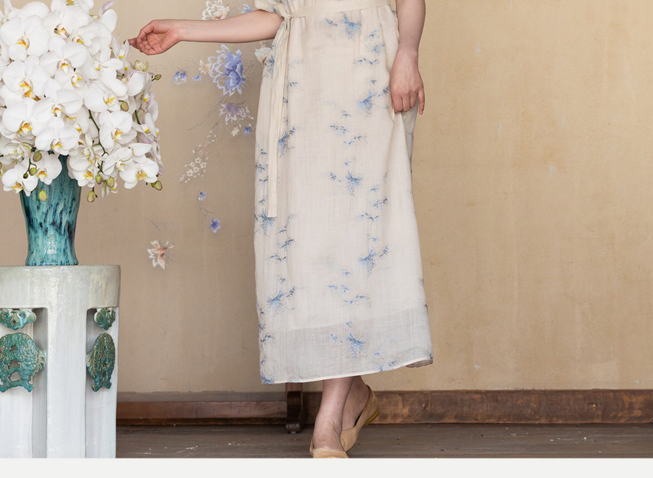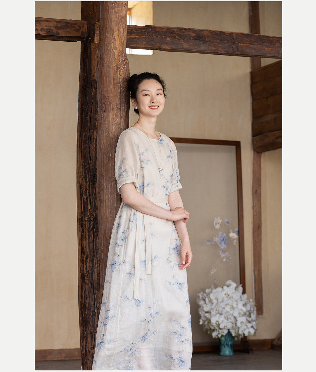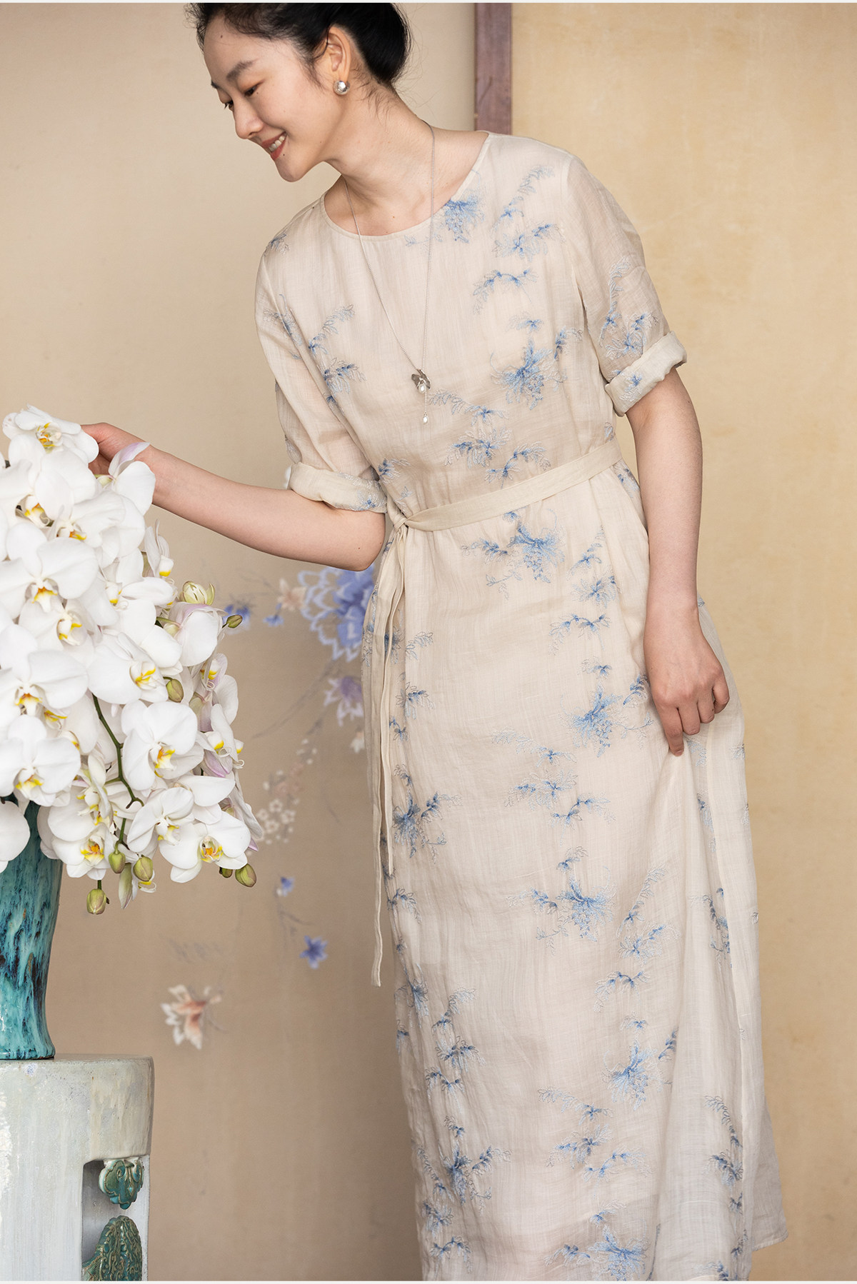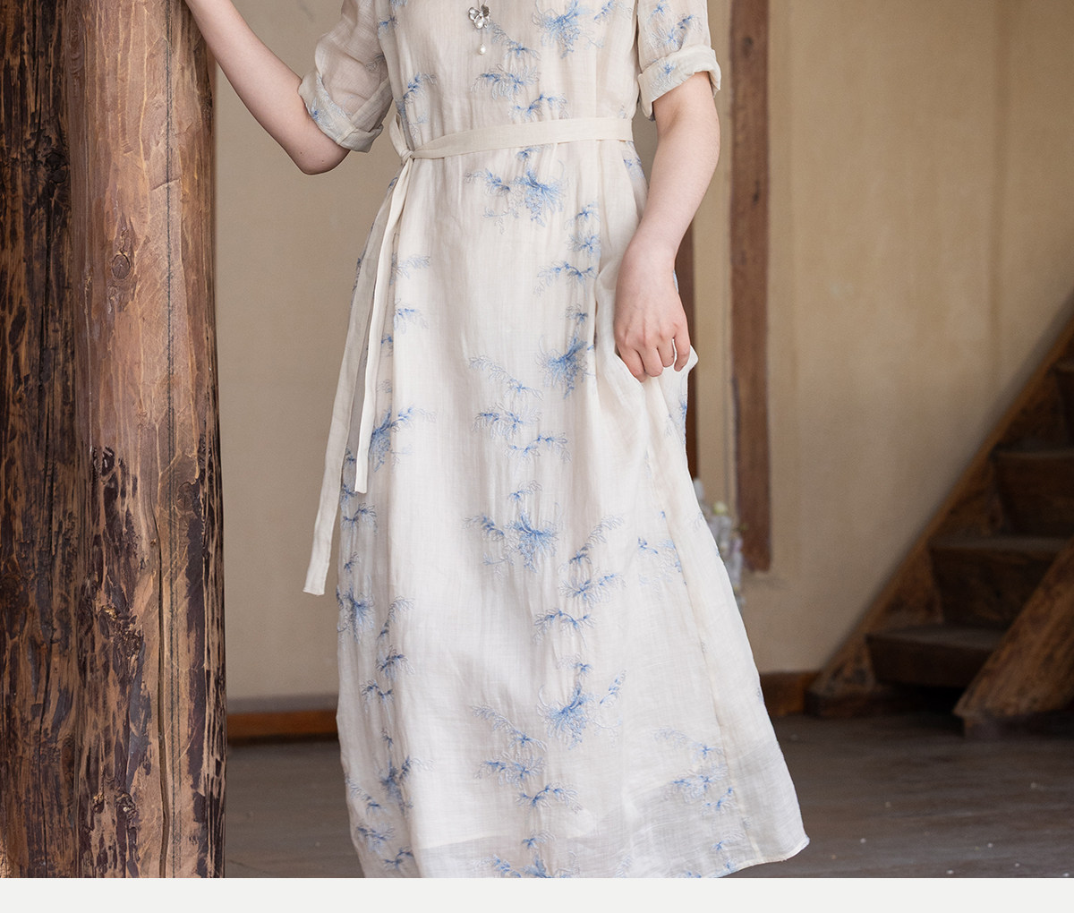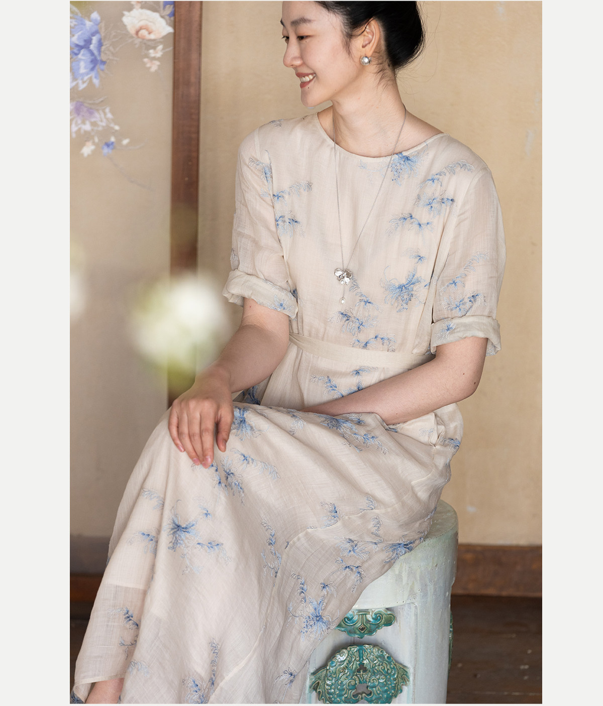 牧衣游原创 匹绣苎麻连衣裙女夏新款轻薄柔软宽松文艺长裙 知未了