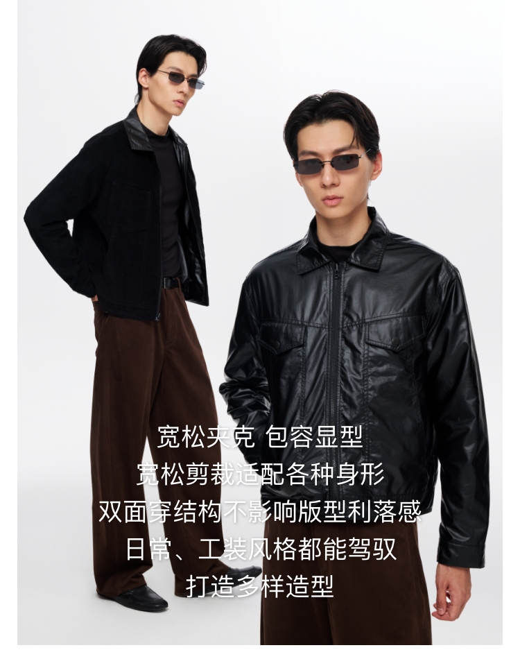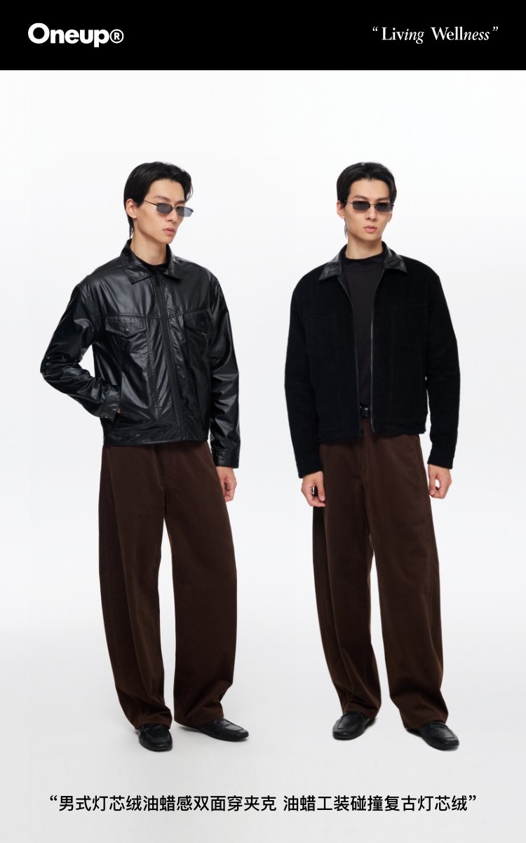 oneup男式灯芯绒油蜡感双面穿夹克