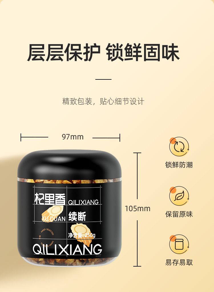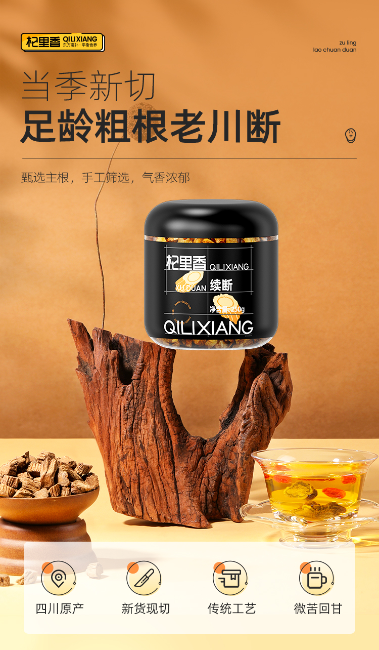 【春游必备】杞里香250g罐装续断四川好续断甄选足龄续断,颗粒饱满断面放射状菊花心,皮皱紧实,沟纹明显