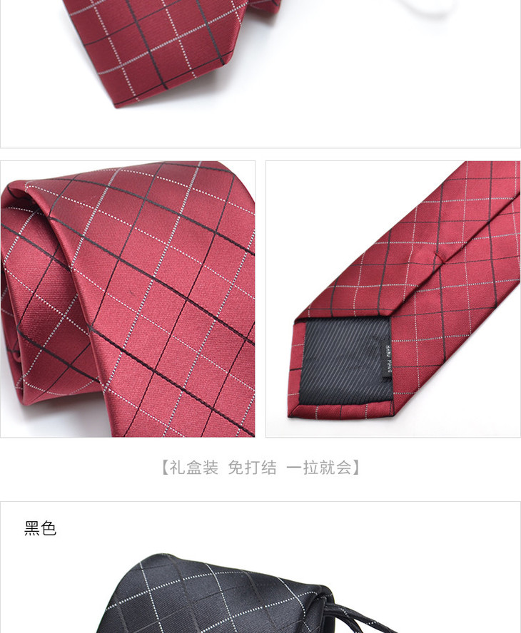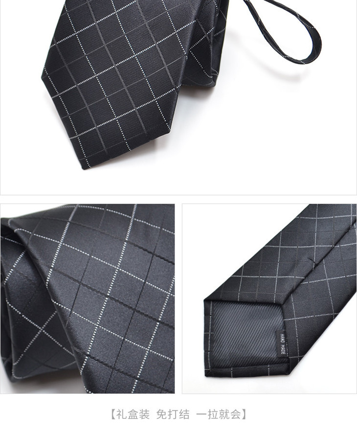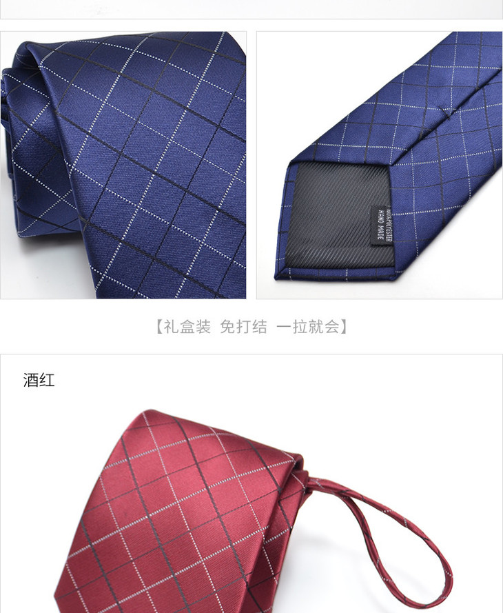 【盒装拉链领带】罗蒙领带男正装商务休闲上班蓝色格子懒人领带