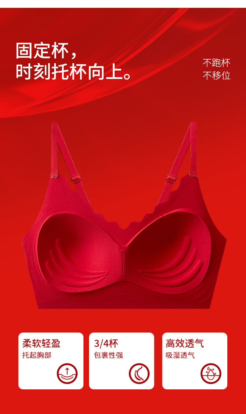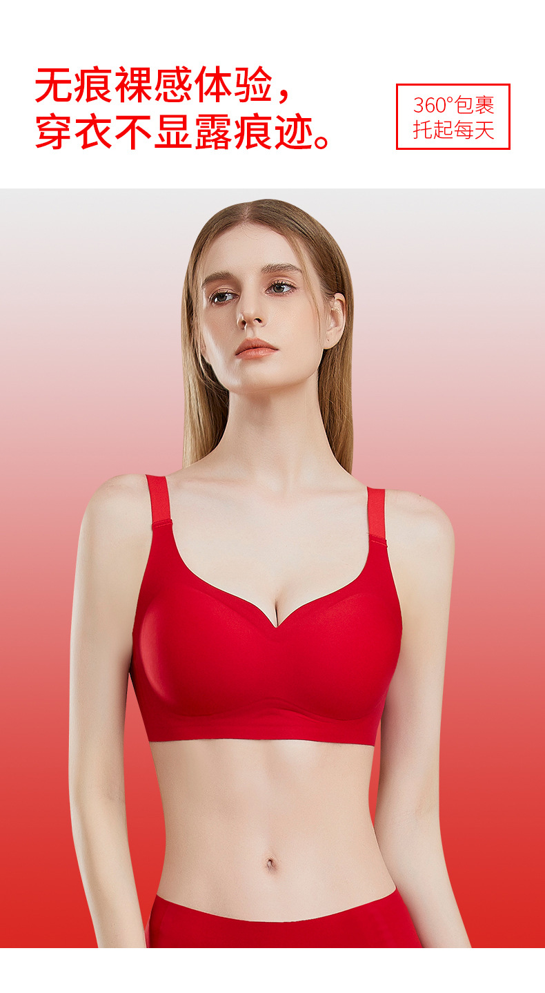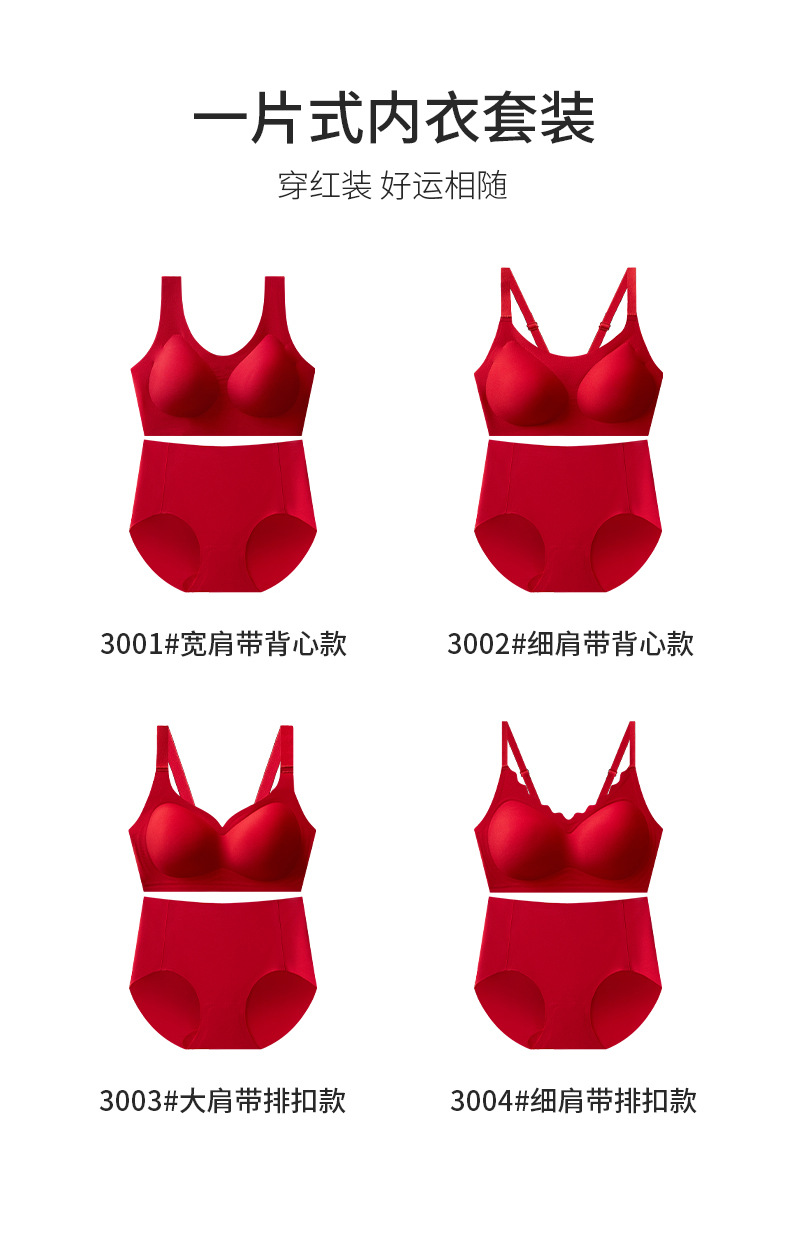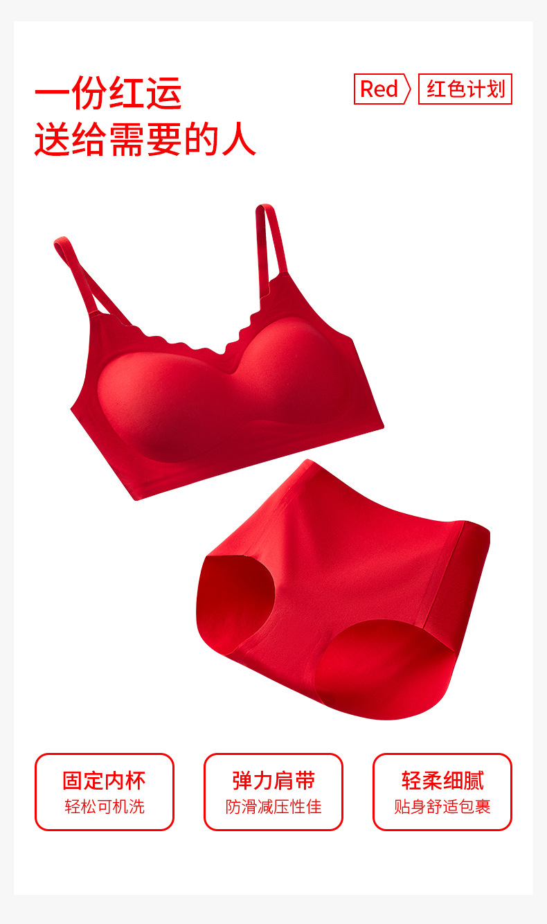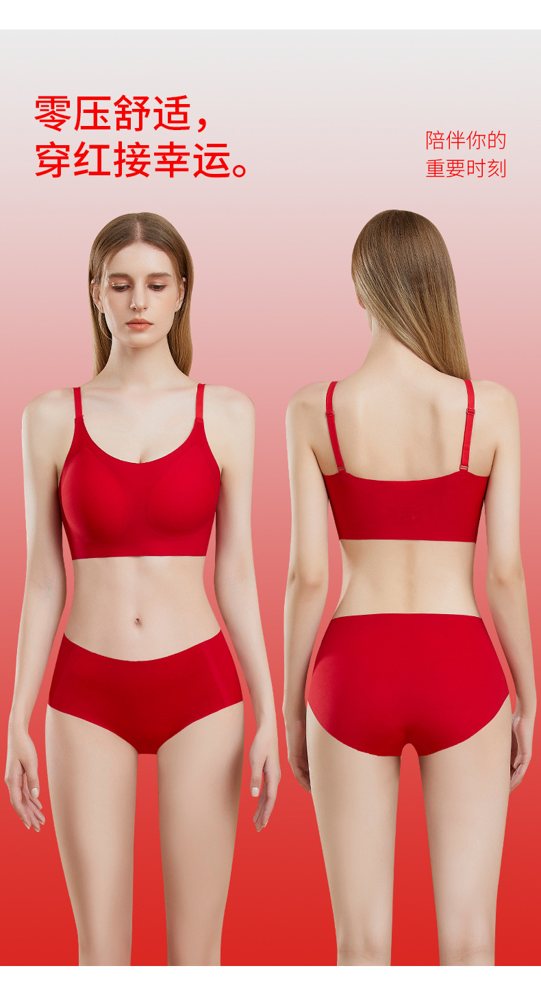 新年【幸运礼盒!大红色内衣套装】高质量红色无痕内衣裤 本命年无钢圈套装内衣 新娘结婚礼物 文胸套装