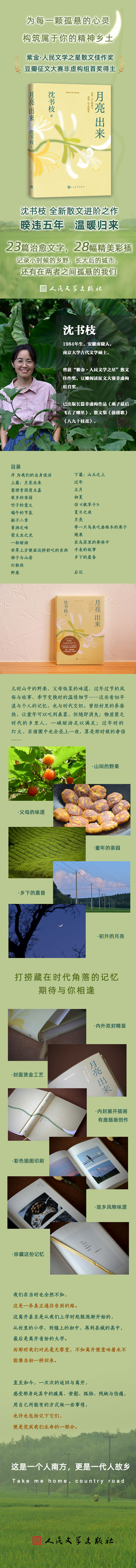 一直希望做家乡的自然书写者的沈书枝,在本书中,道出了所有离家游子漂泊在外的悬置感。小时候的乡野,长大后的城市,还有在两者之间孤悬的我们。那时我们不知,离开,便意味着永不能像当初一样回来。而“月亮”正是千百年来,中国人对于乡情的寄托与期盼——“但愿人长久,千里共婵娟。”