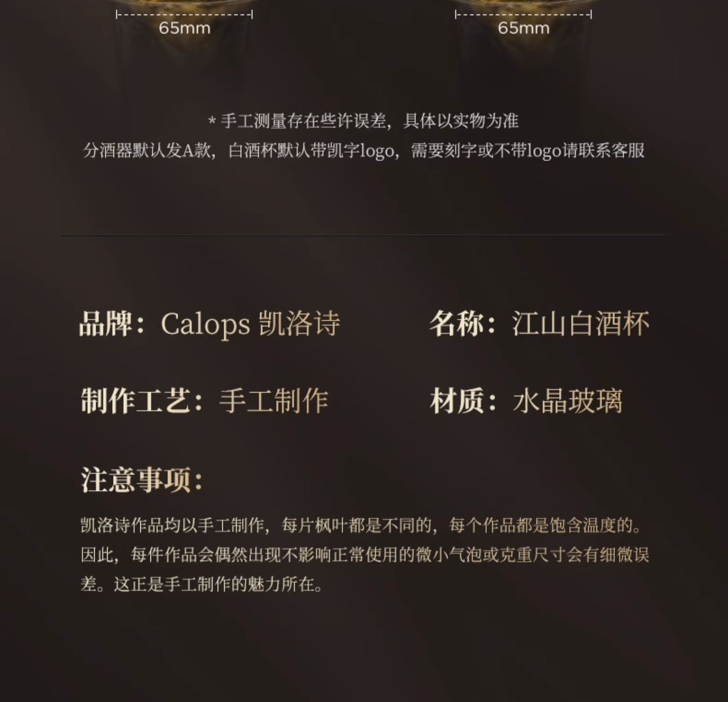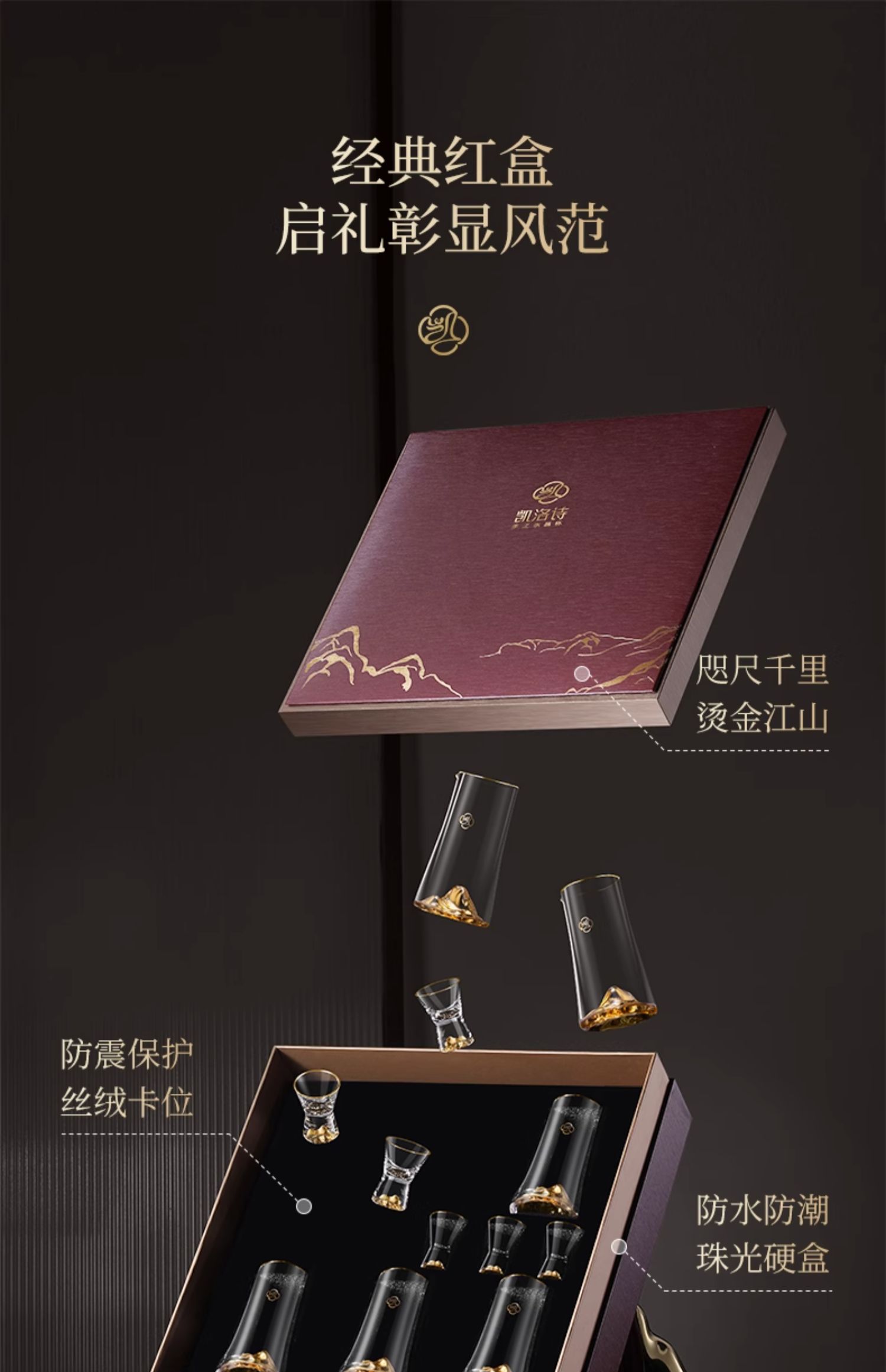 凯洛诗CALOPS江山白酒杯套装水晶玻璃杯分酒器家用小酒杯高端酒具凯洛诗江山白酒礼盒套装六壶六杯无铅水晶
