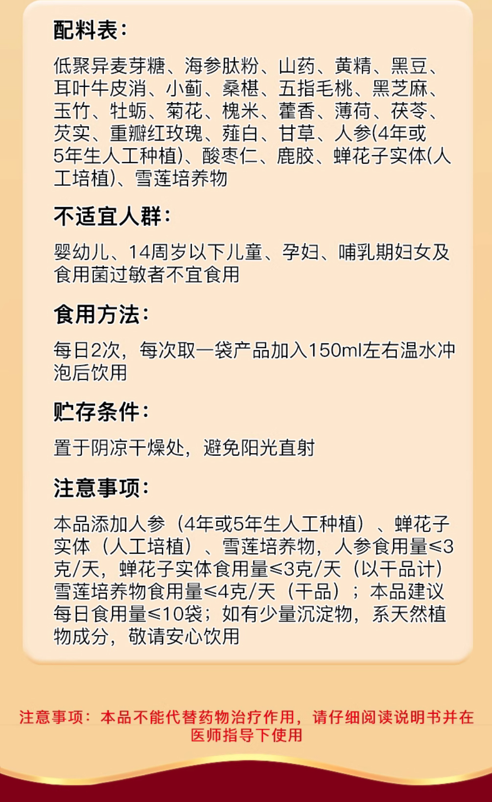食用方法:每日两次,每次1袋,加150ml温水冲泡