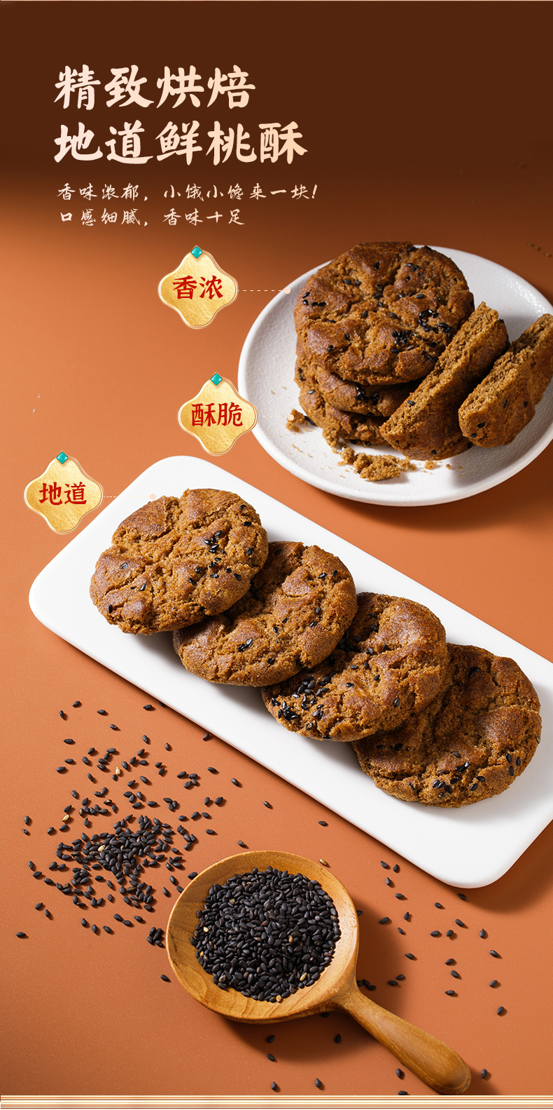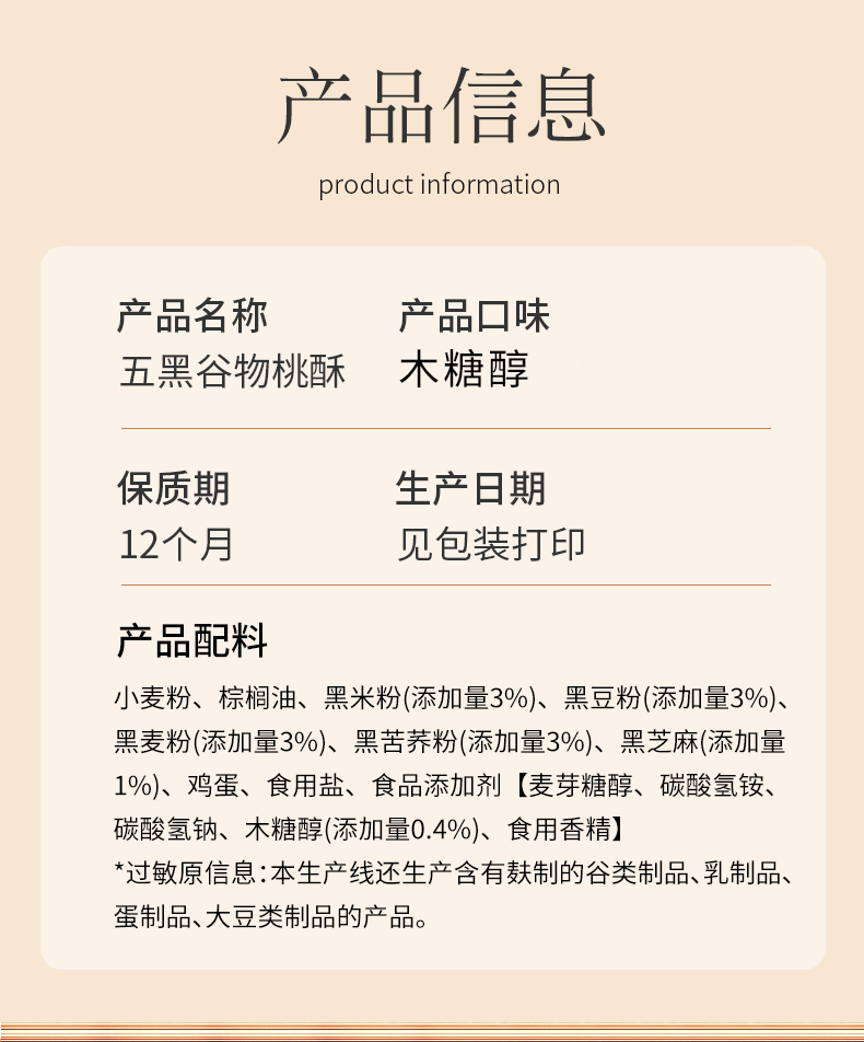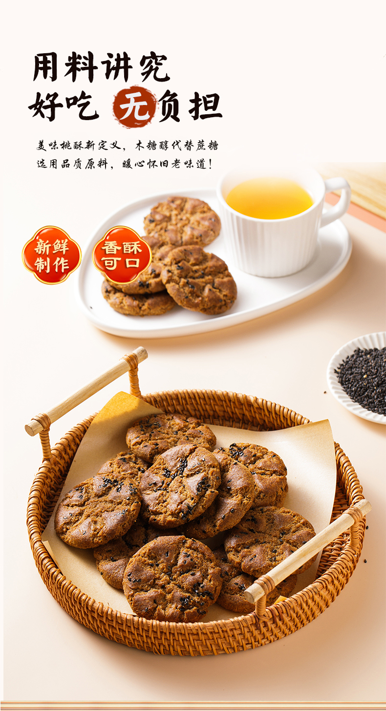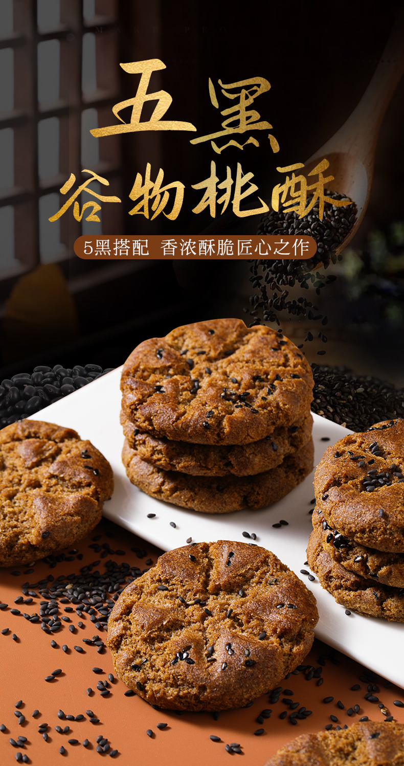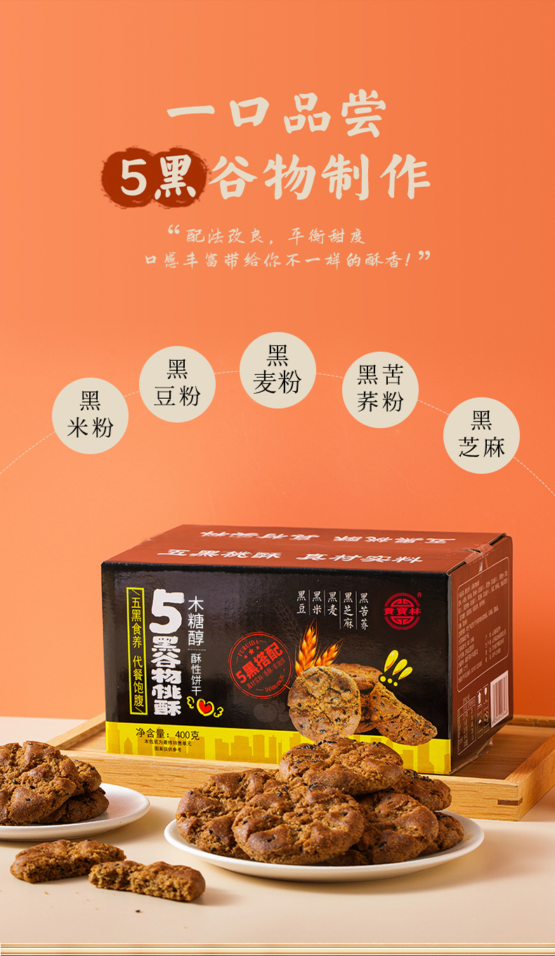 贡宝林木糖醇五黑谷物桃酥,五黑食养,代餐饱腹400克/盒