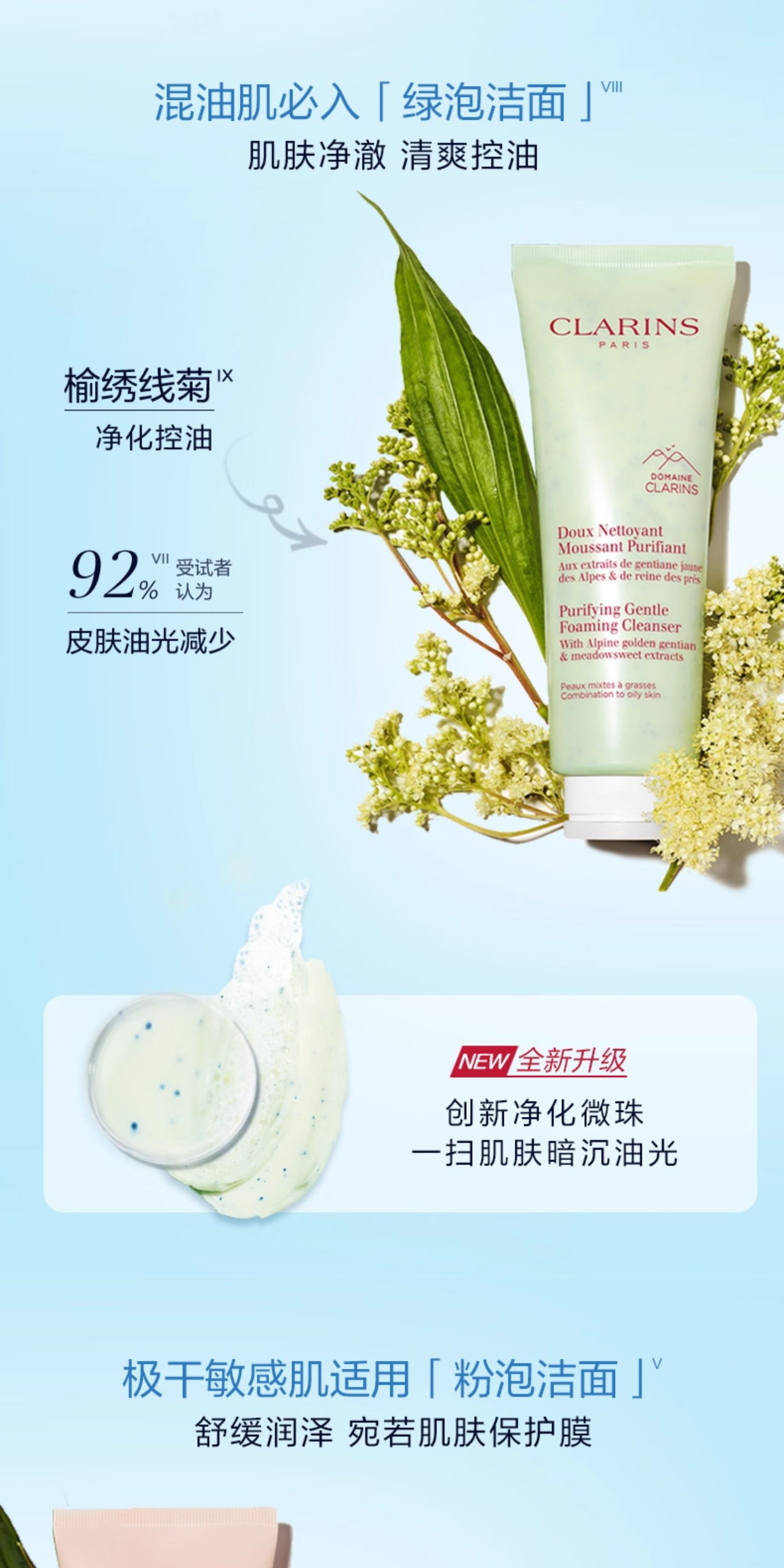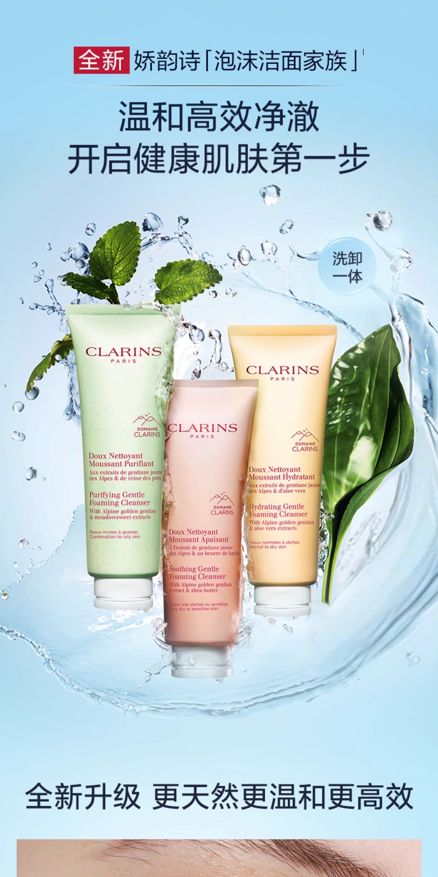 娇韵诗 全新温和泡沫洁面乳 黄绿粉洁面