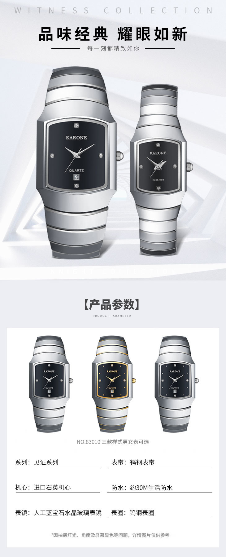 RARONE雷诺表高光系列石英对表83010
