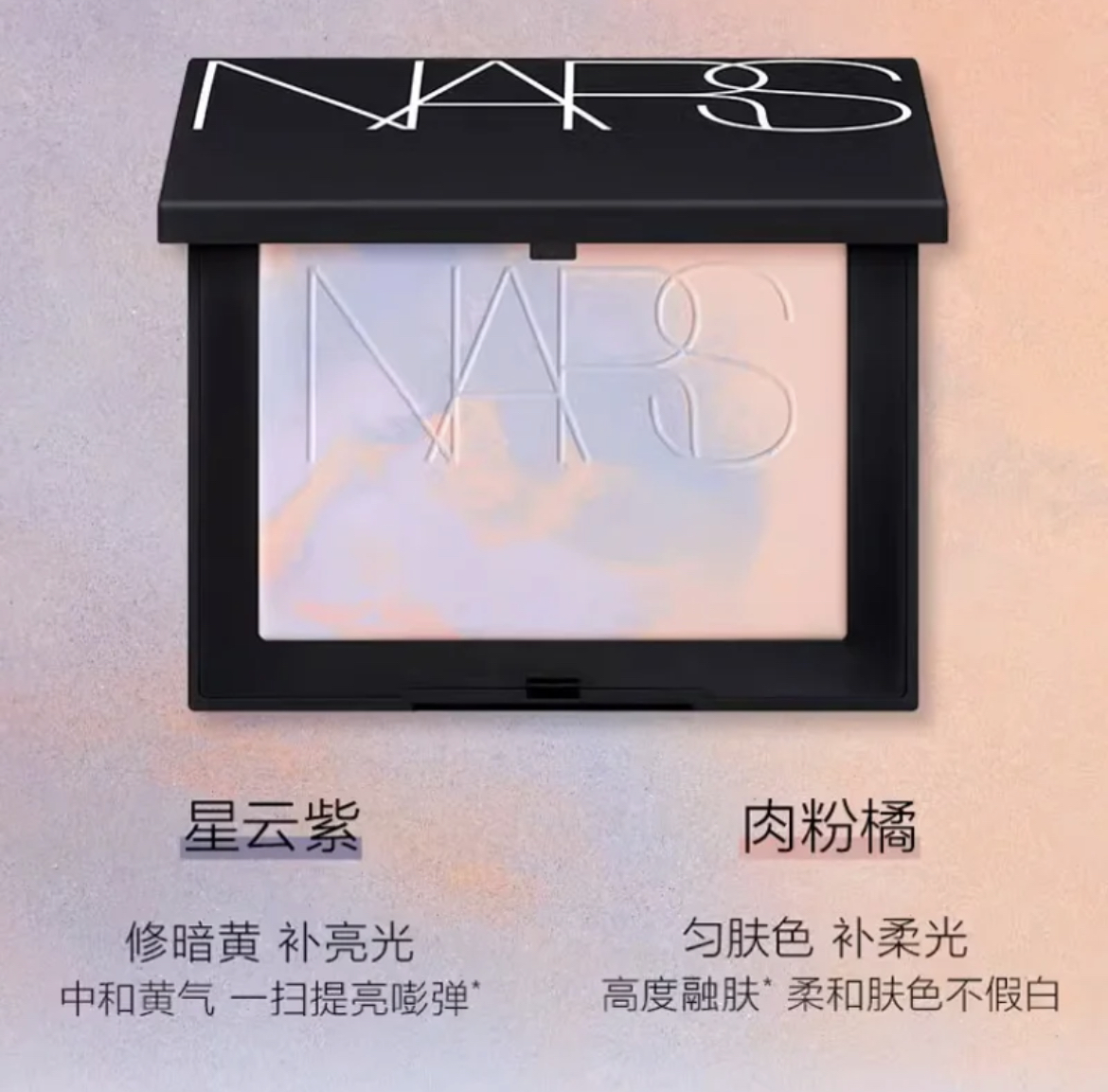 Nars新版大白饼「星云紫」 蜜粉饼 流光清透蜜粉饼控油持久遮瑕提亮
