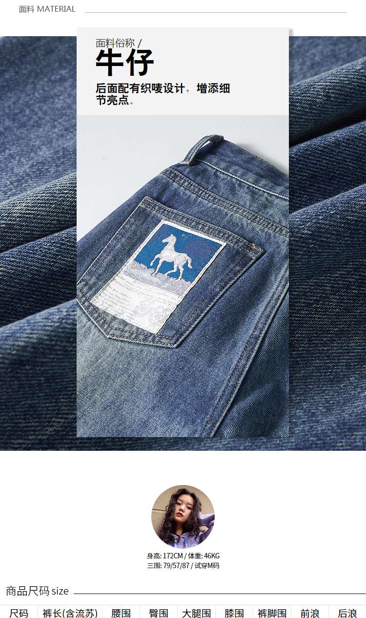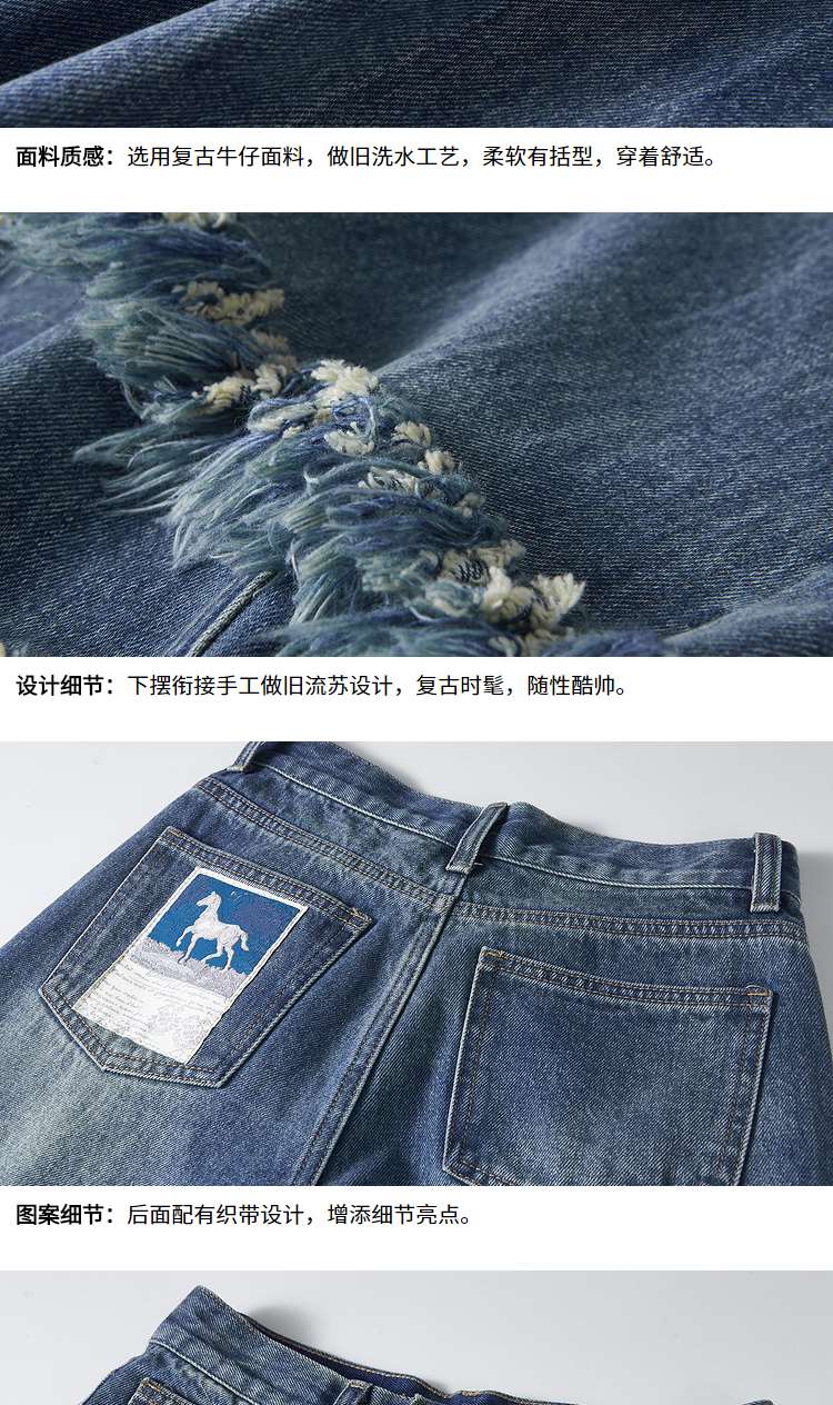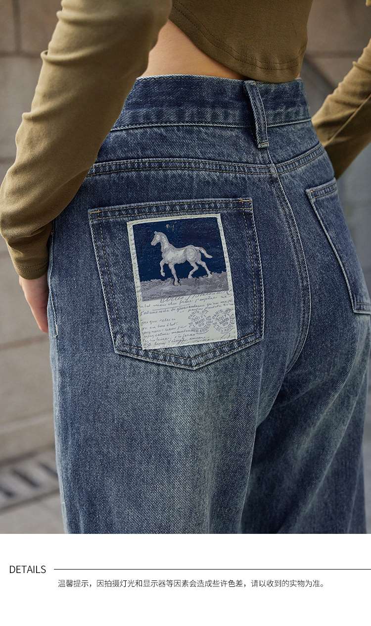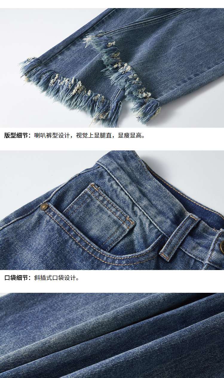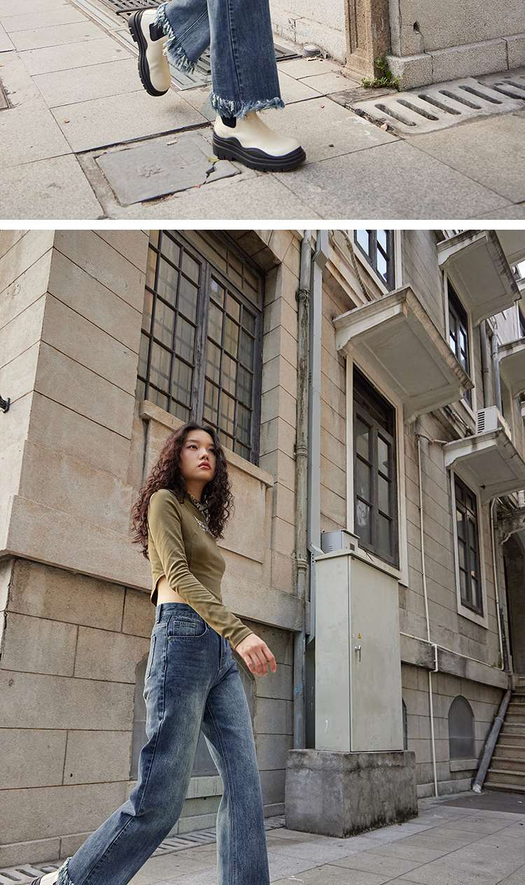 两三事又一匹马 2022冬季新款时尚抽绳装饰流苏裤脚直筒牛仔裤女