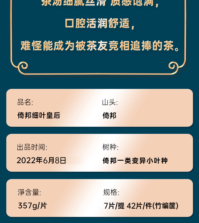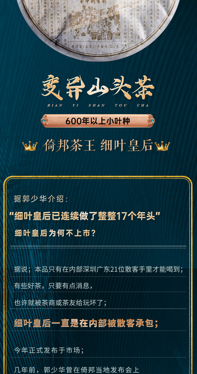 【深夜茶堂开启】2022年头春!倚邦变异小叶种 “细叶皇后” 古树茶!357g/饼!!!七片送一片!