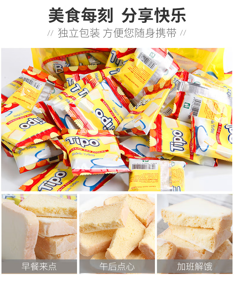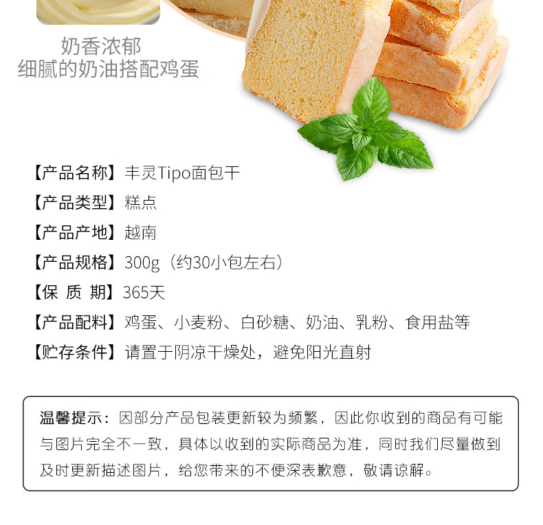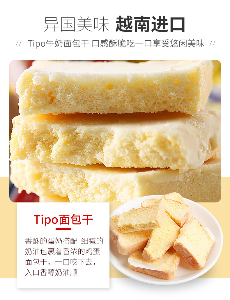 越南进口Tipo面包干片300g牛奶鸡蛋味榴莲味早餐代餐饼干休闲零食
