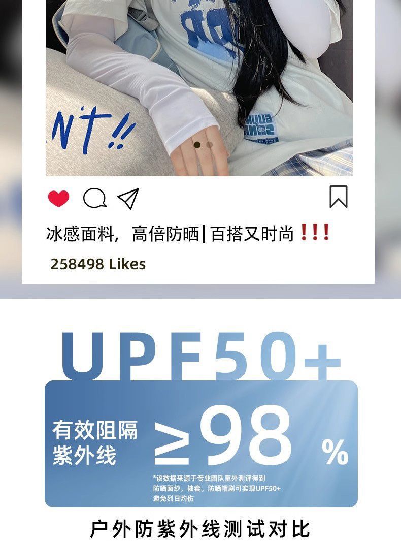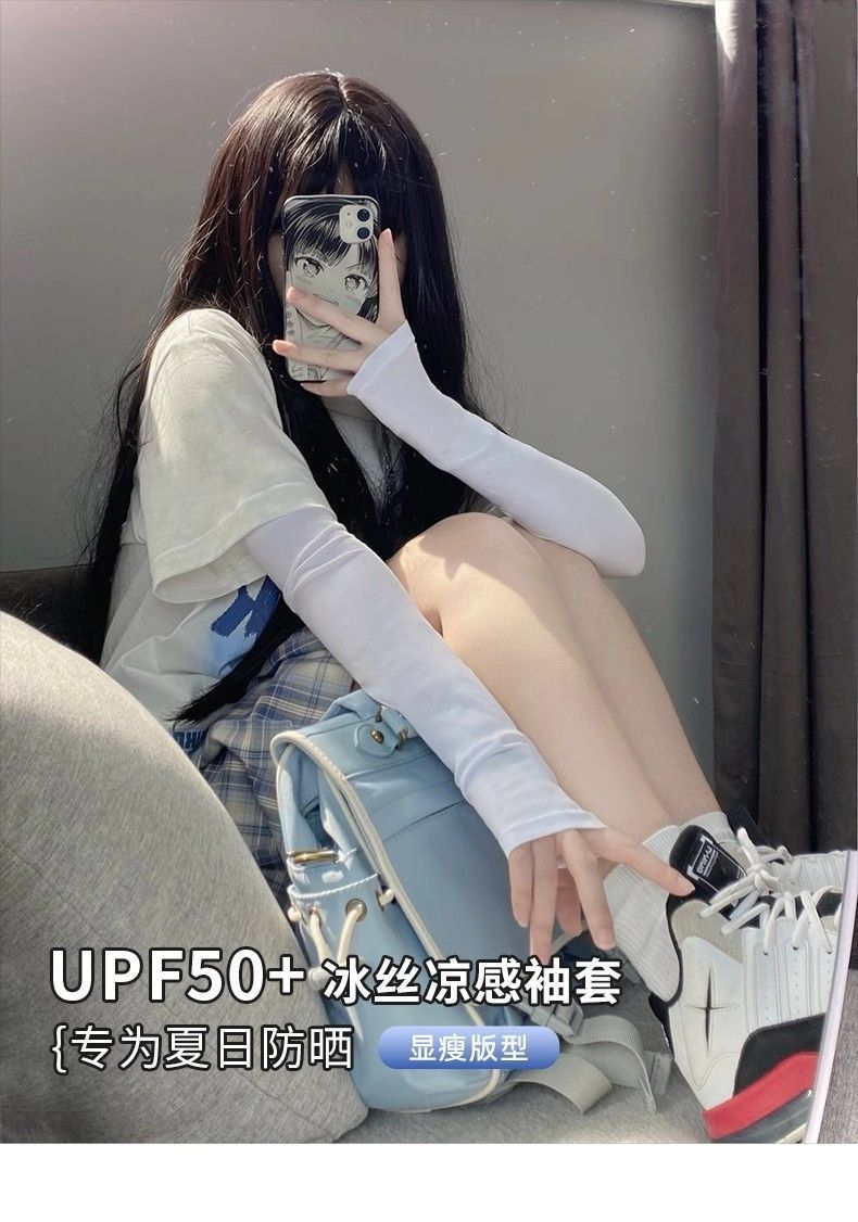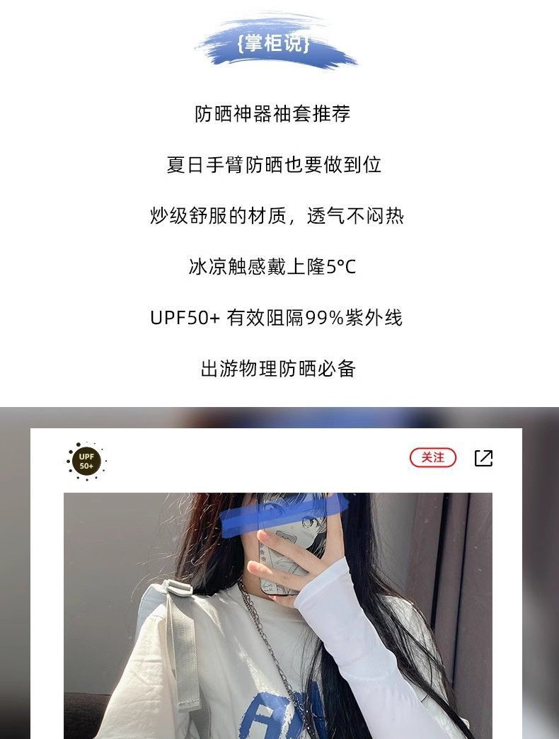 【9.9到手❗️UPF50+冰丝凉感袖套】炒级舒服的材质,透气不闷热,有效阻隔紫外线,薄款冰丝宽松袖套女手套,骑行防紫外线冰袖护臂L