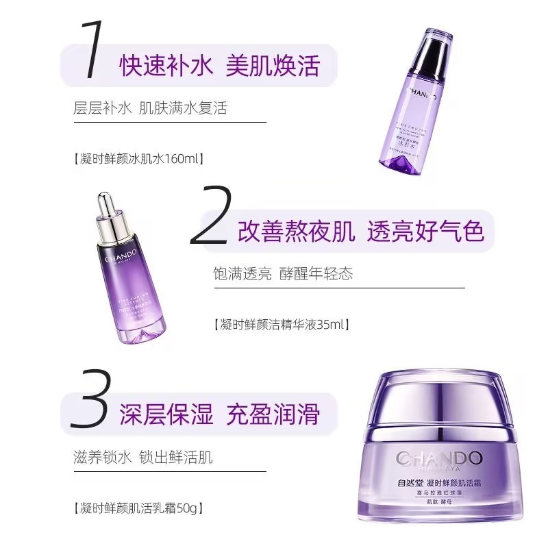 自然堂凝时鲜颜肌活精华抗皱滋润三件套(水霜精)