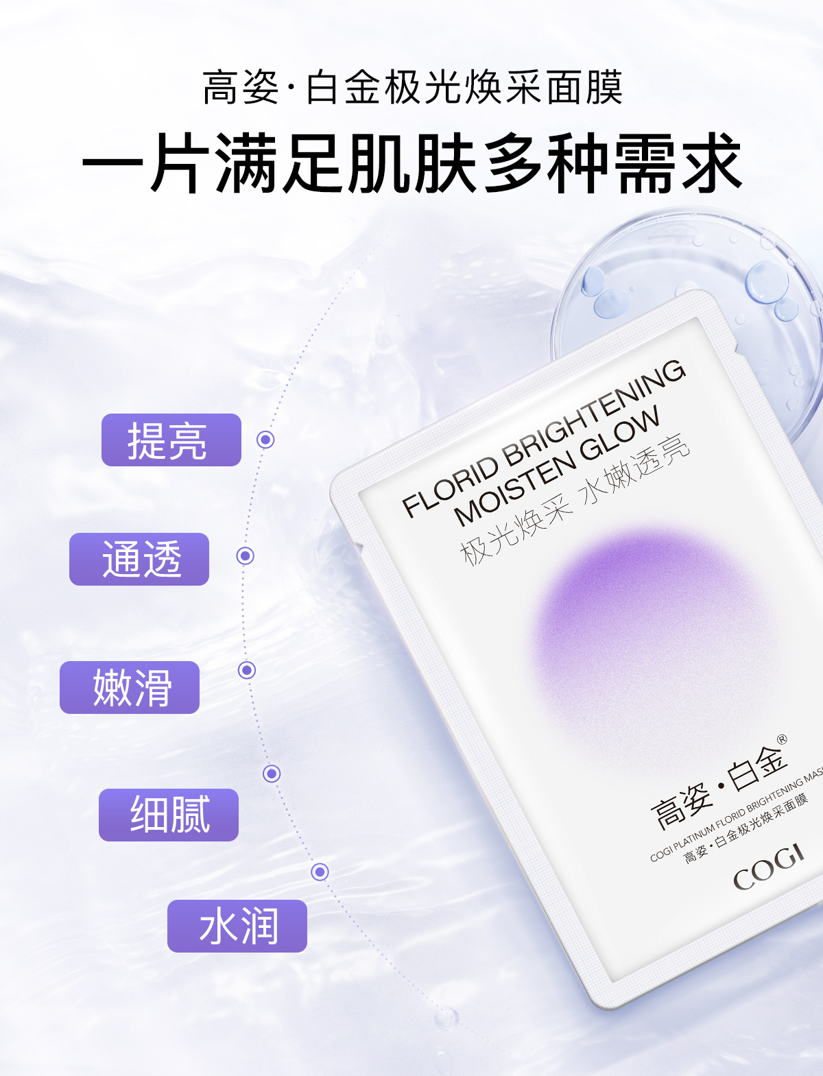 【护肤好物|高姿·白金极光焕采面膜/精华液系列】采用法国进口白松露进行植萃,内含有5重神经酰胺,膜布轻柔贴肤,质地丝滑水润,易吸收不黏腻,一片满足肌肤多种需求,解锁透亮「肌」密