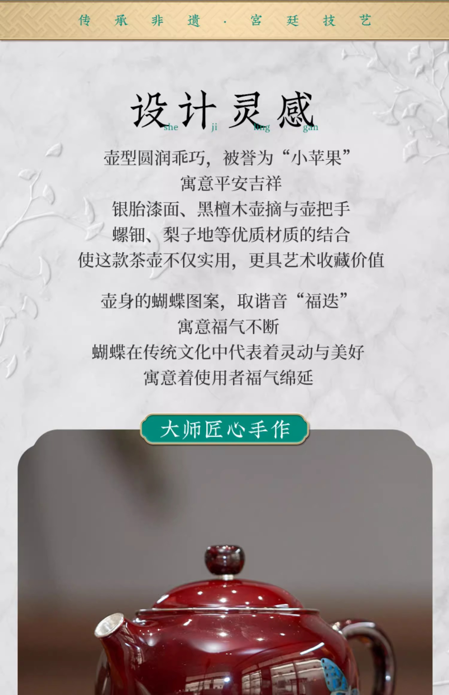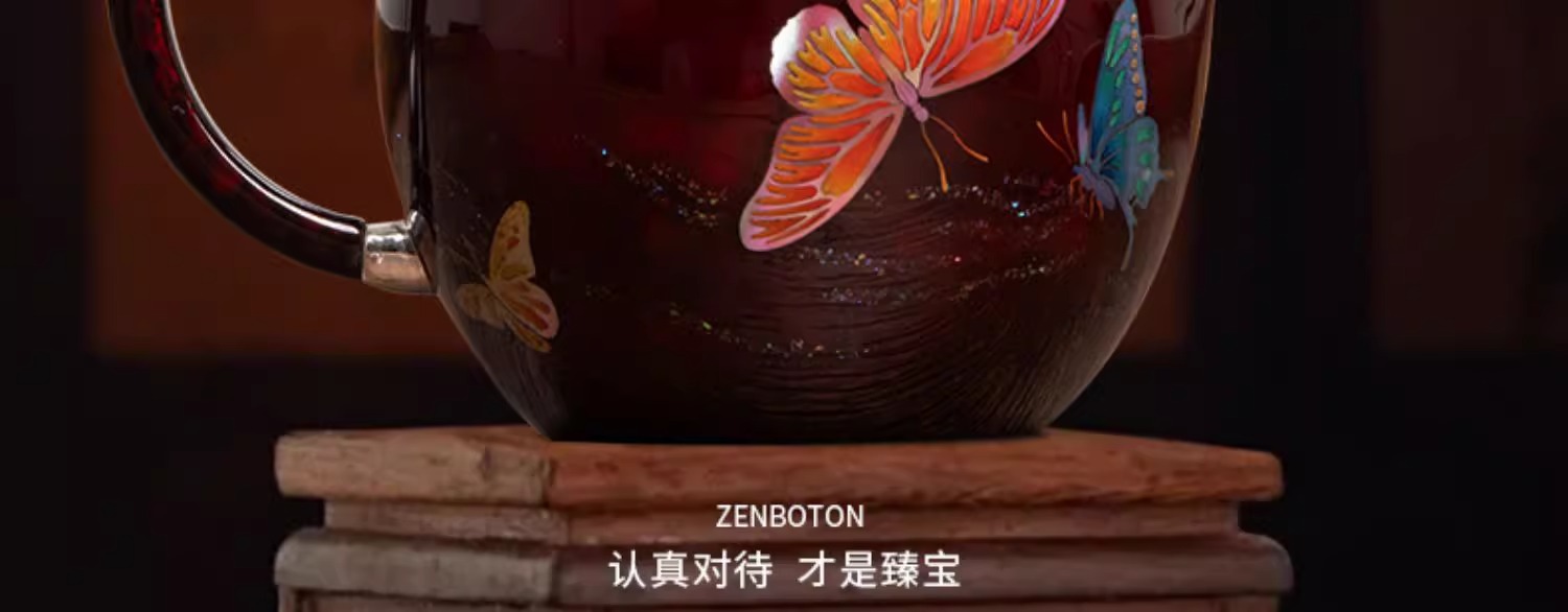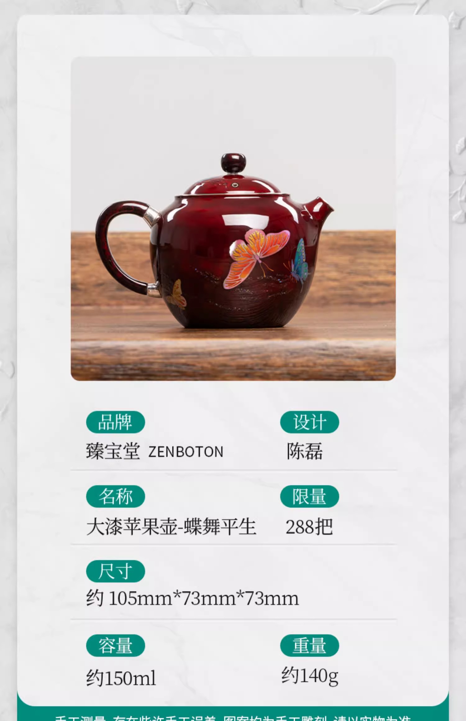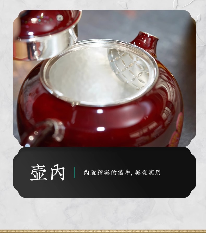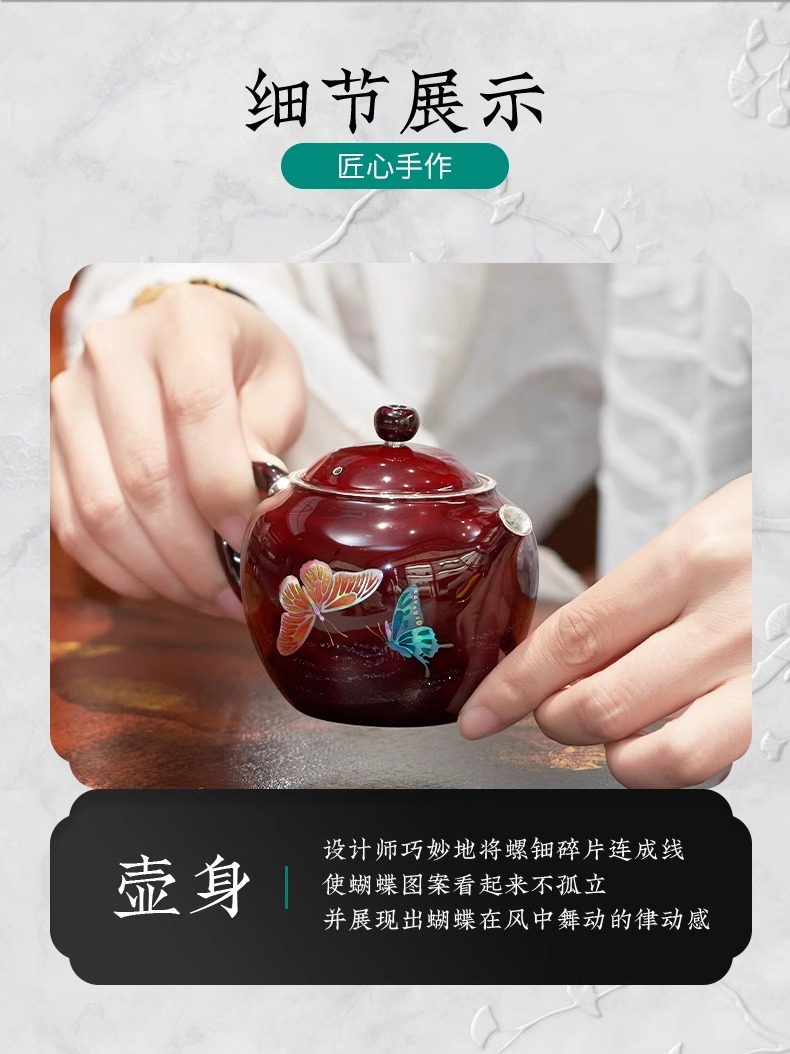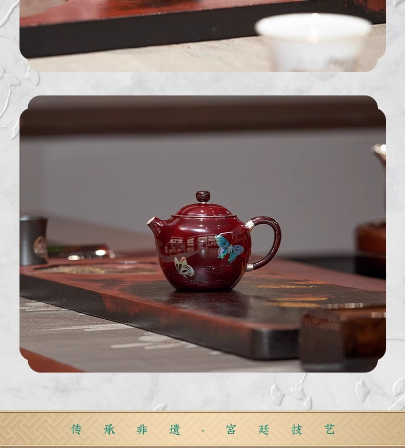 【样品特惠7折,仅1件,无货退款】臻宝堂银壶大漆苹果壶999纯银泡茶壶纯手工制作高档茶具足银茶壶大漆苹果壶-蝶舞生平150ml