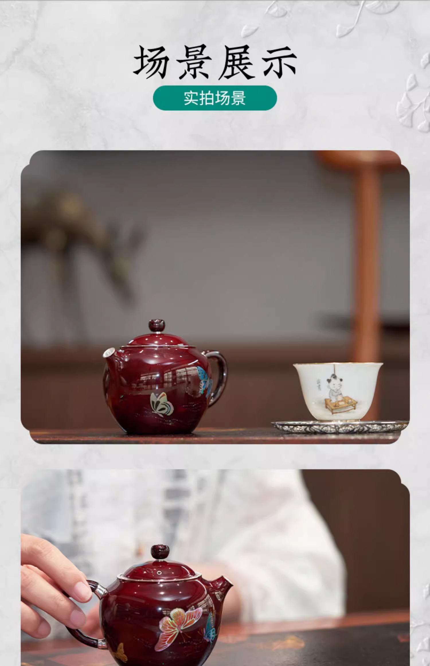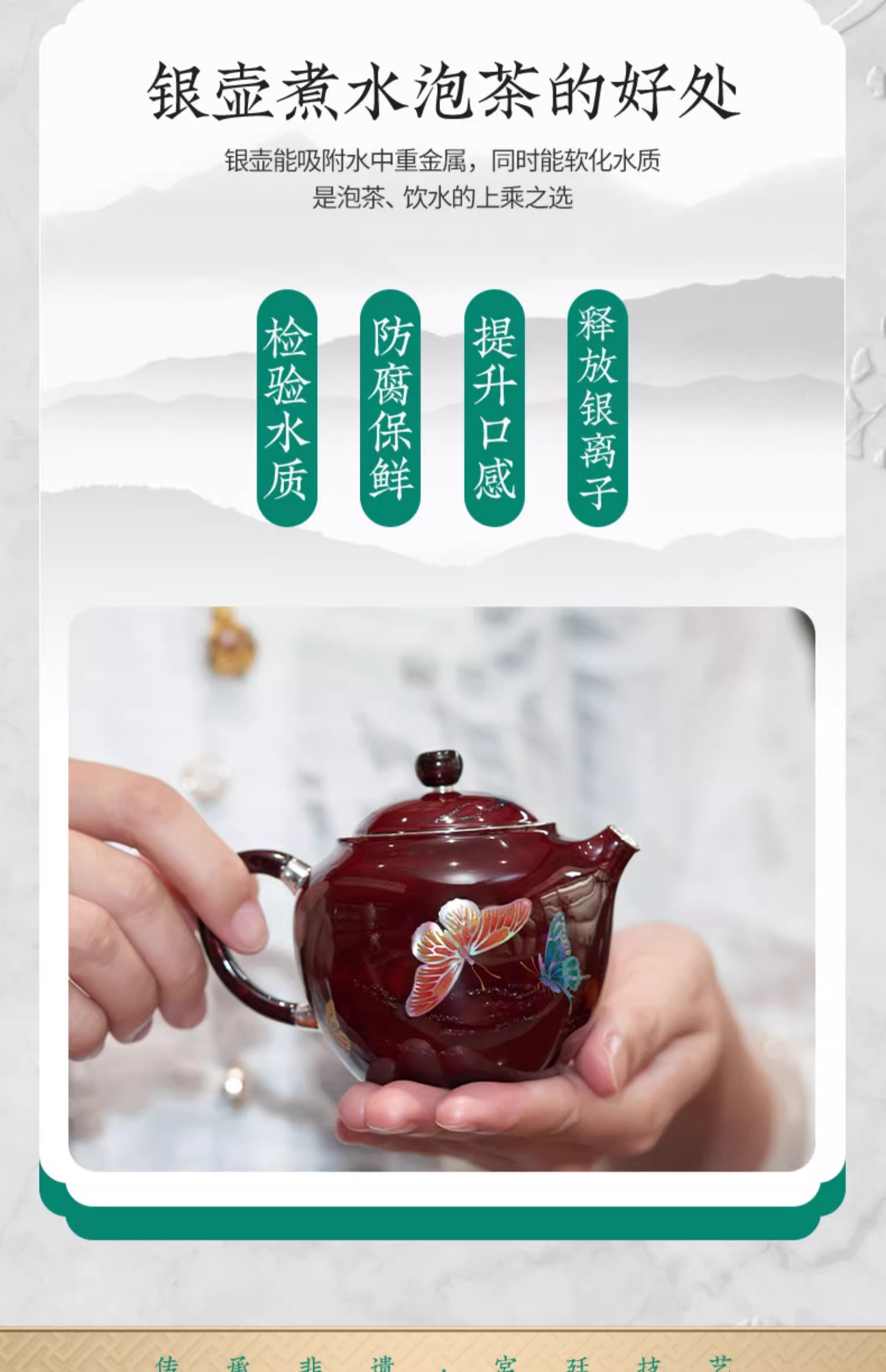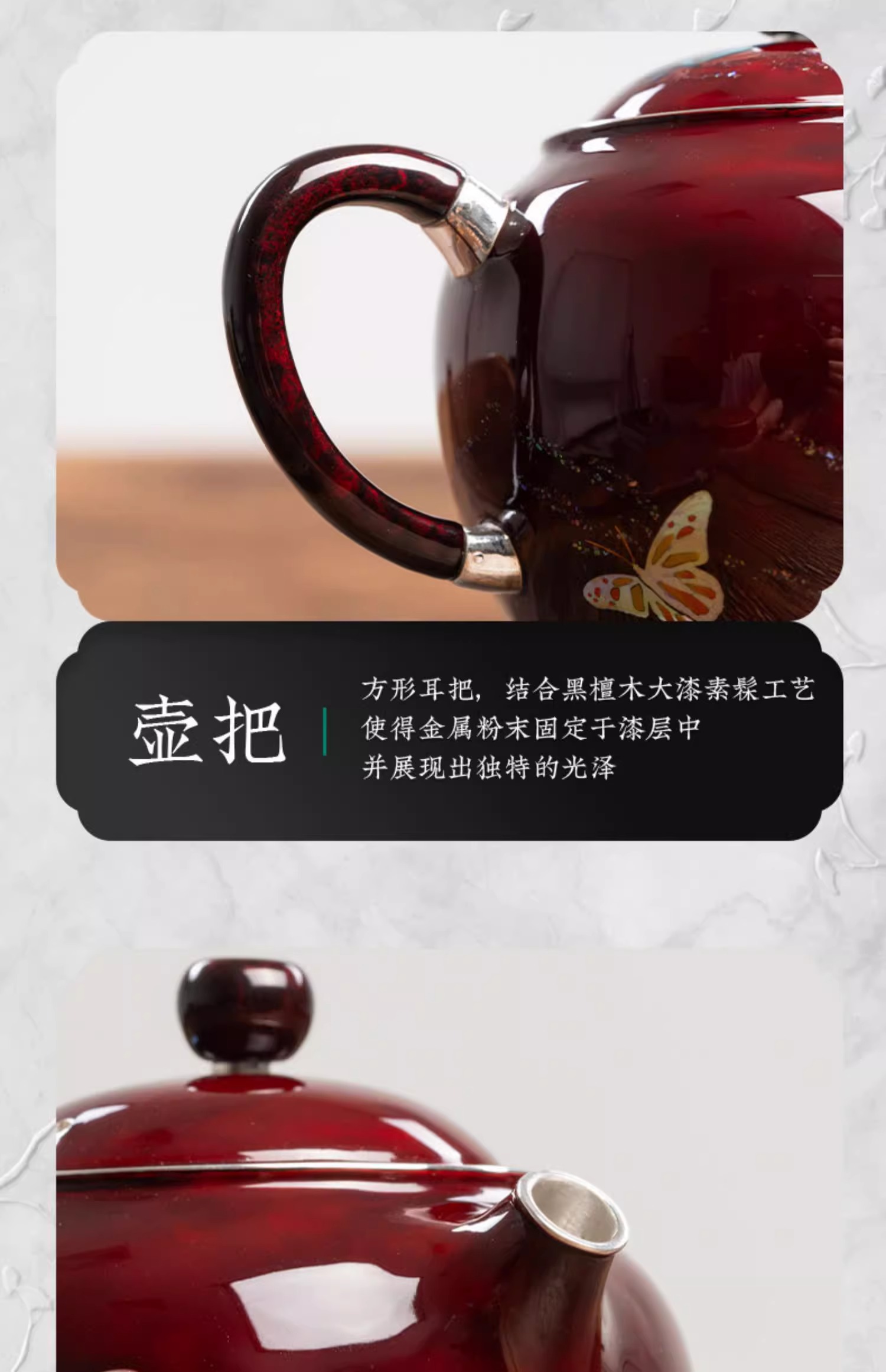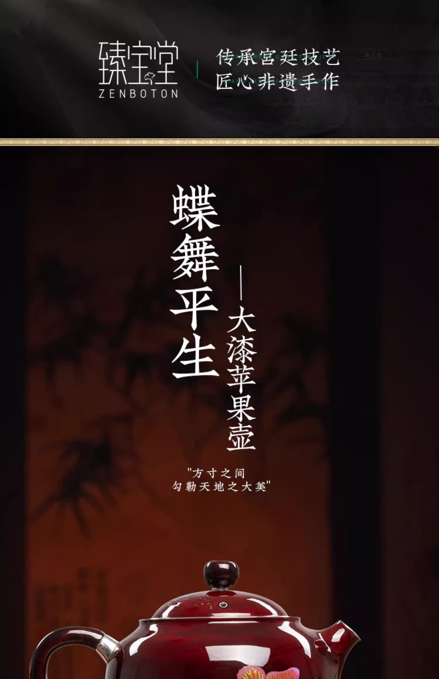 【样品特惠7折,仅1件,无货退款】臻宝堂银壶大漆苹果壶999纯银泡茶壶纯手工制作高档茶具足银茶壶大漆苹果壶-蝶舞生平150ml