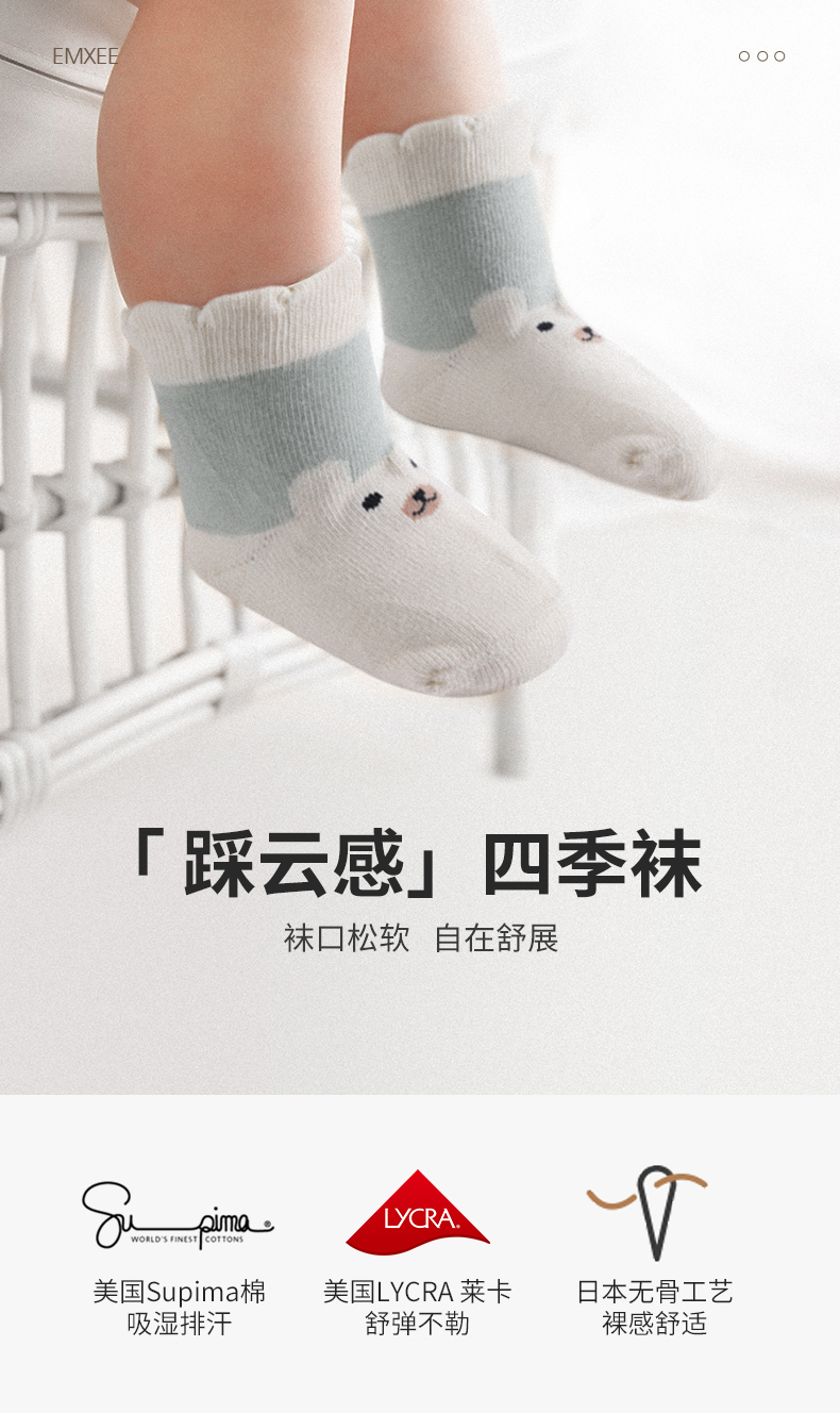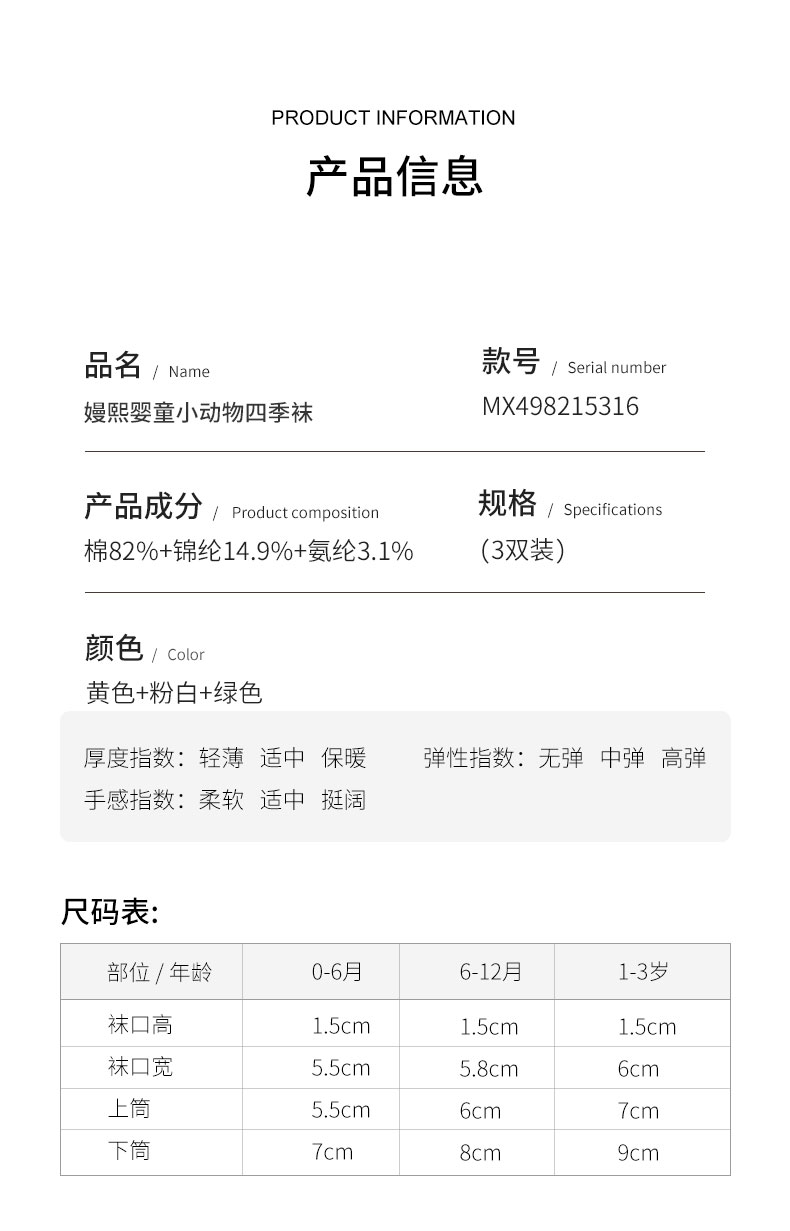 【母婴服配】嫚熙婴儿棉袜子儿童袜男女童袜中筒袜宝宝新生儿袜子春秋薄款夏装