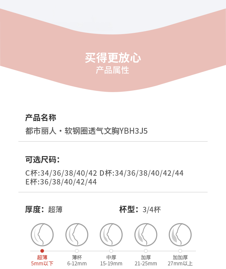 都市丽人完美包容内衣CDE:超薄蕾丝软钢圈常规文胸YBH3J5