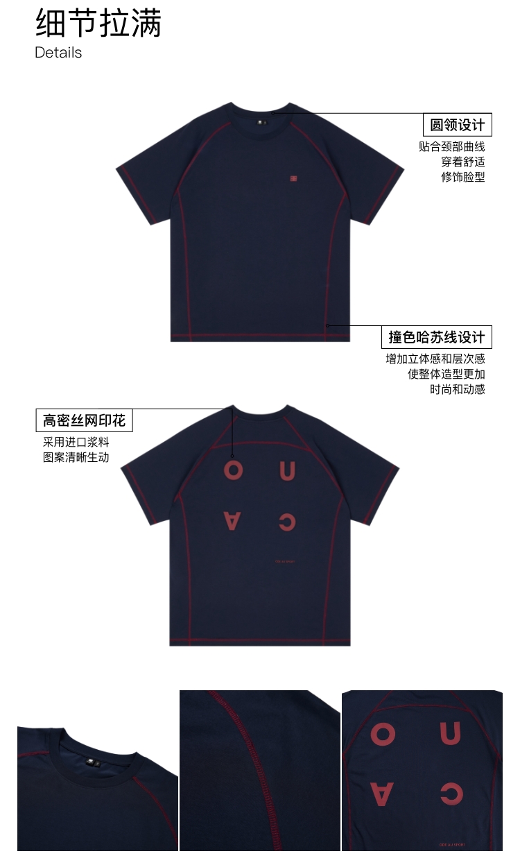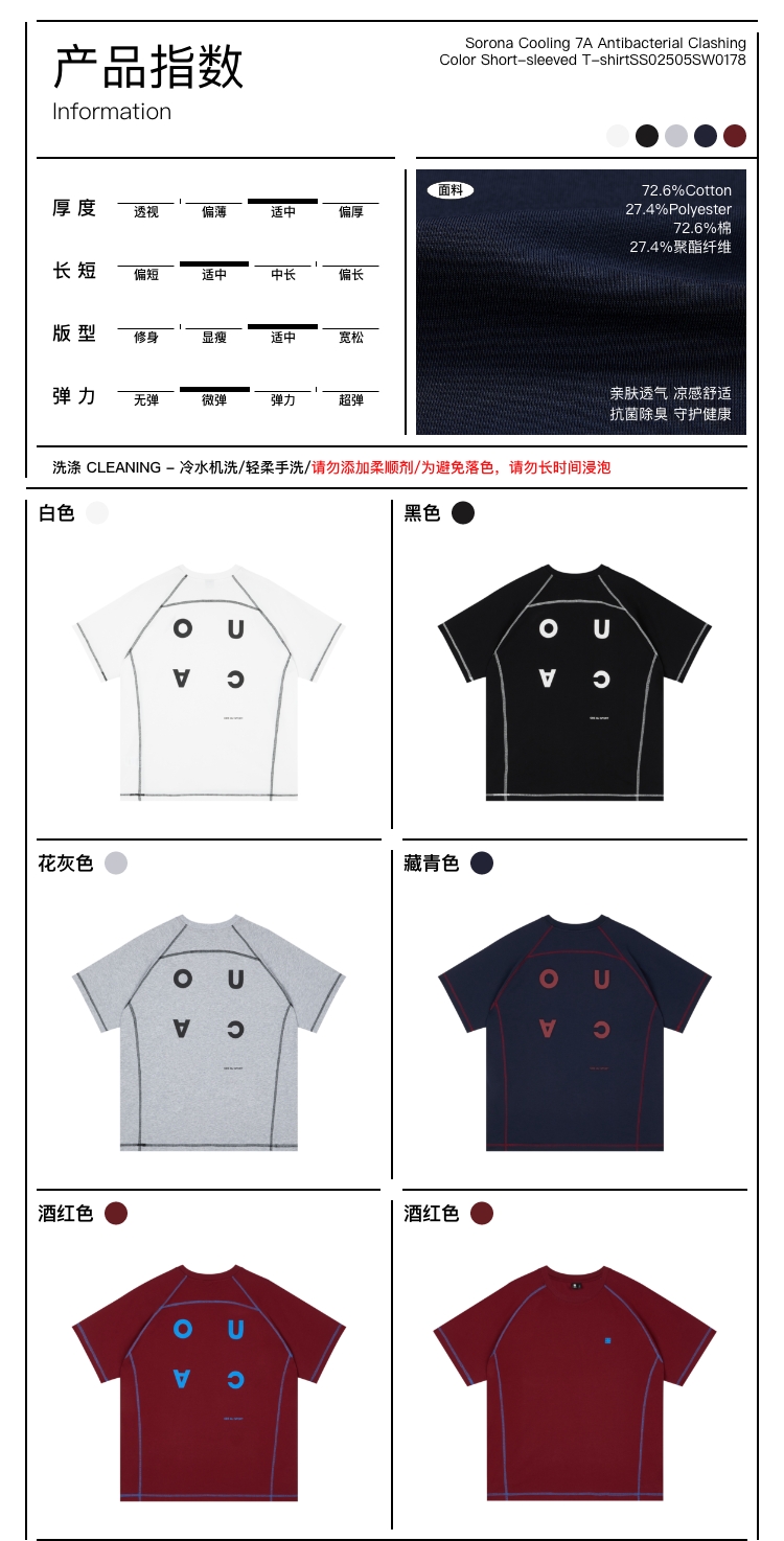 oneup凉感7A抗菌撞色线短袖T恤