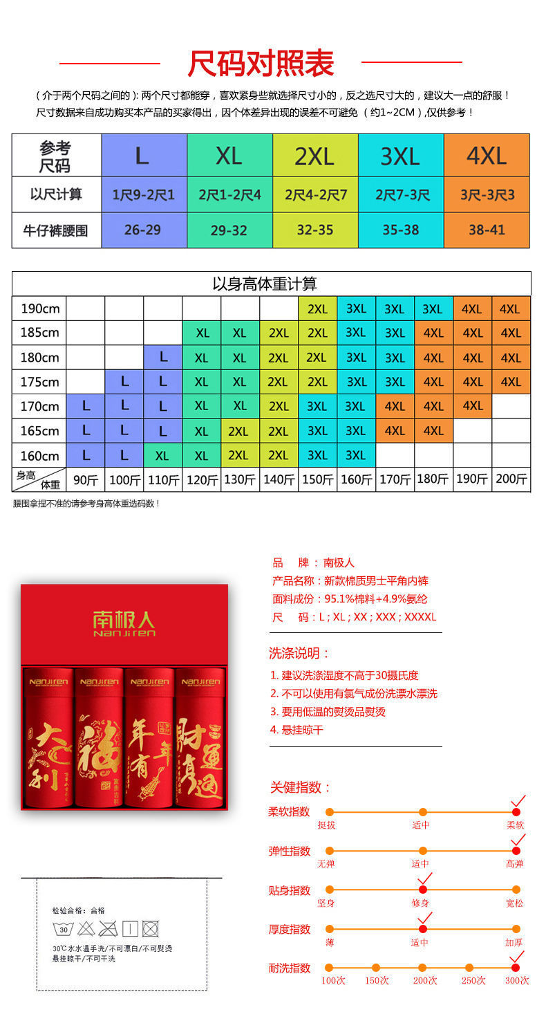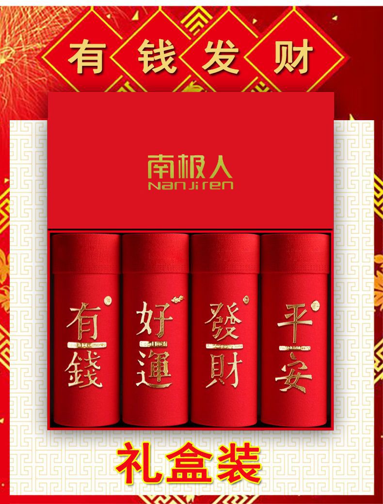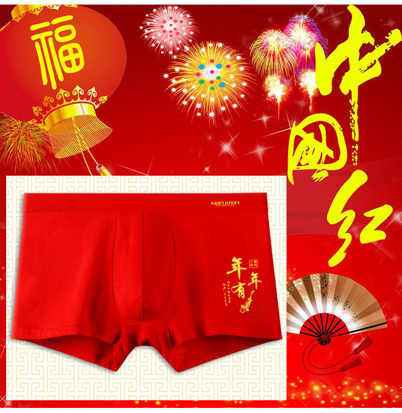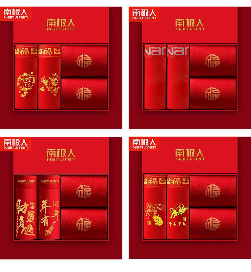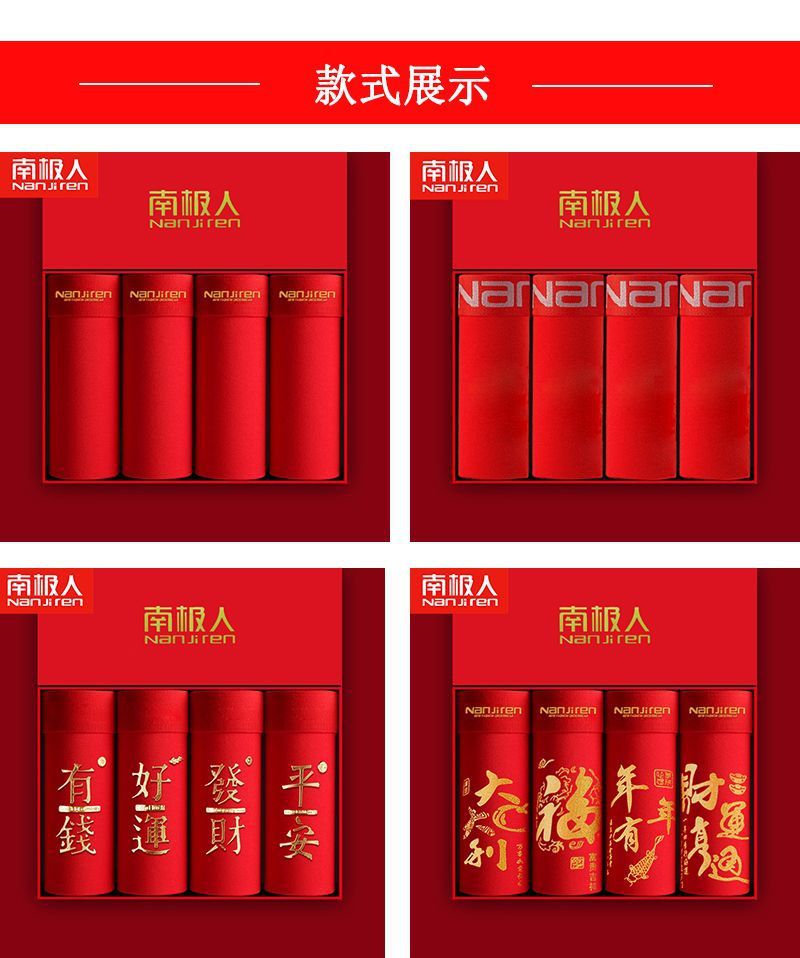 「4条礼盒装!数款可选」南极成人男士内裤男 纯棉大红色本命年结婚兔年中国红四角内裤内衣