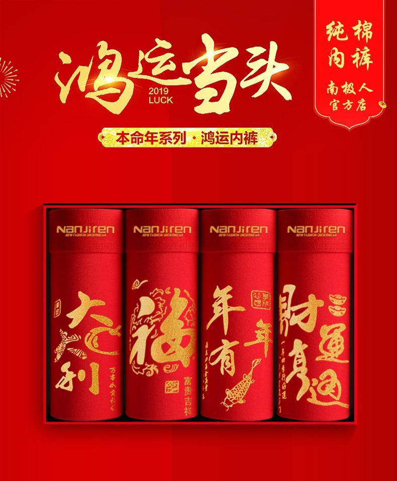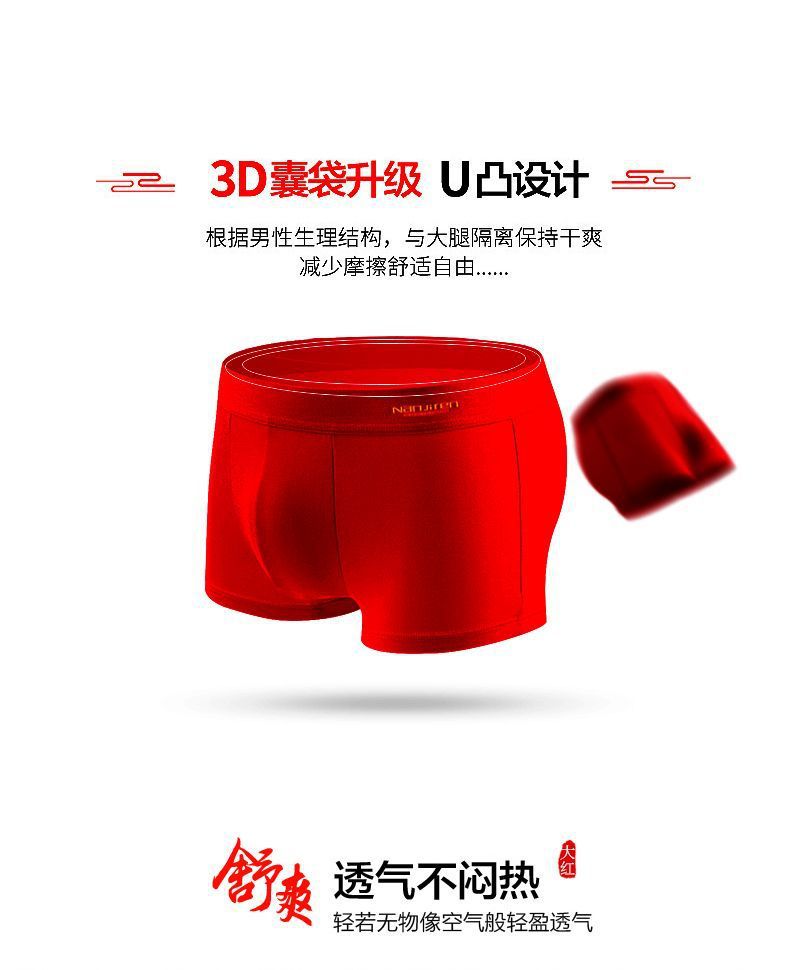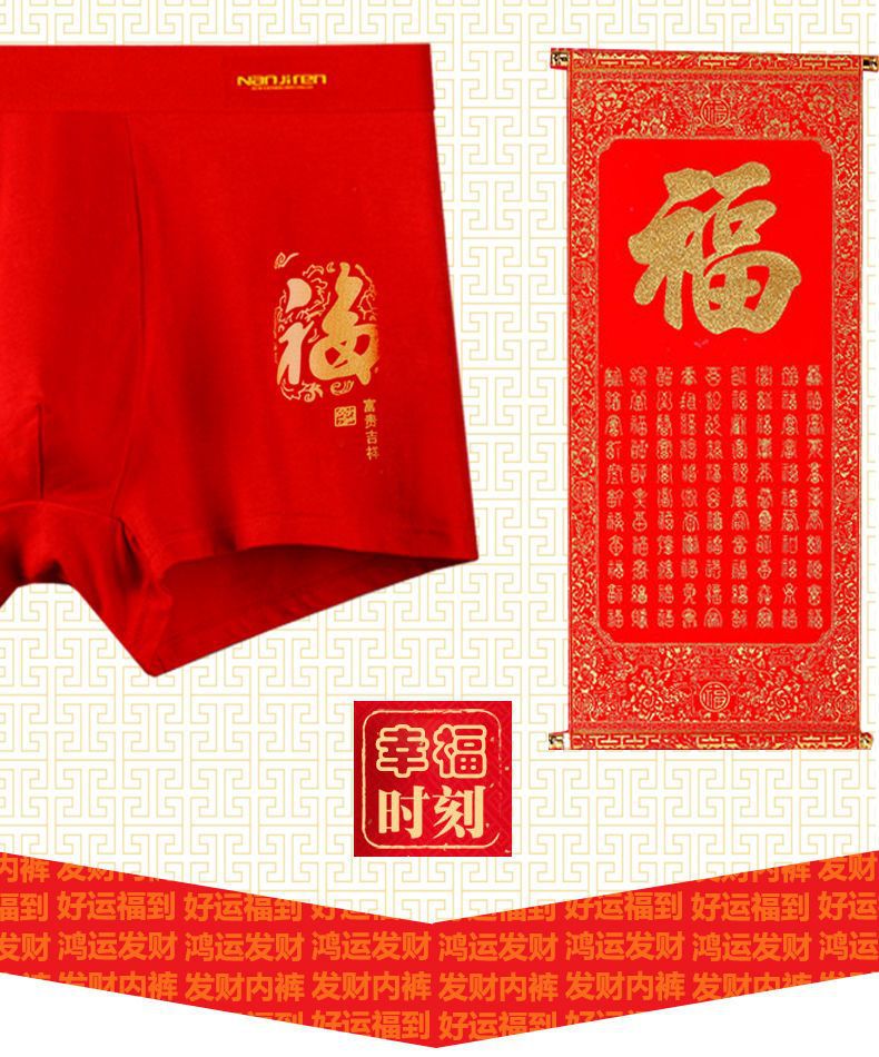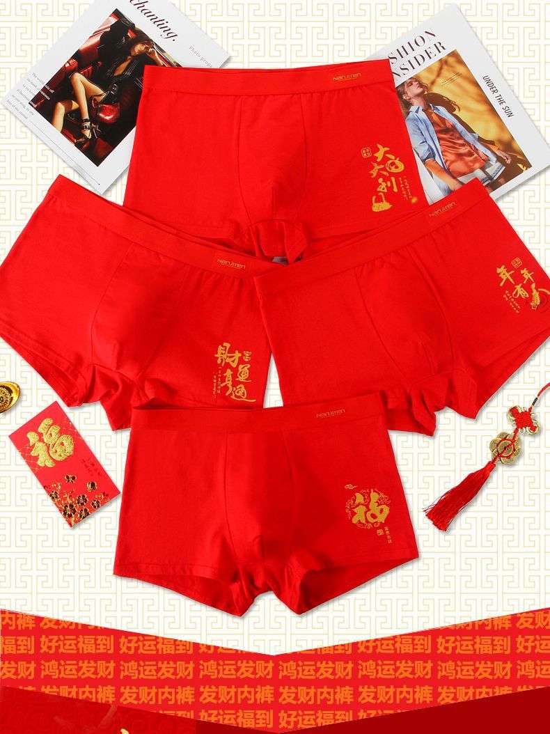 「4条礼盒装!数款可选」南极成人男士内裤男 纯棉大红色本命年结婚兔年中国红四角内裤内衣