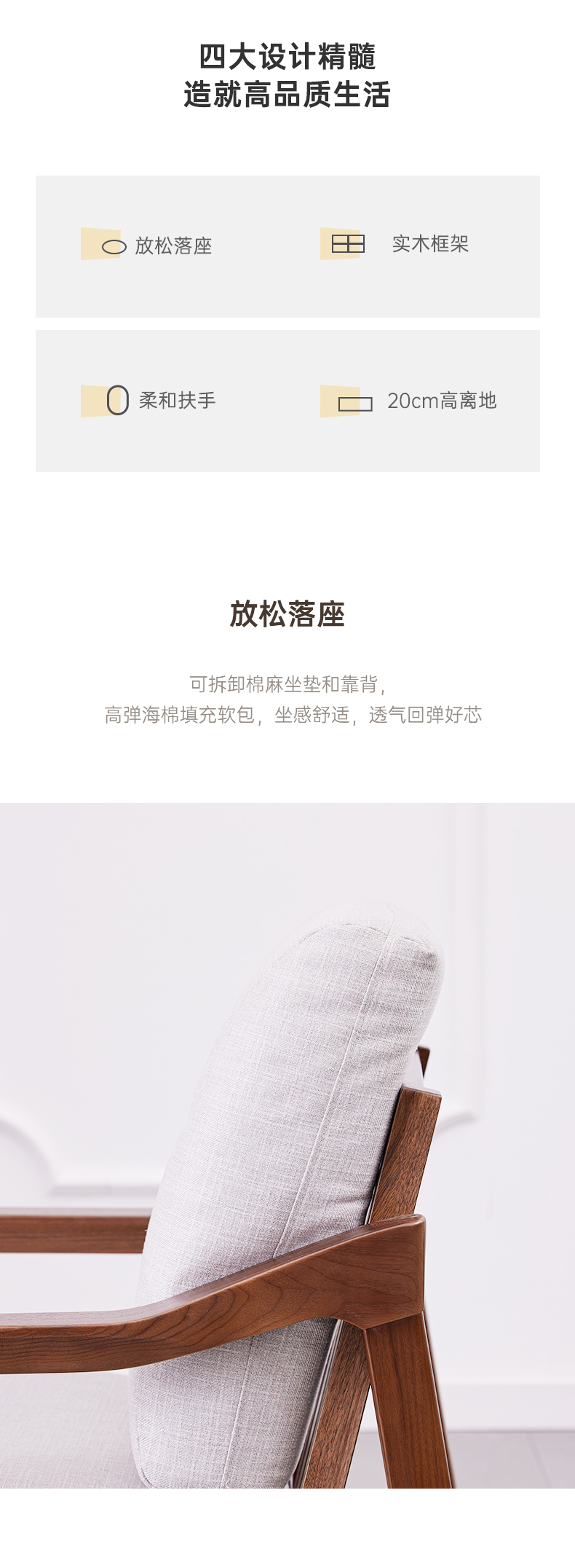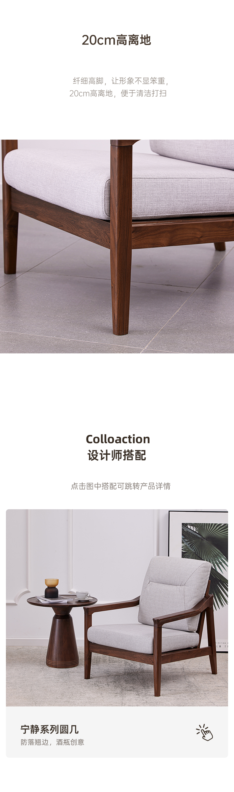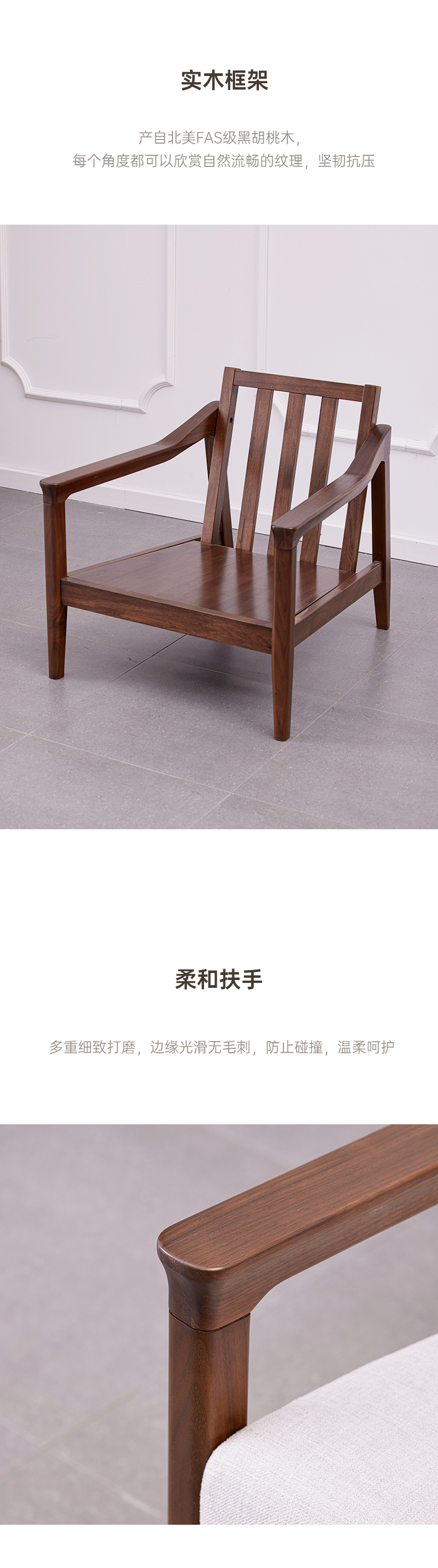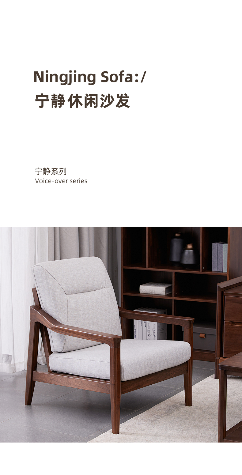 【现代实木风-NJN5101C03T休闲沙发】现代实木/现代简约/客厅/北美黑胡桃/实木休闲沙发