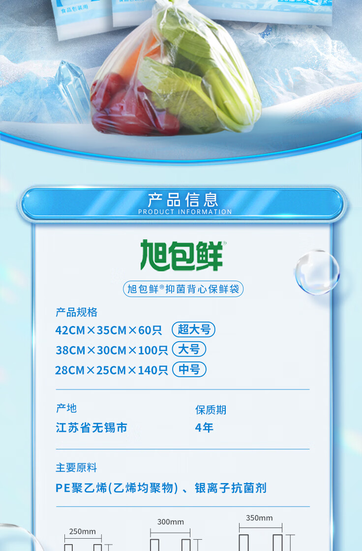 旭包鲜抑菌背心式保鲜袋(中号)140只装