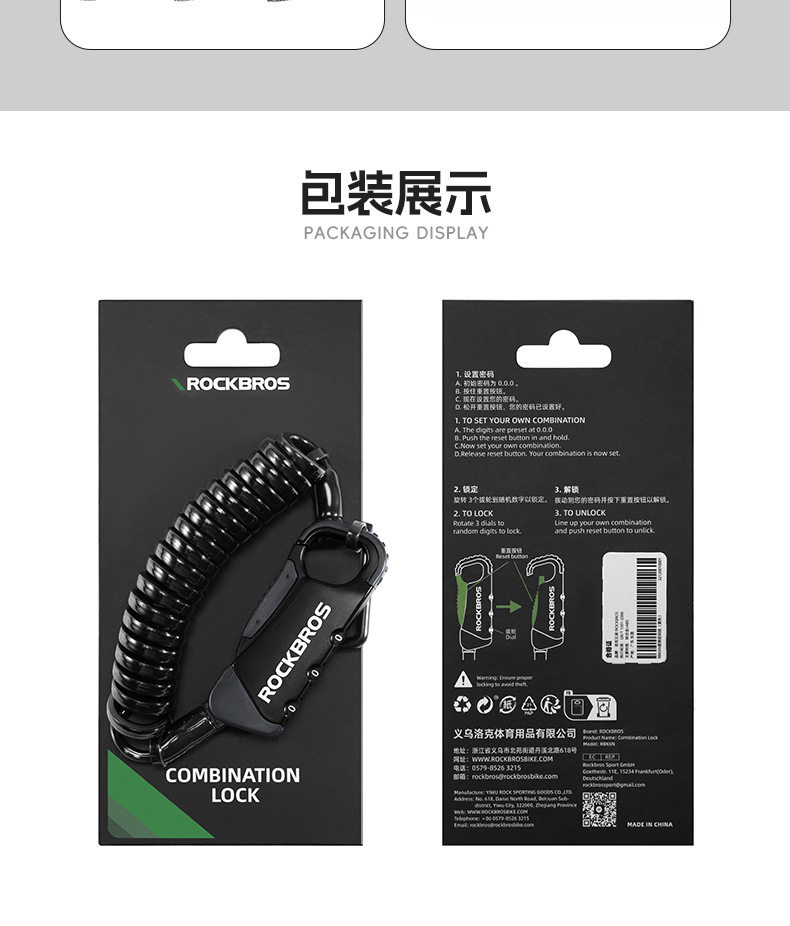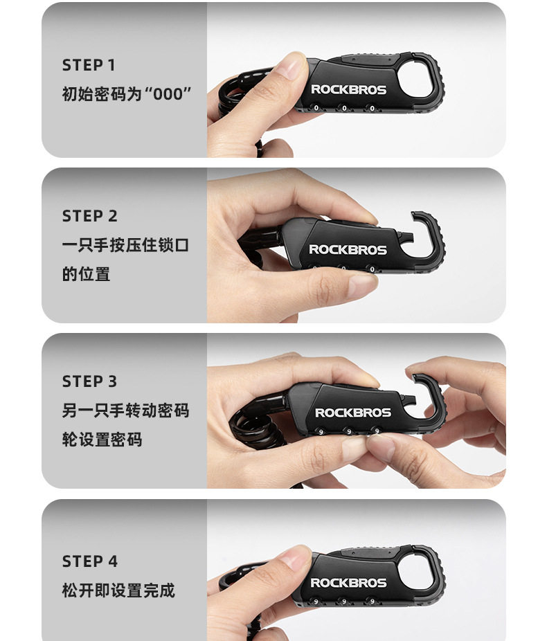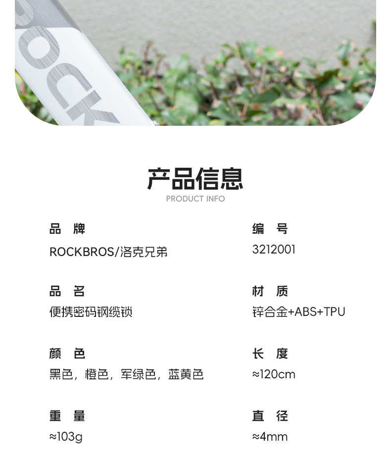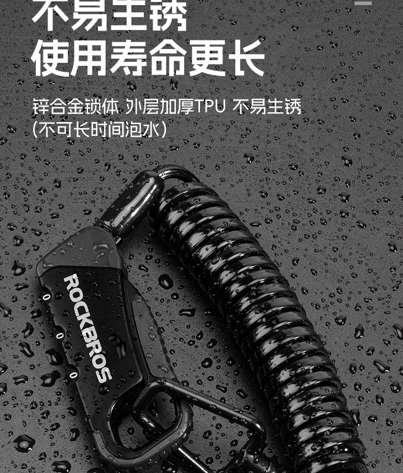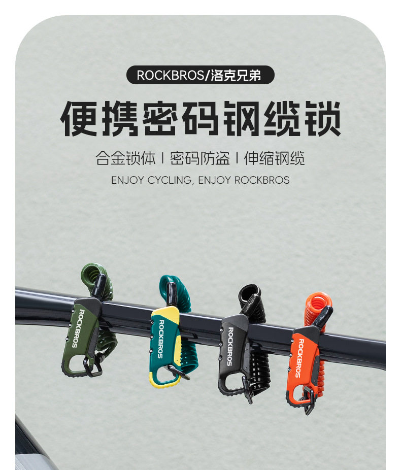 洛克兄弟便携头盔锁公路自行车电动摩托车密码锁行李箱骑行防盗锁