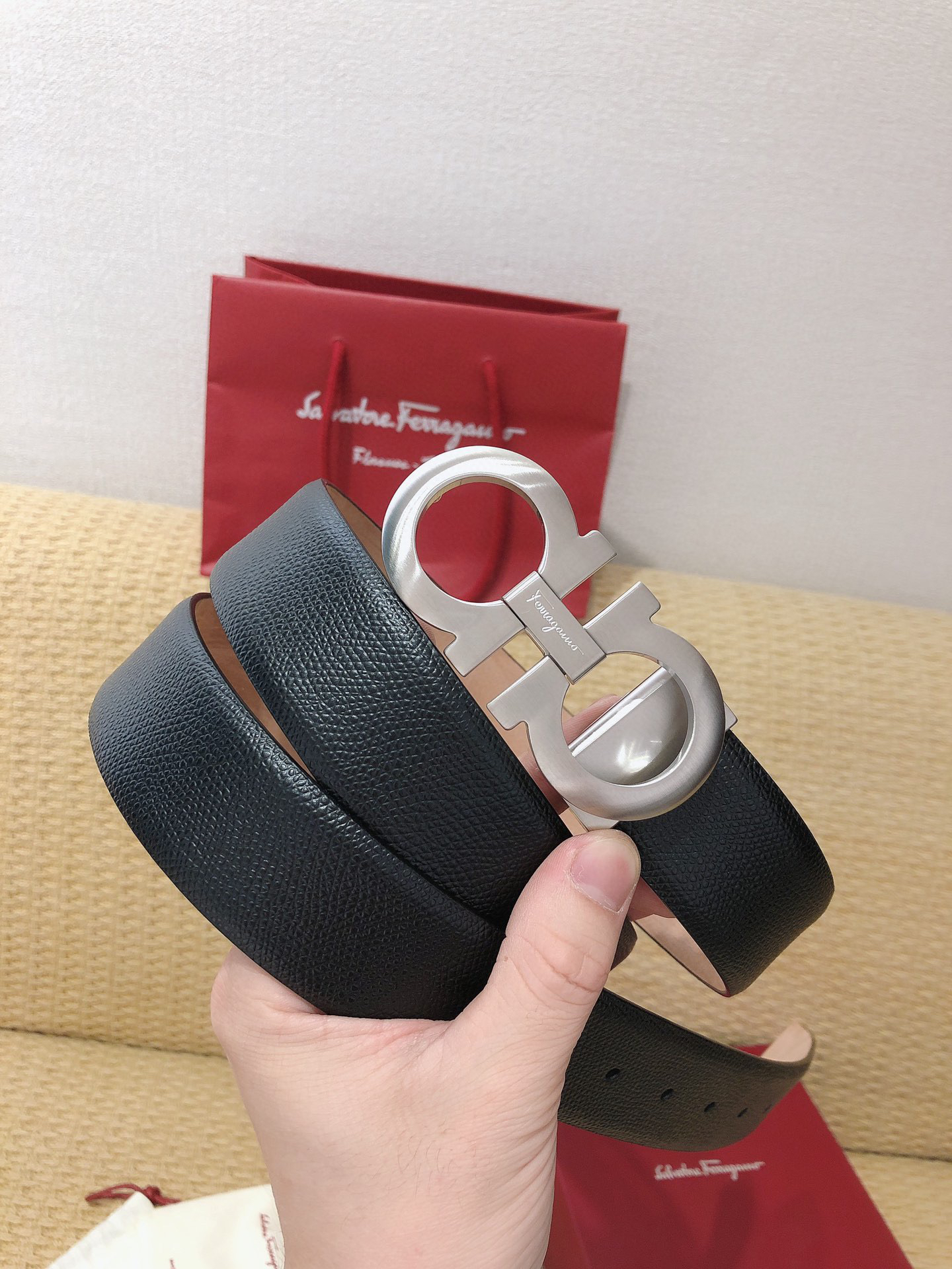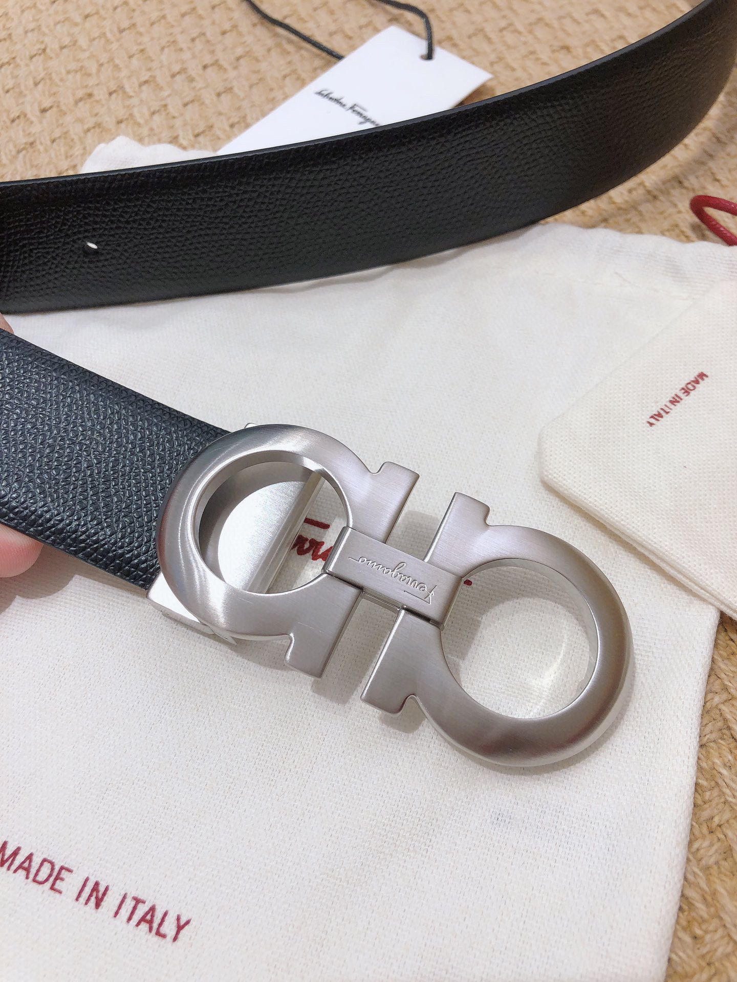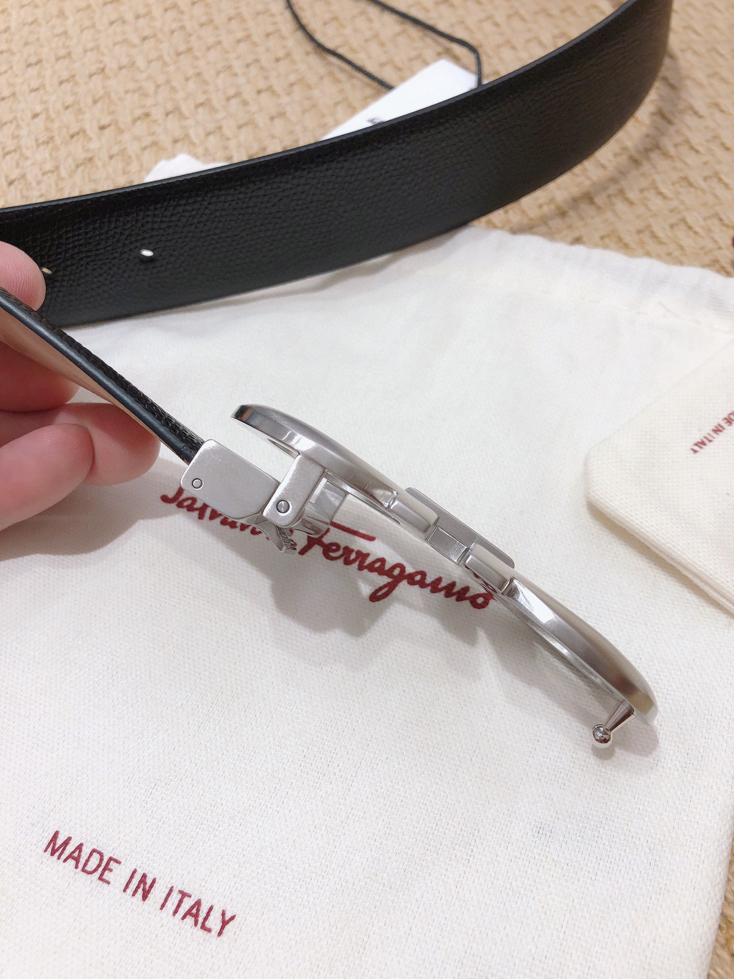 SF菲拉格慕-银色扣-手掌纹+树膏皮