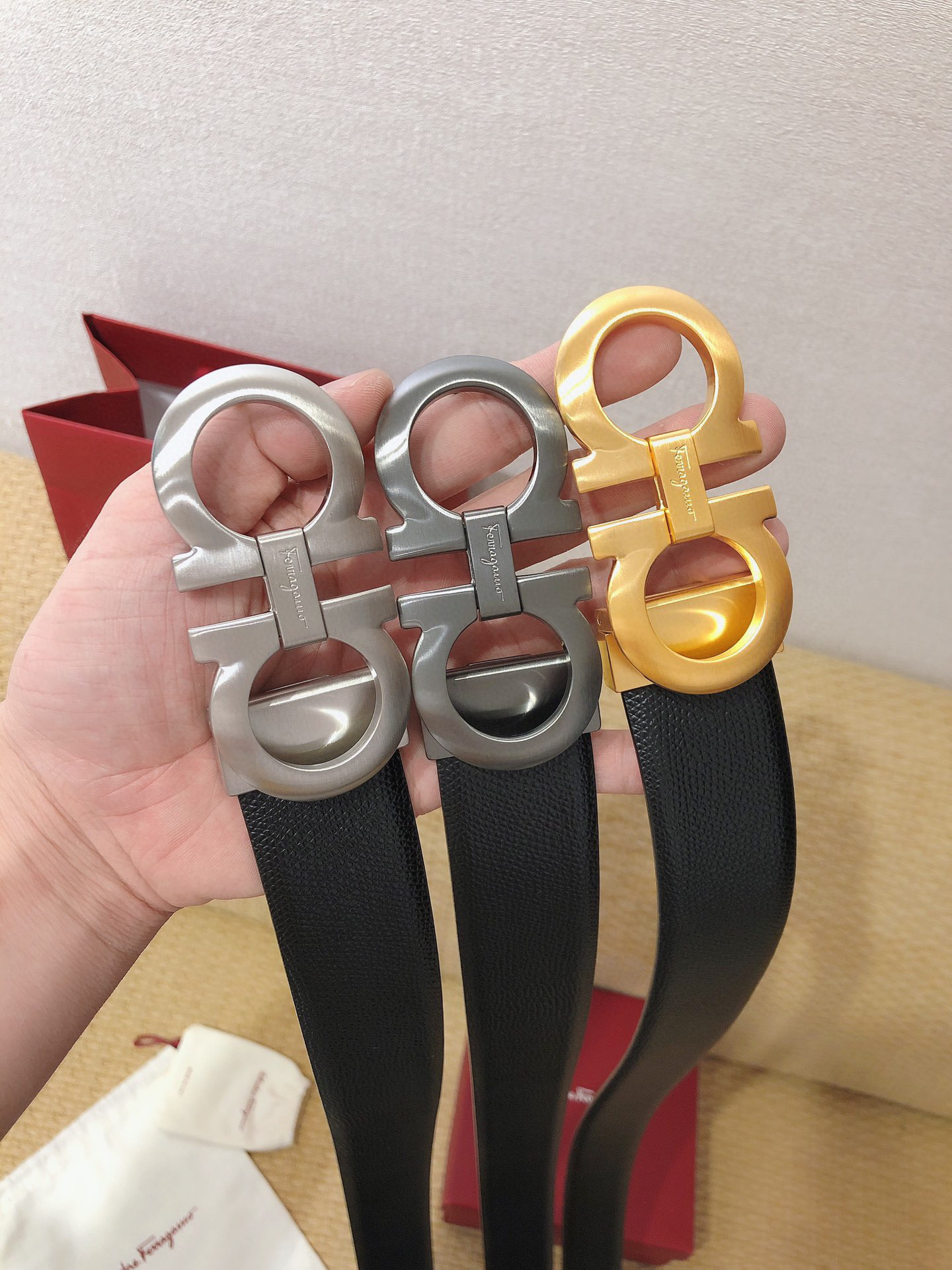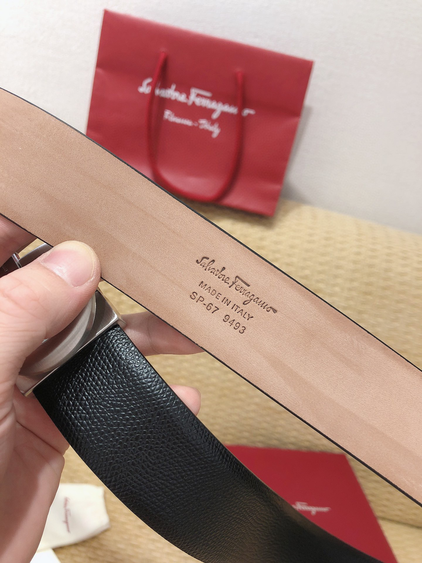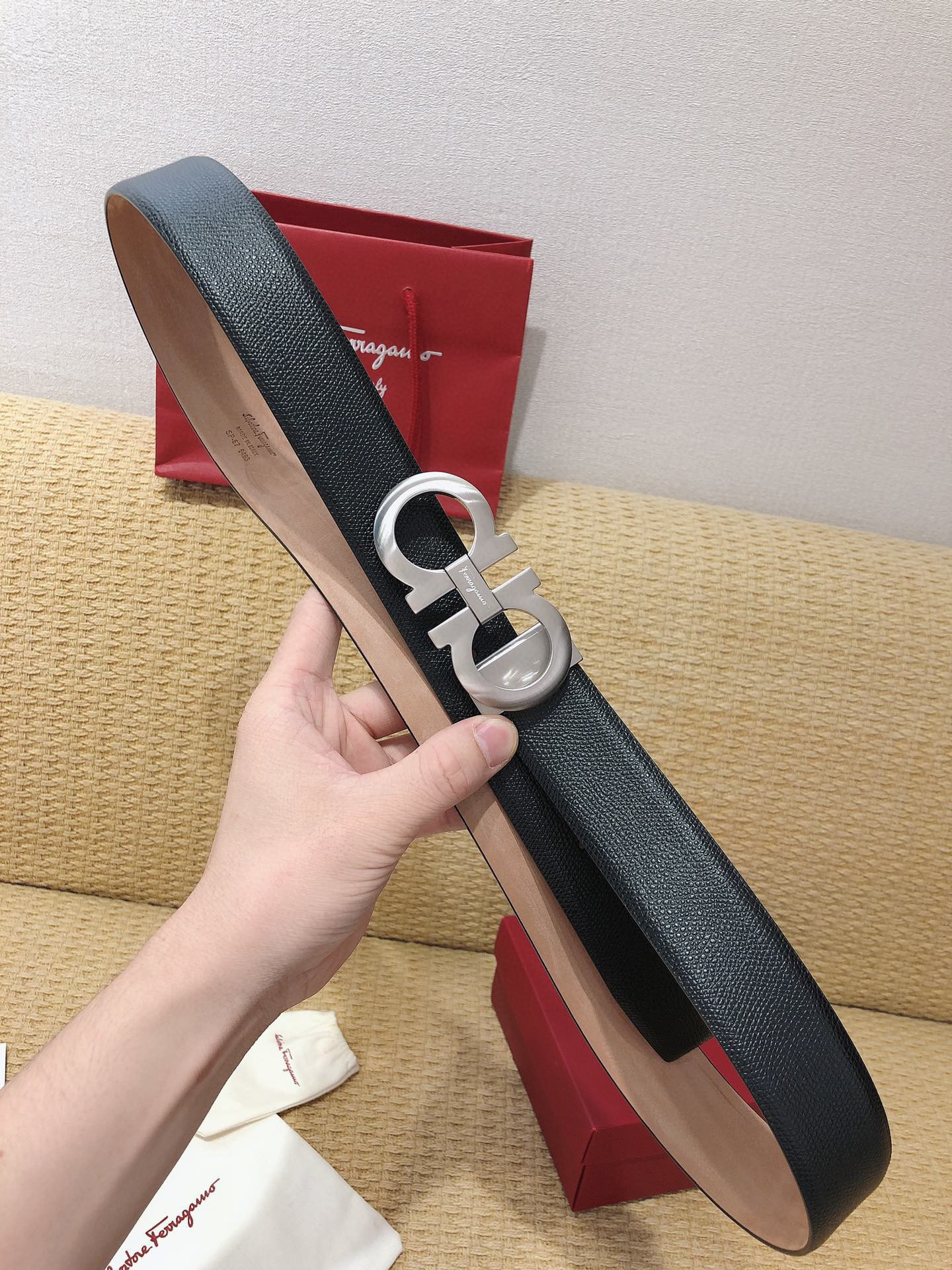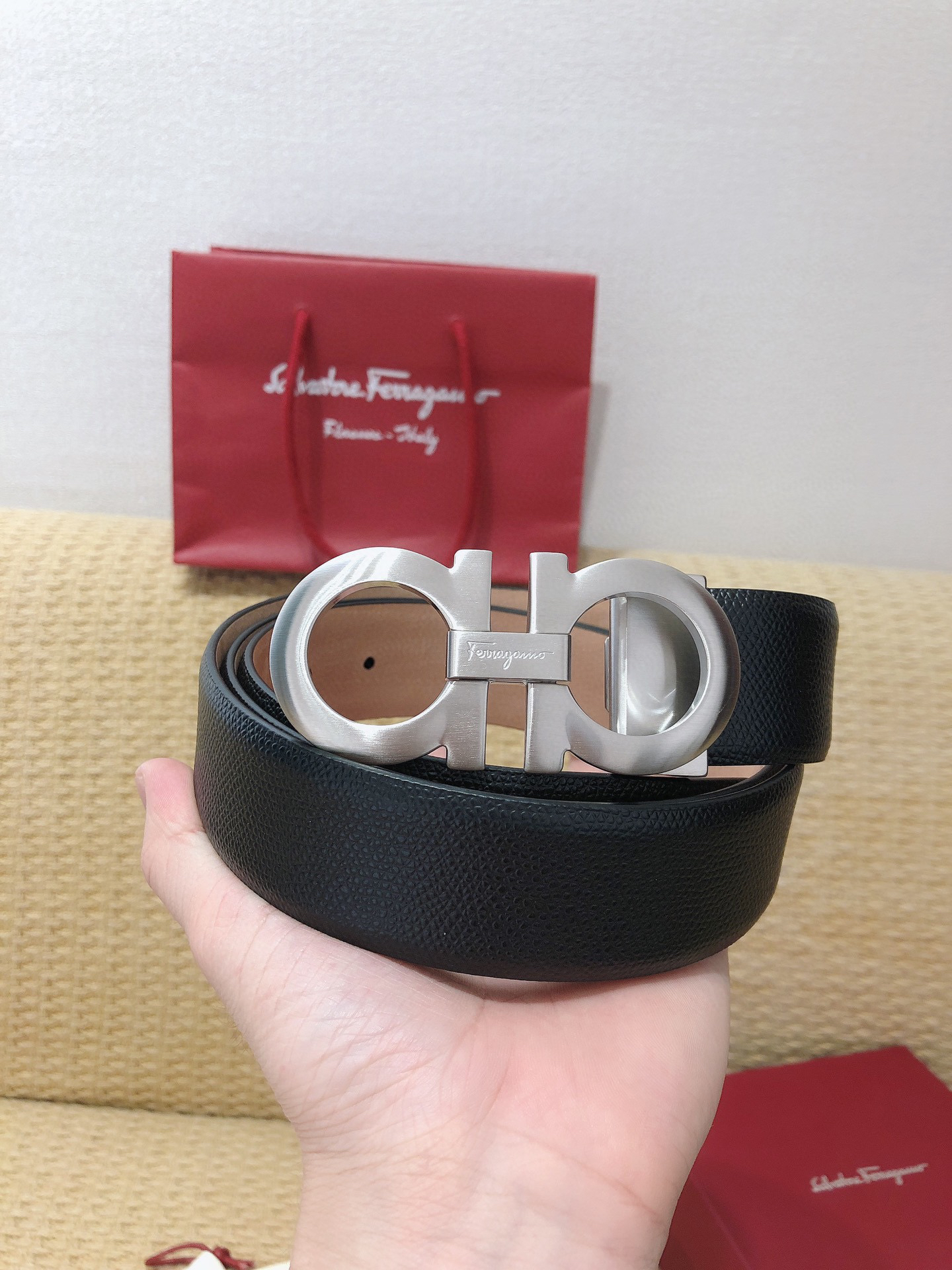 SF菲拉格慕-银色扣-手掌纹+树膏皮