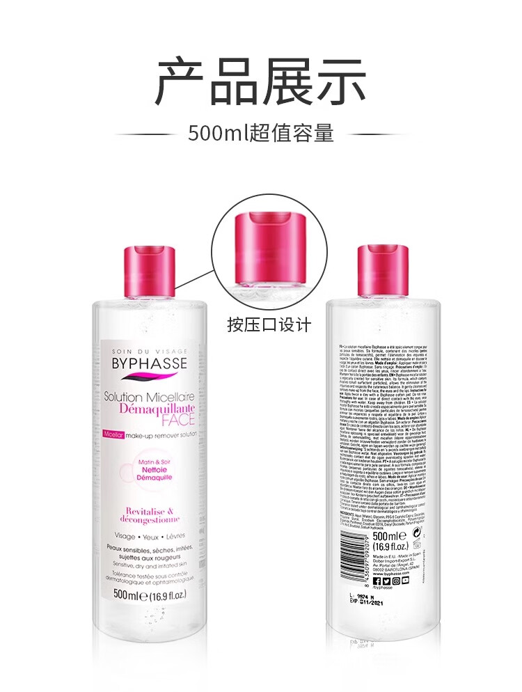 【海豚美购】西班牙Byphasse蓓昂斯 卸妆洁肤水 500ml