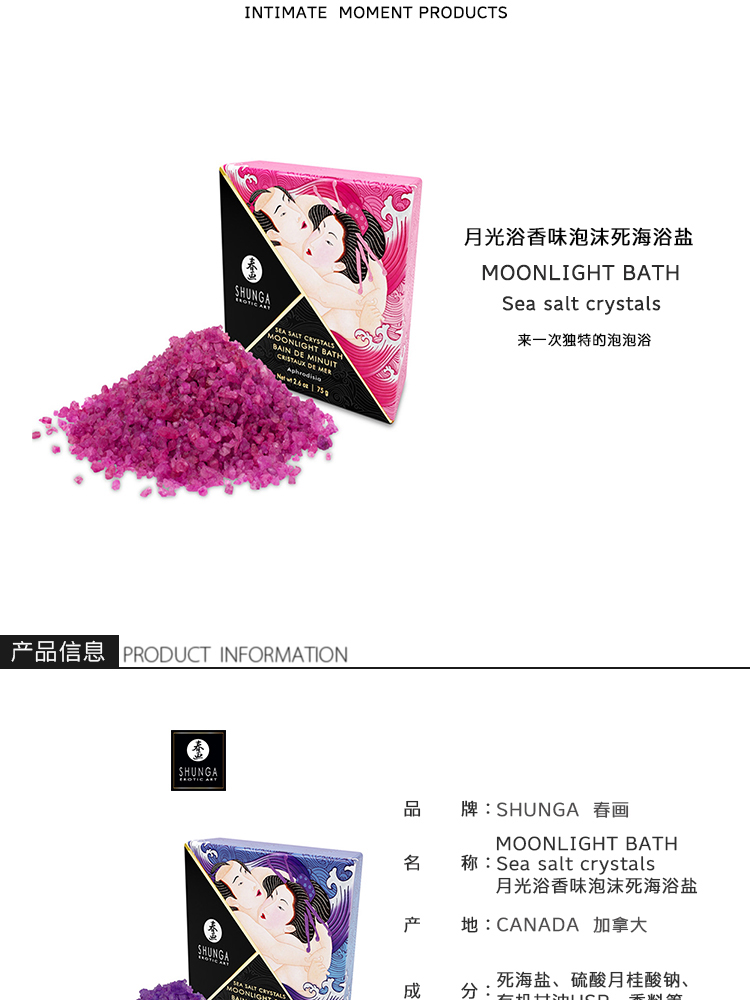 加拿大原装进口SHUNGA春画 月光浴泡沫水晶死海浴盐 Dead Sea salt