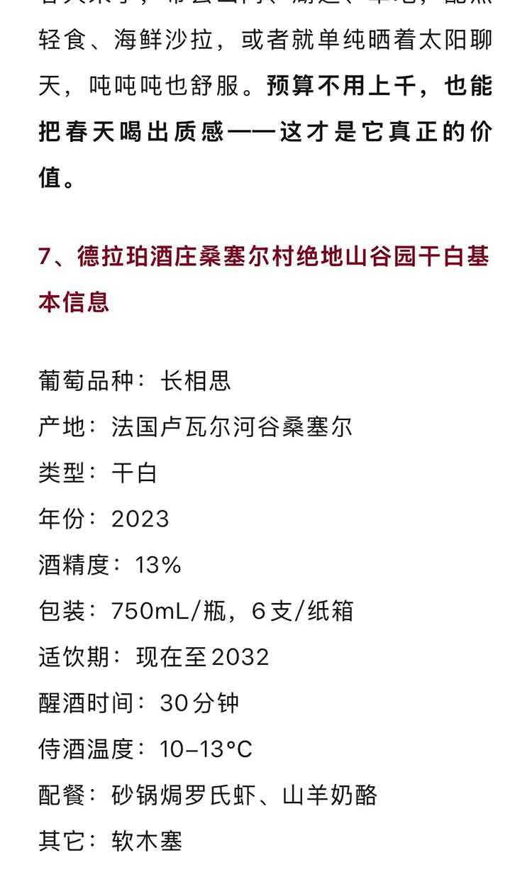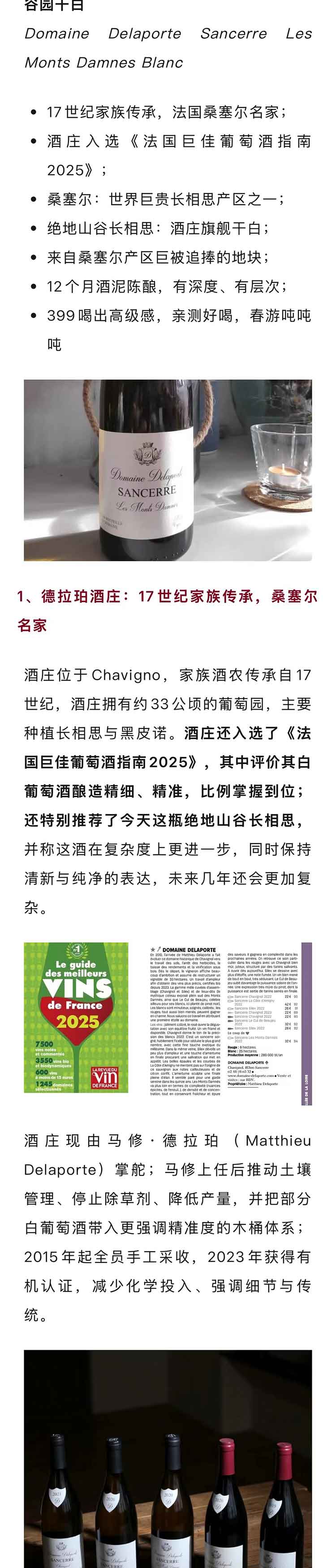 【开春清爽干白】法国卢瓦尔河谷2023年德拉珀酒庄桑塞尔村绝地山谷园长相思干白