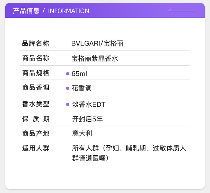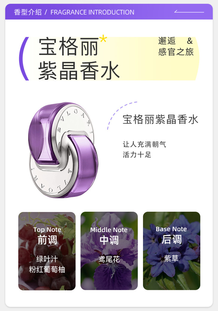 Bvlgari宝格丽紫晶女士香水鸢尾花淡香水玫瑰紫水晶