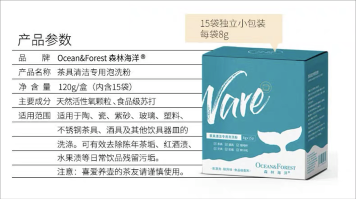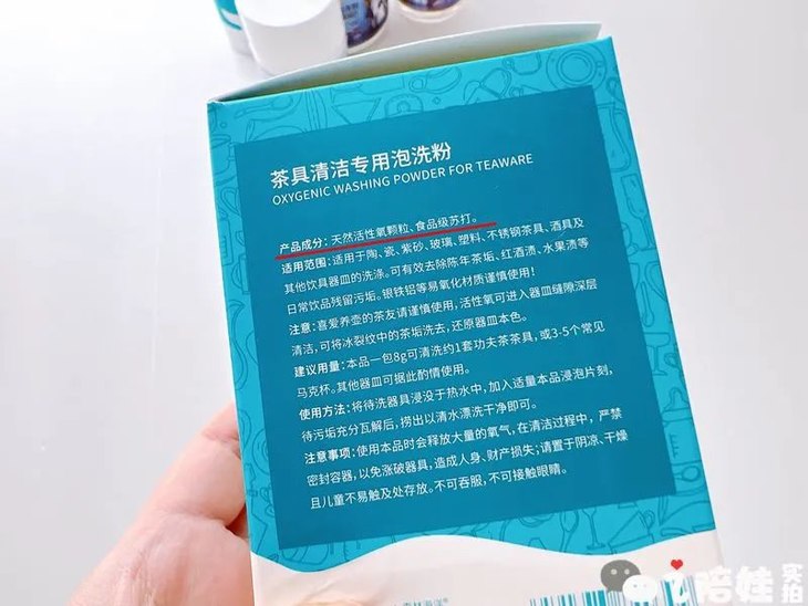 但不用担心,也是入口级别的,还记得之前我提到过的他家创始人还拿那个衣物泡洗粉漱口吗?这次还是专用的茶具清洁泡洗粉,我用起来更放心。