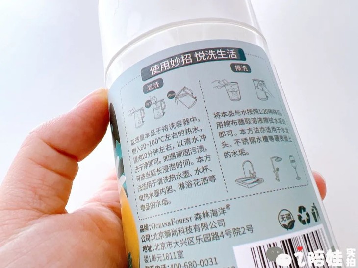 下面我把森林海洋柠檬酸水垢清洁剂的总体情况、质地和使用方法,再给你们说一下。